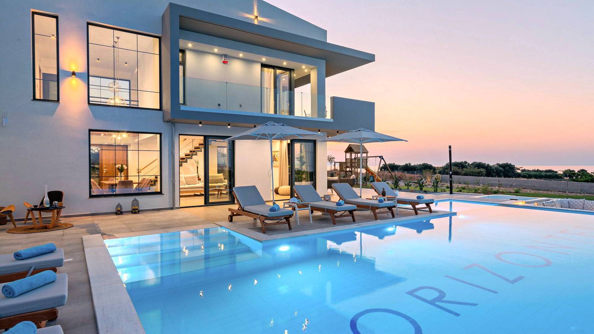 I servizi di questo noleggio di lusso coprono anche il visitatore più esigente, avendo tutti i comfort che ci si aspetterebbe di trovare in una moderna residenza di lusso. Villa Orizontes Rethymno è un paradiso per le tue vacanze a Creta, che cattura la tua attenzione con la sua architettura moderna, gli interni sontuosi e il design esterno e i suoi servizi di qualità superiore, offrendo al contempo una vista mozzafiato a 360 gradi sul Mar Egeo e sulle montagne e valli cretesi .