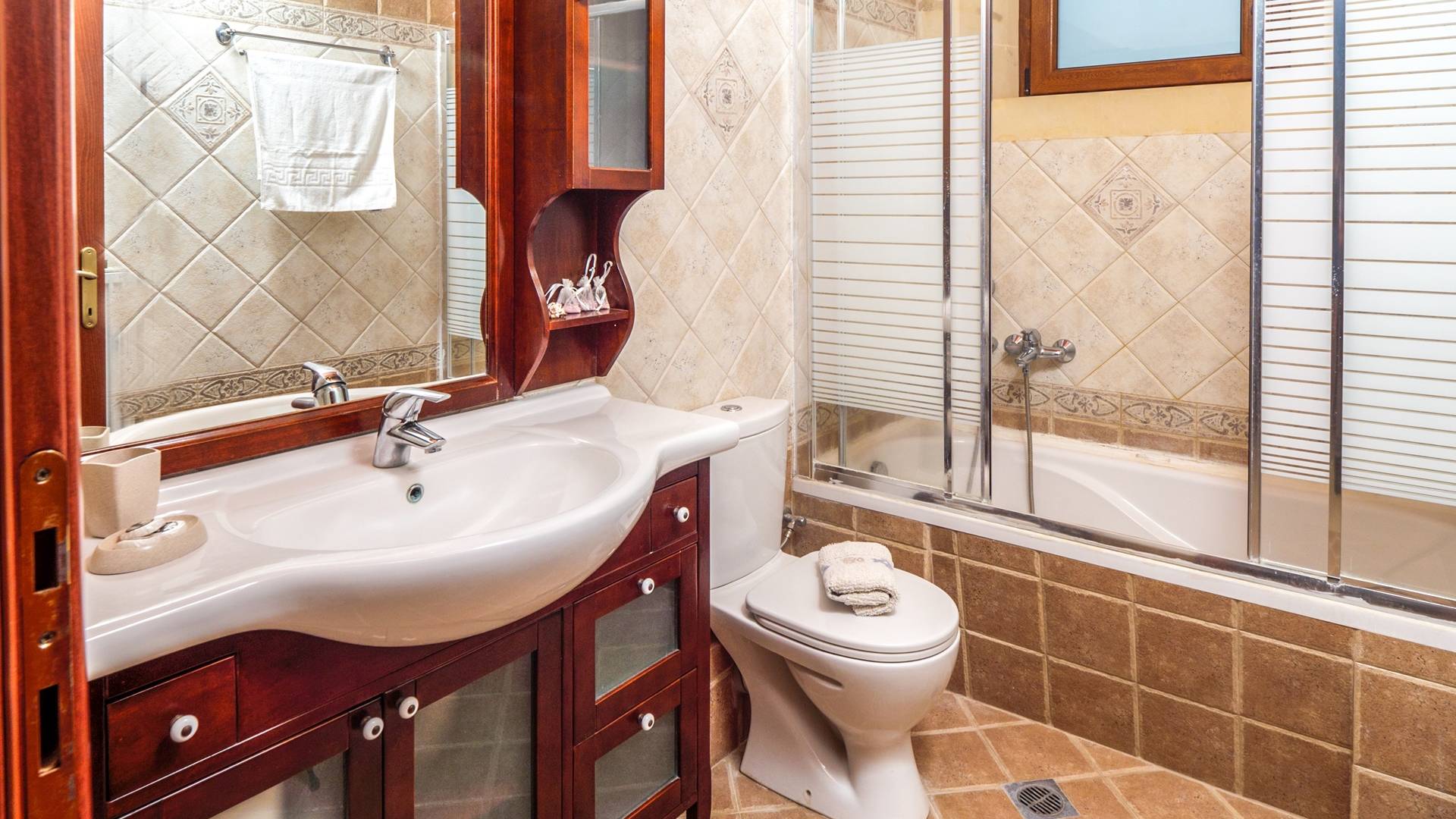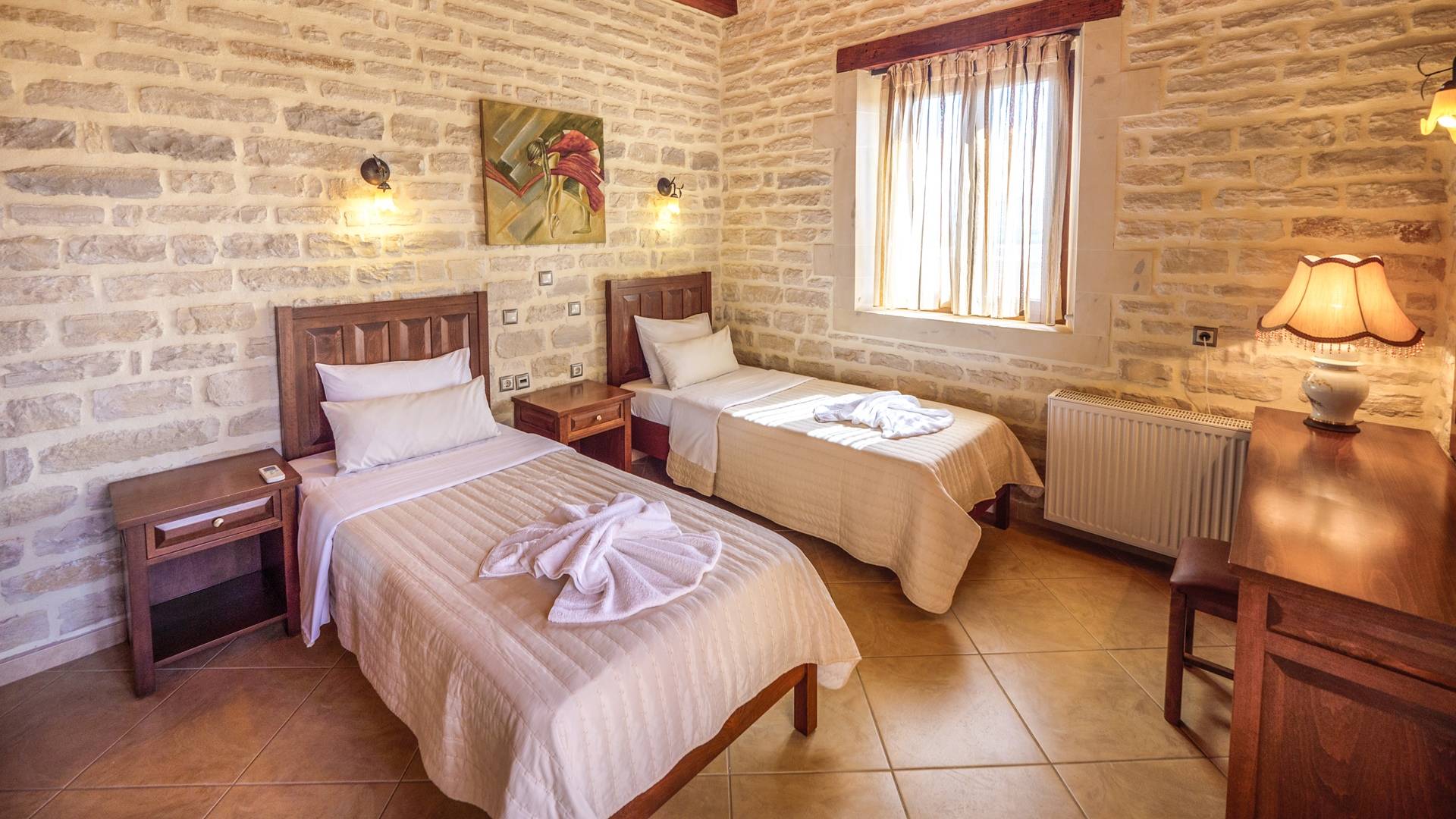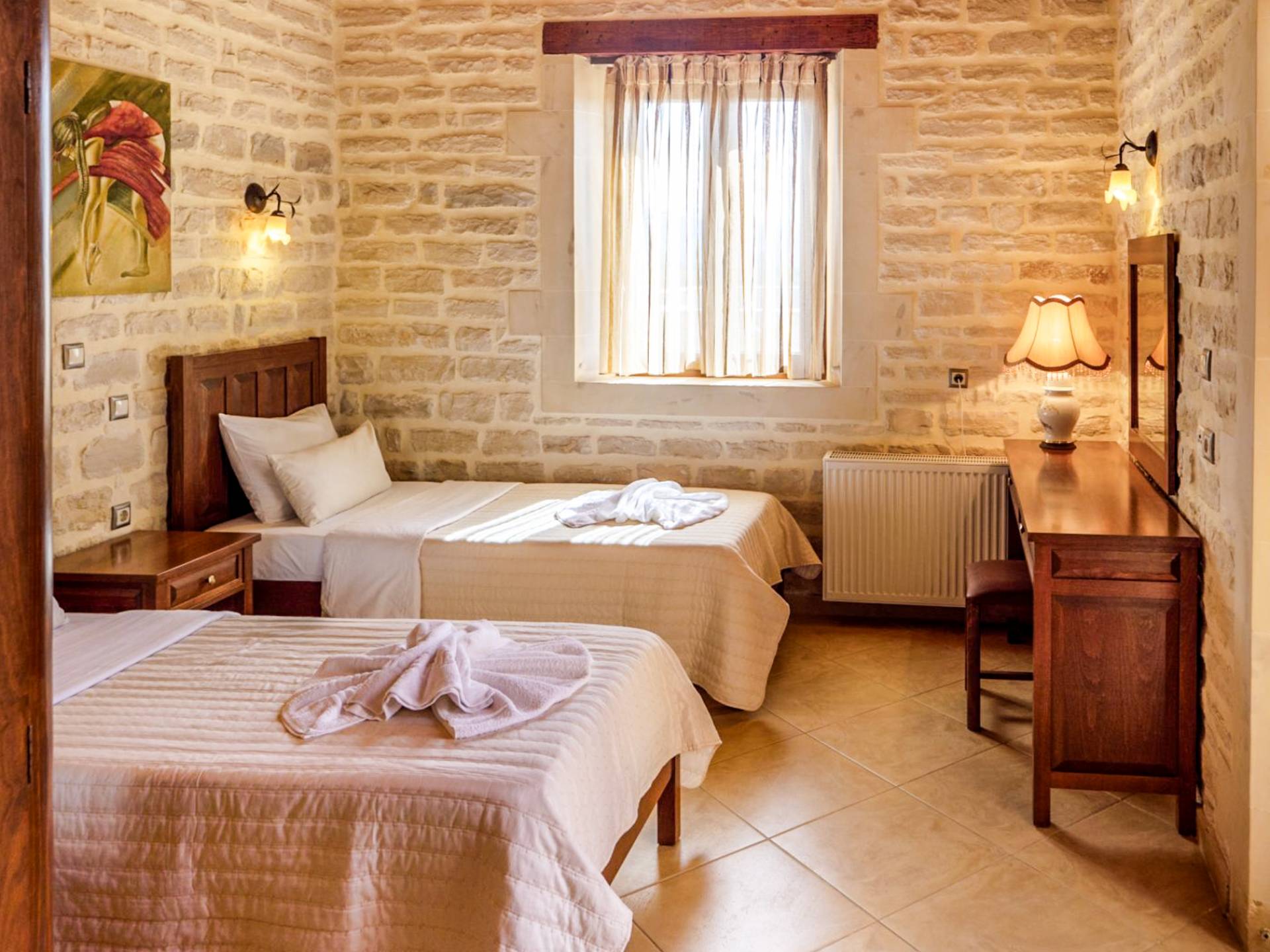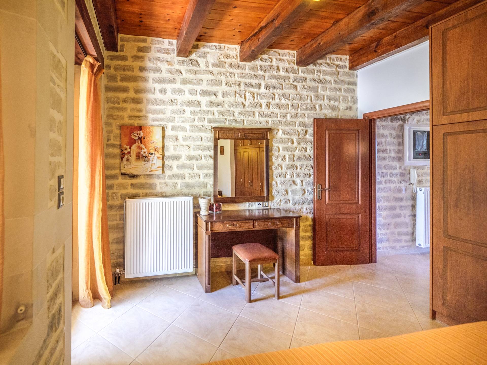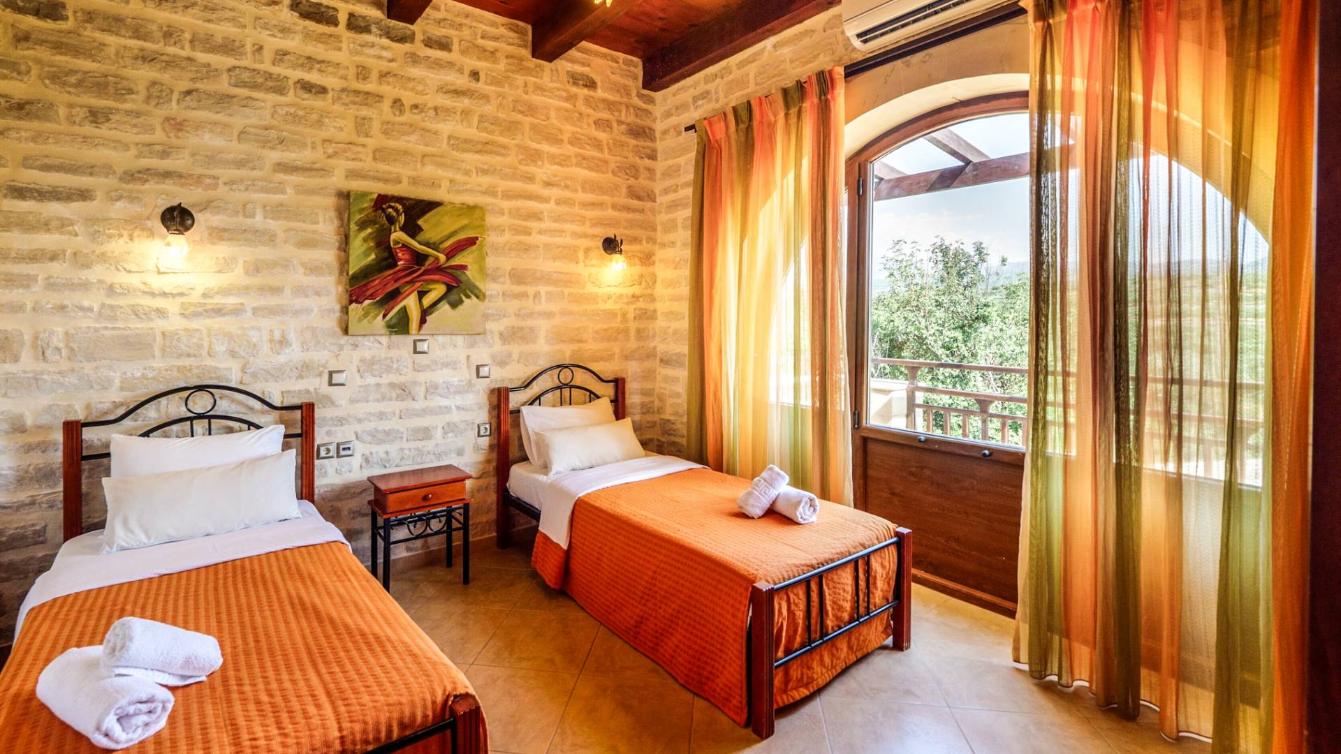 La camera da letto principale ha un letto matrimoniale e bagno/WC privato con vasca idromassaggio, le altre due hanno letti gemelli. Su questo piano si trova un altro ampio bagno con lavatrice e vasca. Ogni camera ha un balcone con una splendida vista sul mare e sulle montagne e tutte sono dotate di aria condizionata. La villa dispone anche di un bellissimo tetto di 30 mq, da cui si può godere della magnifica vista sul mare, sulle montagne e sulla città di Rethymno e rilassarsi. Eros Villa Crete offre anche ferro/asse da stiro, asciugacapelli, cassaforte, parcheggio ed è circondata da numerosi uliveti, che danno una speciale impressione di tranquillità ad ogni visitatore.