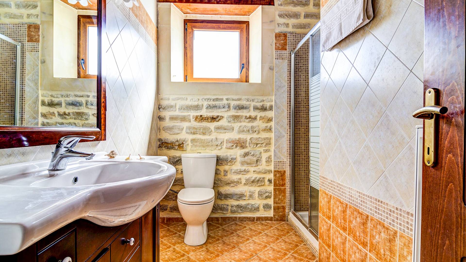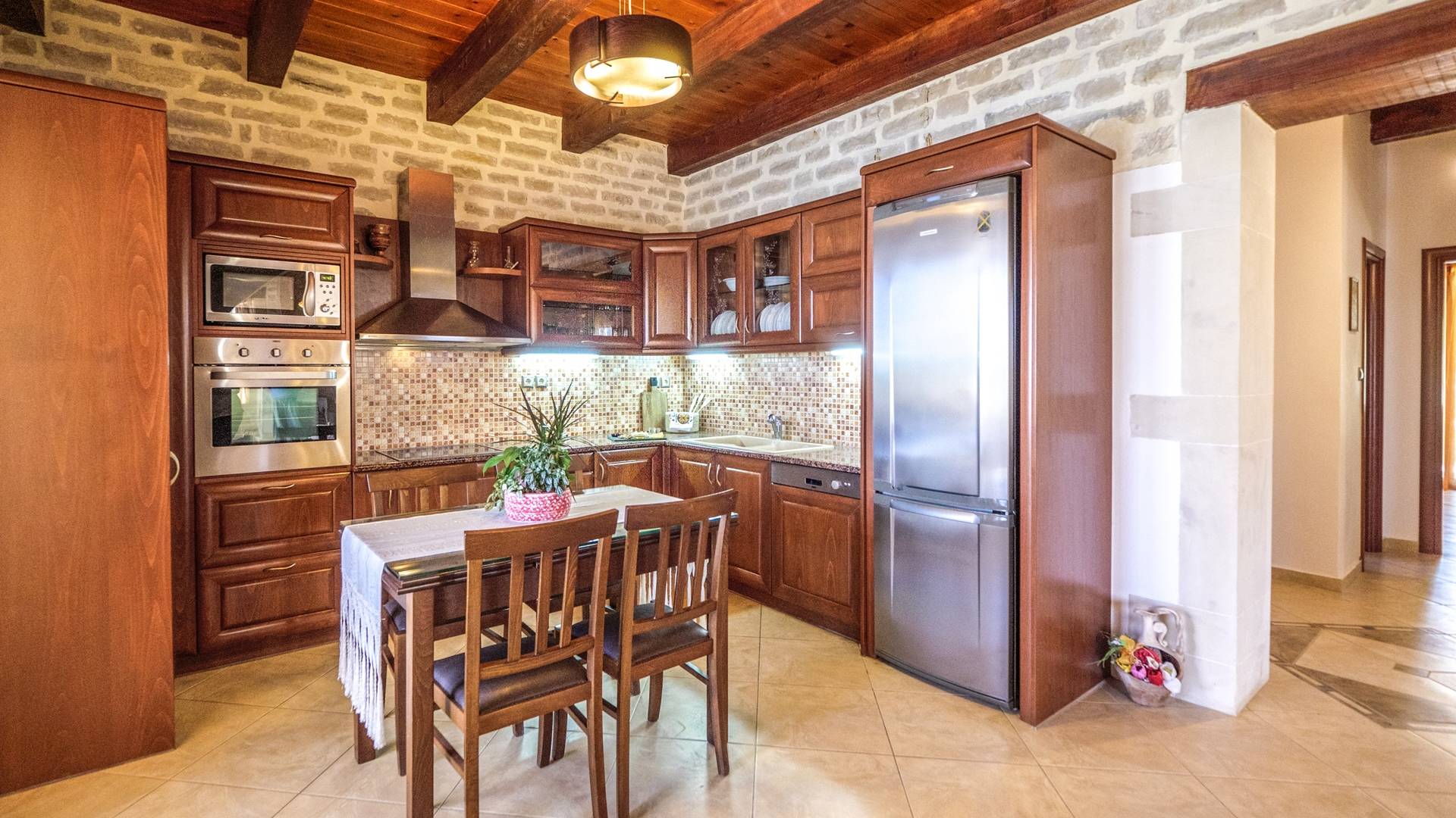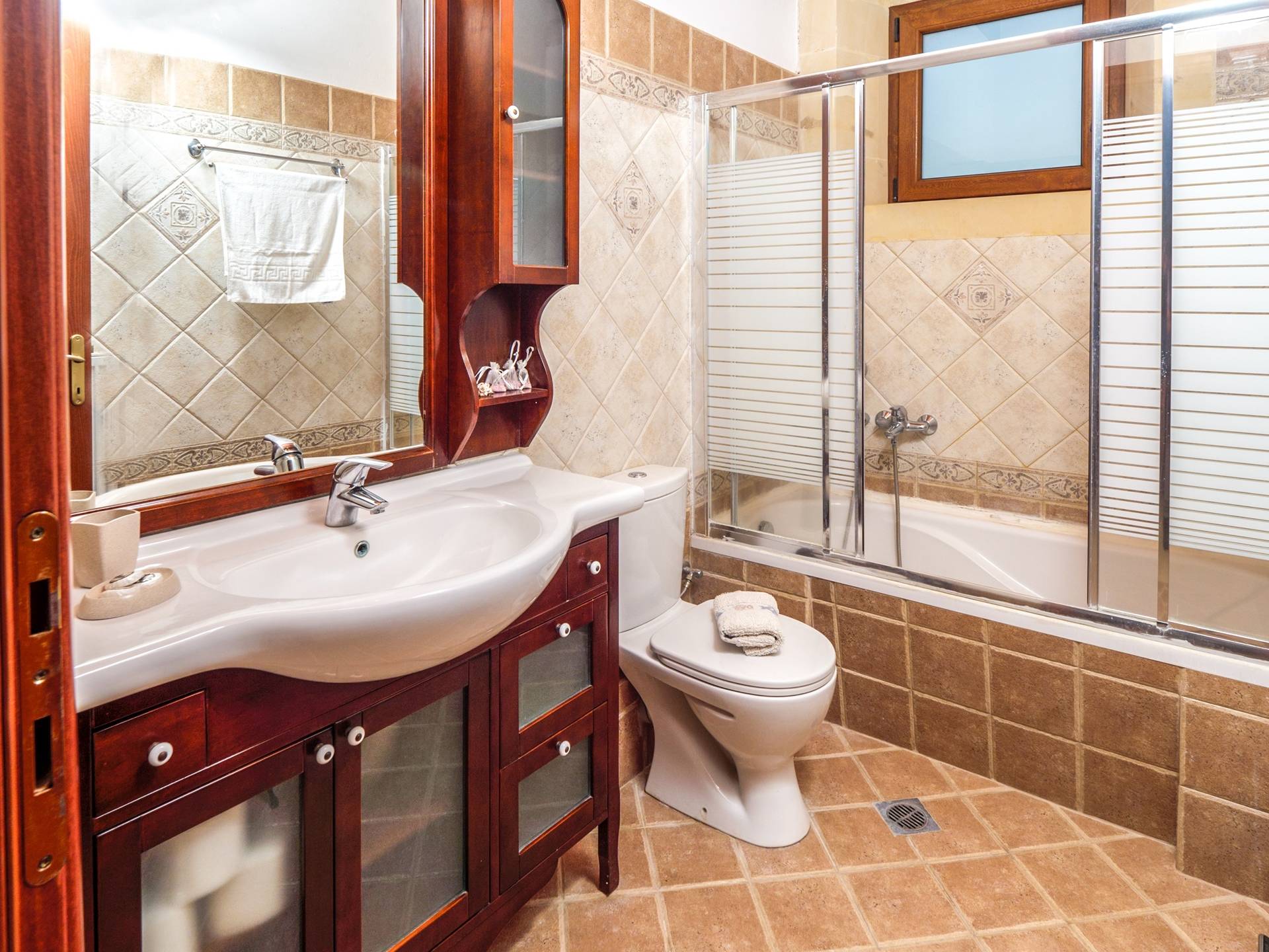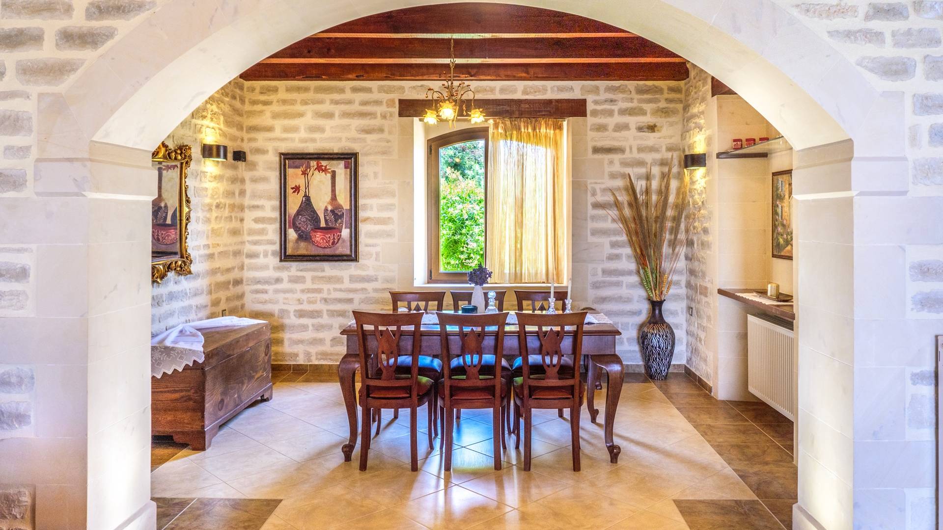 Eros Villa Crete dispone di 4 camere da letto e tre bagni adatti per 8 persone. L'ingresso conduce allo spazioso soggiorno/sala da pranzo a pianta aperta con camino, TV satellitare e confortevole area salotto. La cucina è moderna e completamente attrezzata con fornello elettrico, frigorifero/congelatore, lavastoviglie, forno a microonde, macchina per il caffè, ecc. e dispone anche di un balcone. Sempre su questo piano si trova una camera con due letti singoli e una doccia/WC. Una scala interna conduce al piano superiore dove si trovano altre tre camere da letto.