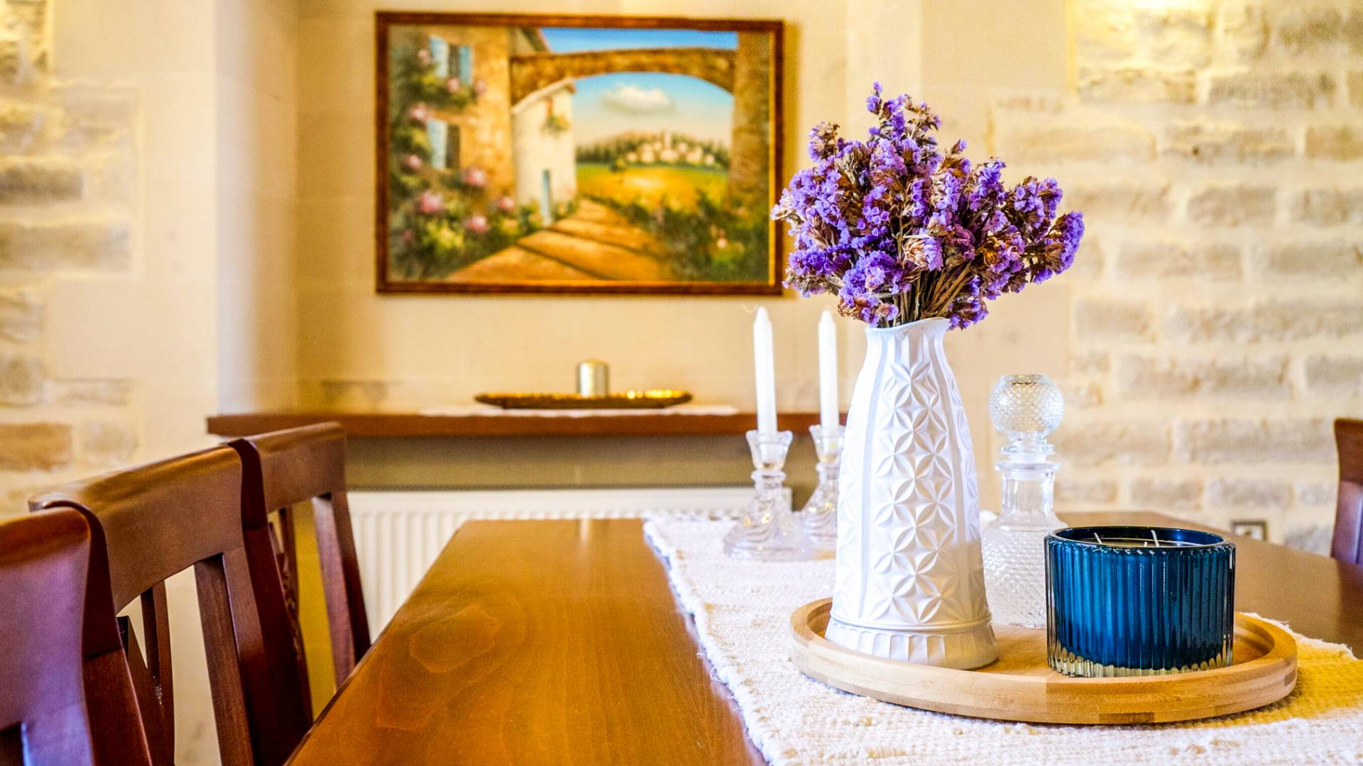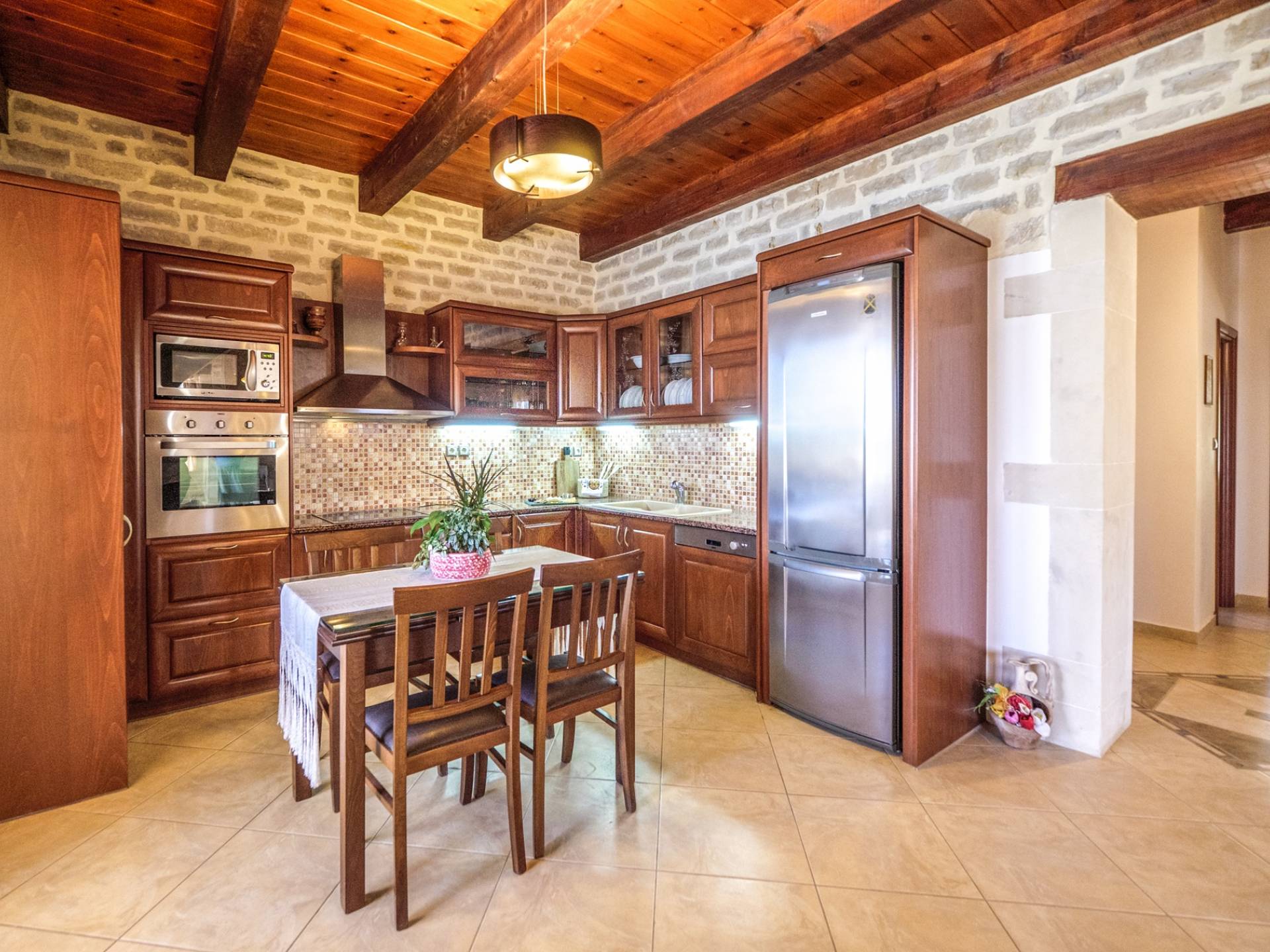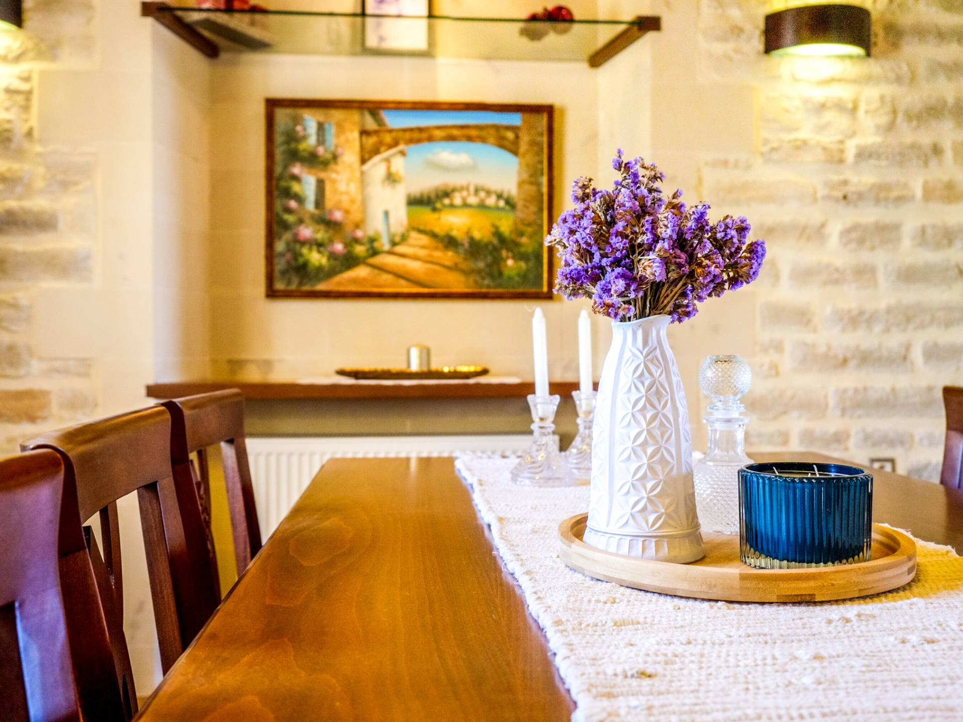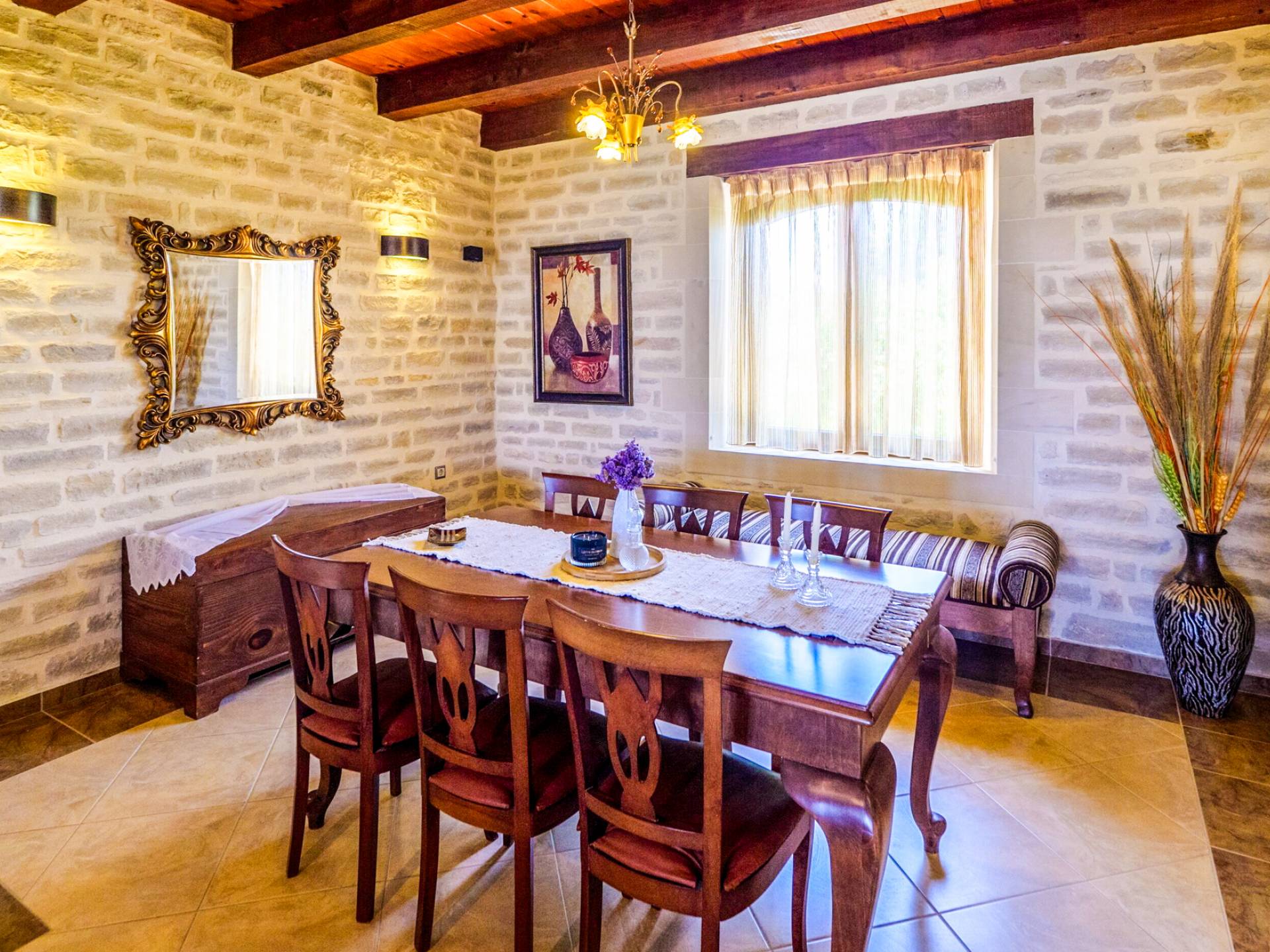 Eros Villa Crete dispone di 4 camere da letto e tre bagni adatti per 8 persone. L'ingresso conduce allo spazioso soggiorno/sala da pranzo a pianta aperta con camino, TV satellitare e confortevole area salotto. La cucina è moderna e completamente attrezzata con fornello elettrico, frigorifero/congelatore, lavastoviglie, forno a microonde, macchina per il caffè, ecc. e dispone anche di un balcone. Sempre su questo piano si trova una camera con due letti singoli e una doccia/WC. Una scala interna conduce al piano superiore dove si trovano altre tre camere da letto.