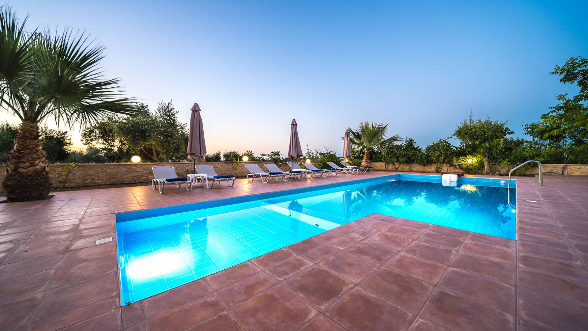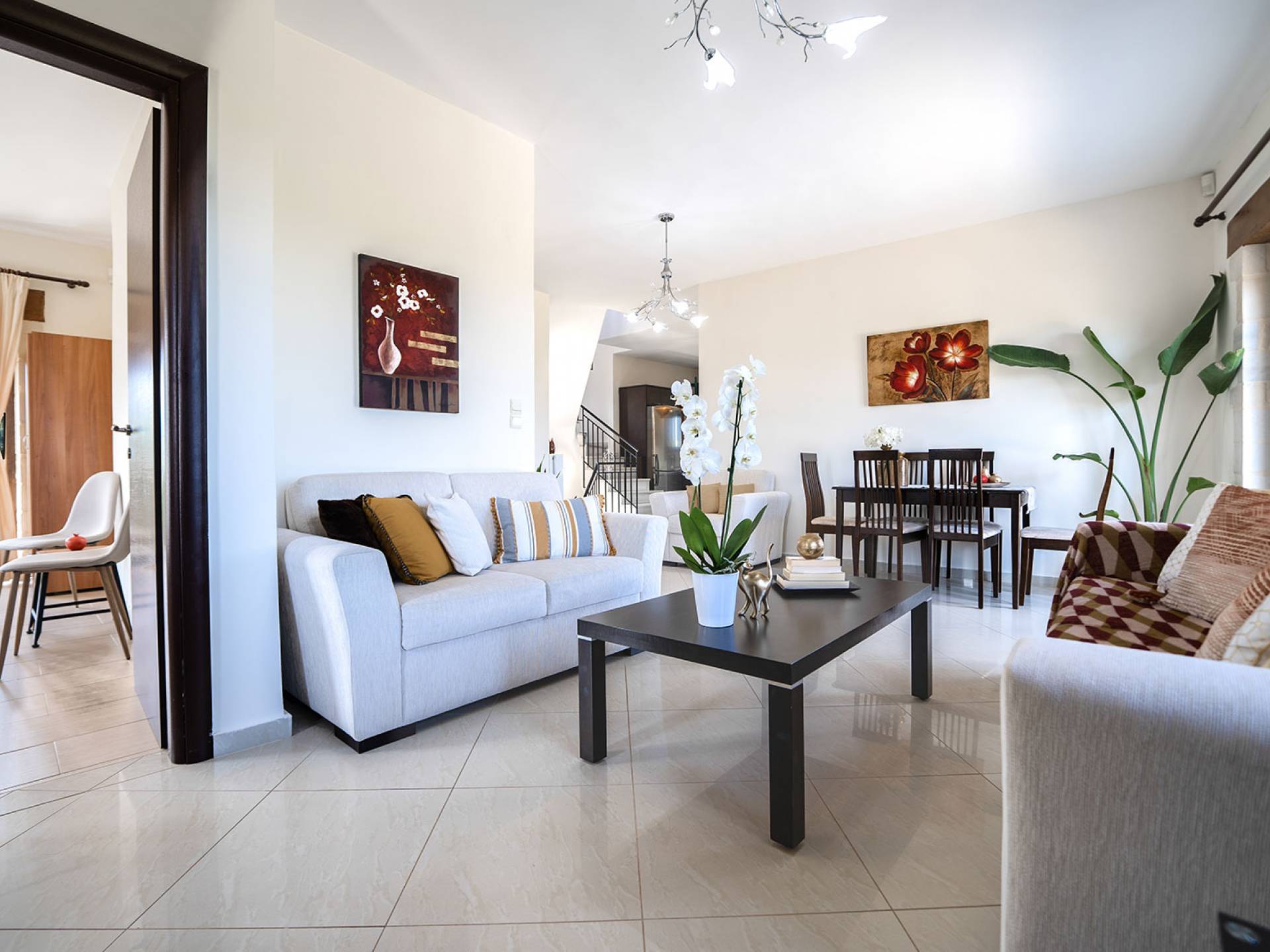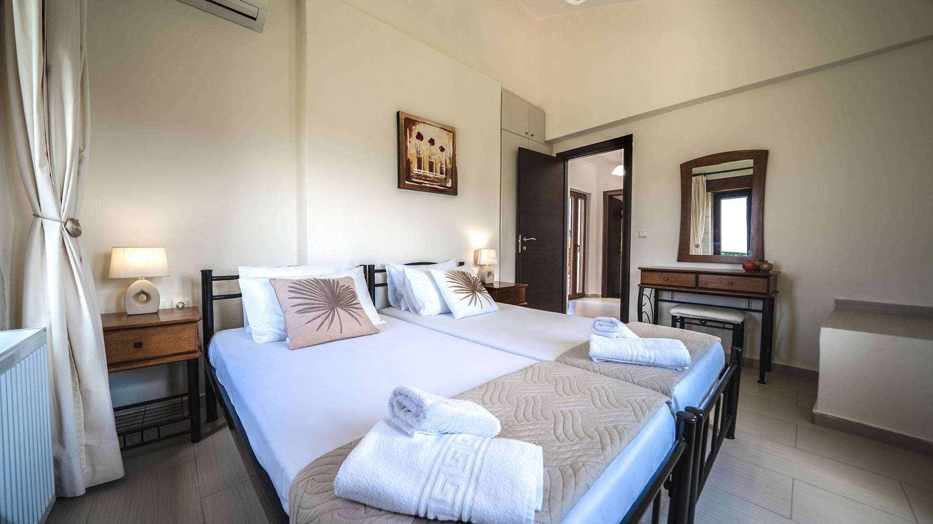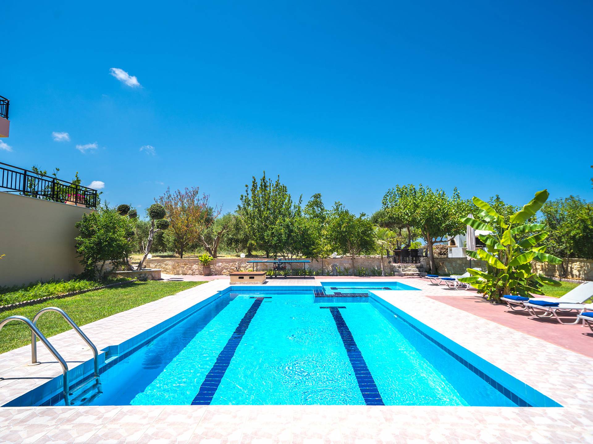 Ogni villa è composta da un interno confortevole, quattro camere da letto matrimoniali, un soggiorno, una sala da pranzo, un camino tradizionale, due bagni, una cucina completamente attrezzata, uno spazio semi-esterno e ampie verande. Entrambe le ville possono ospitare fino a 16 persone. Tutte le camere hanno una vista d'insieme sull'esclusivo paesaggio cretese. Grande enfasi è data alla decorazione che segue linee semplici e moderne che variano, con tocchi personali diversi in ogni villa per renderla unica. L'area circostante di entrambe le ville è circondata da un giardino con prato inglese, aiuole con fiori colorati, piscina privata e offre possibilità di relax e benessere. Ogni villa ha il proprio barbecue per indimenticabili serate barbecue.