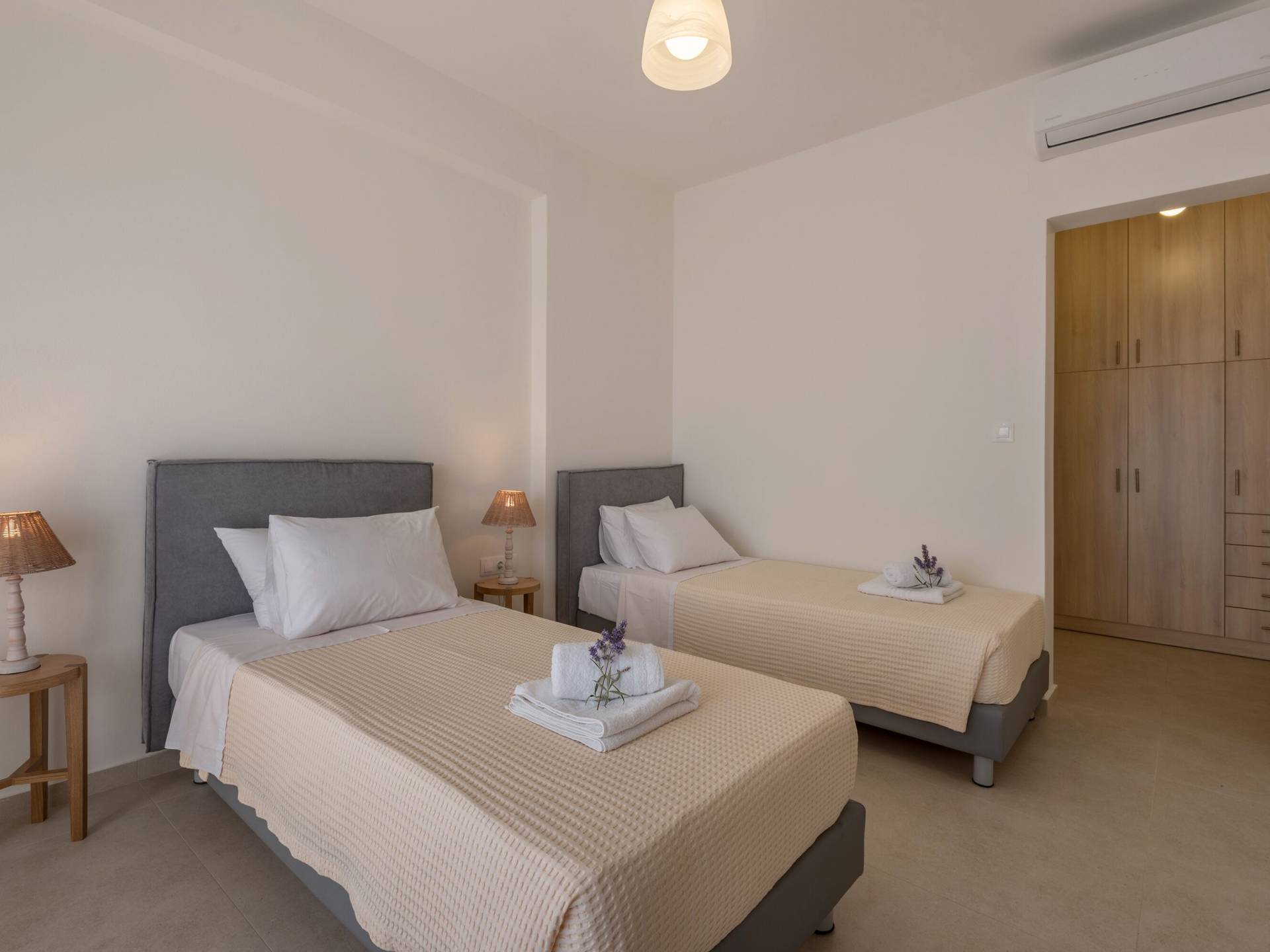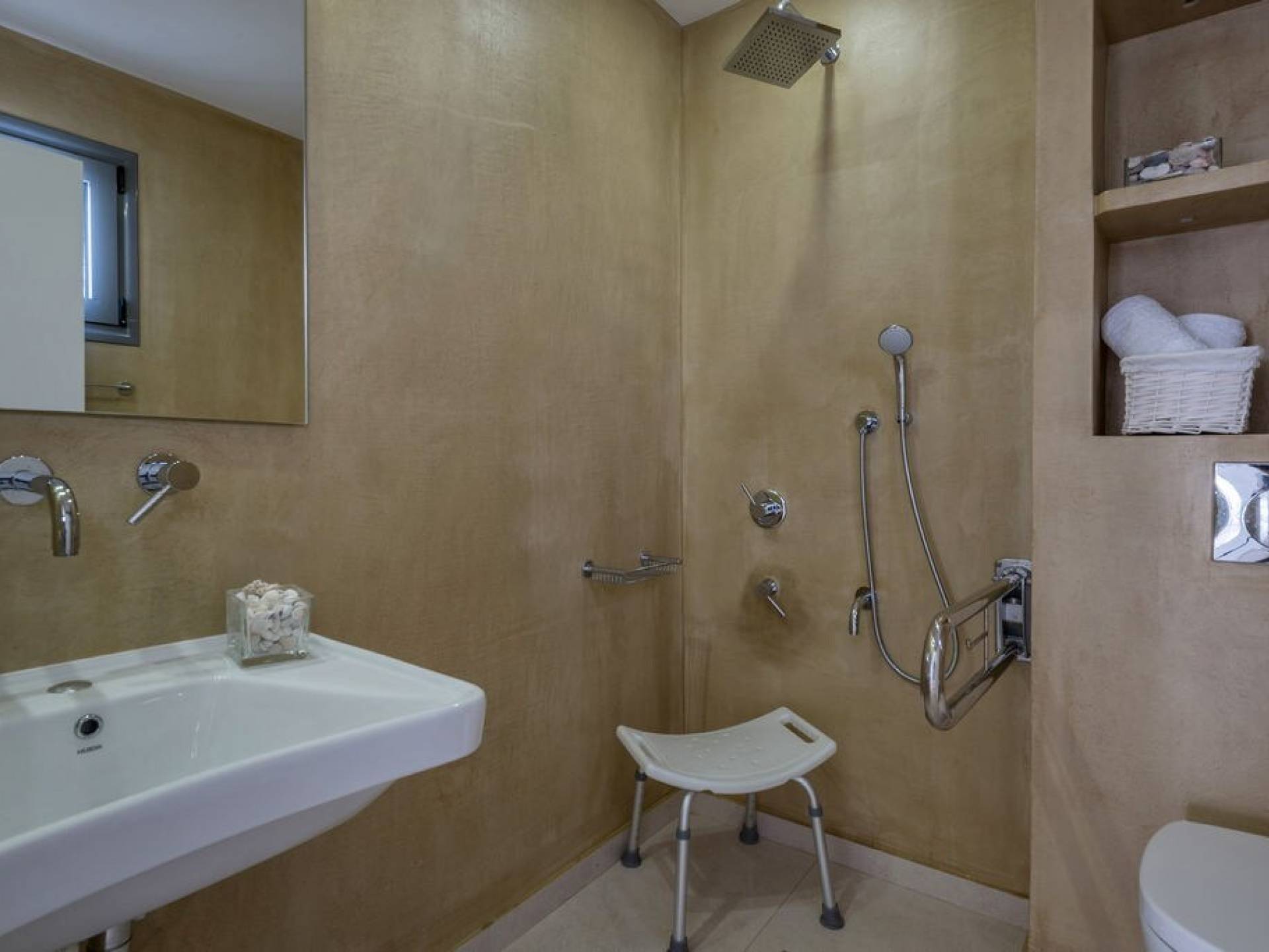 C'è anche un piccolo WC e una spaziosa camera da letto che soddisfa tutte le specifiche per disabili. Il piano terra accede ai giardini e alla piscina privata. Al primo piano ci sono altre due camere da letto soleggiate e ariose con bagno en-suite entrambe si aprono su ampie verande con vista mozzafiato. L'area esterna è altrettanto attraente con una piscina privata di 40 mq. Levanda Villa Rethymno è adatta per persone con difficoltà motorie. Tra le altre cose, è dotato di rampe e ampie porte che garantiscono un accesso agevole a tutte le aree, mentre una speciale rampa e corrimano consentono l'accesso alla piscina. Inoltre, c'è un WC appositamente adattato e molto spazio intorno ai mobili per facilitare la mobilità.