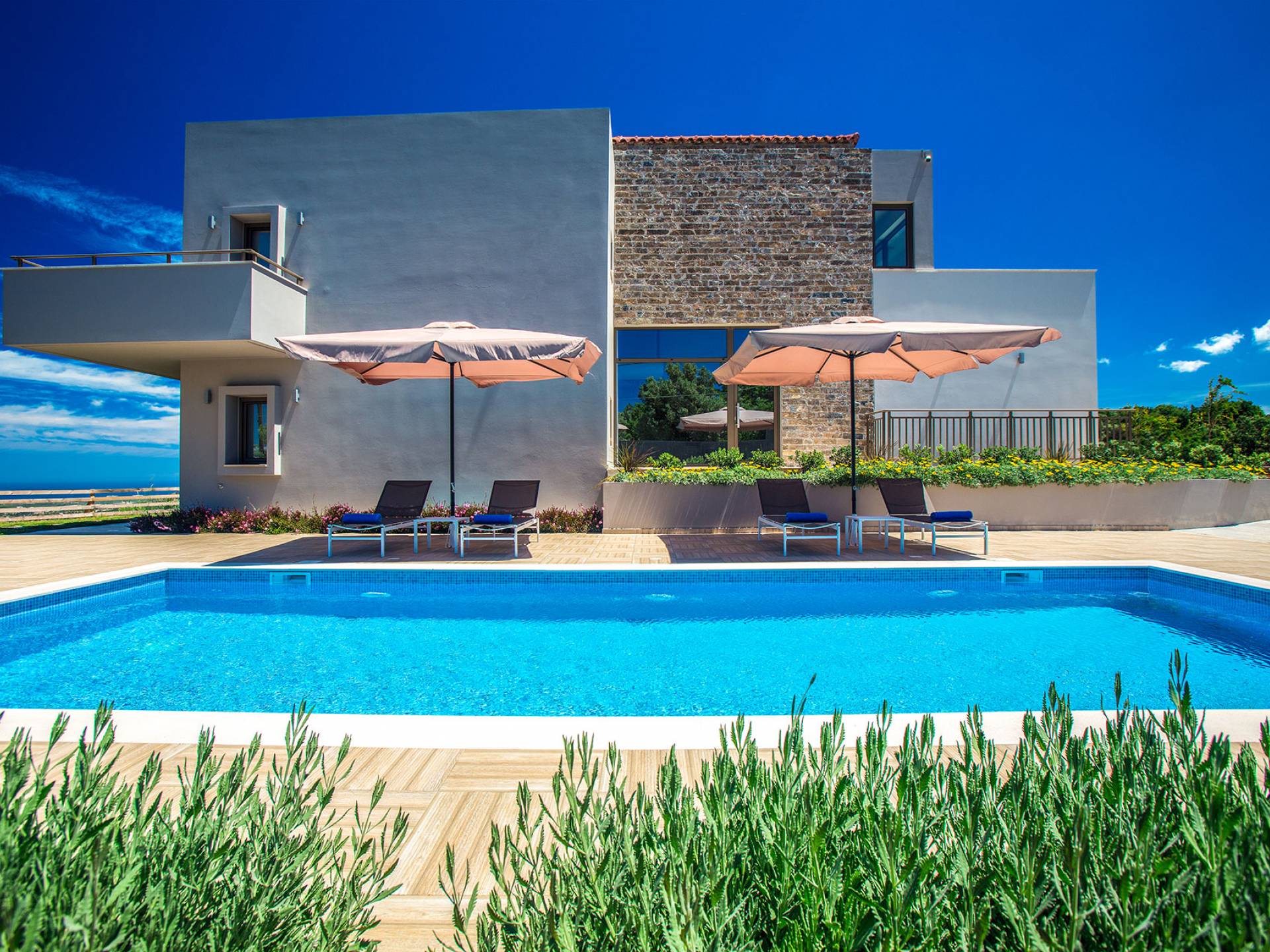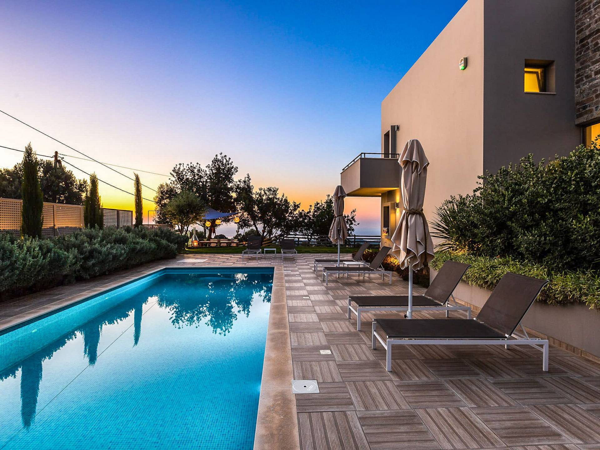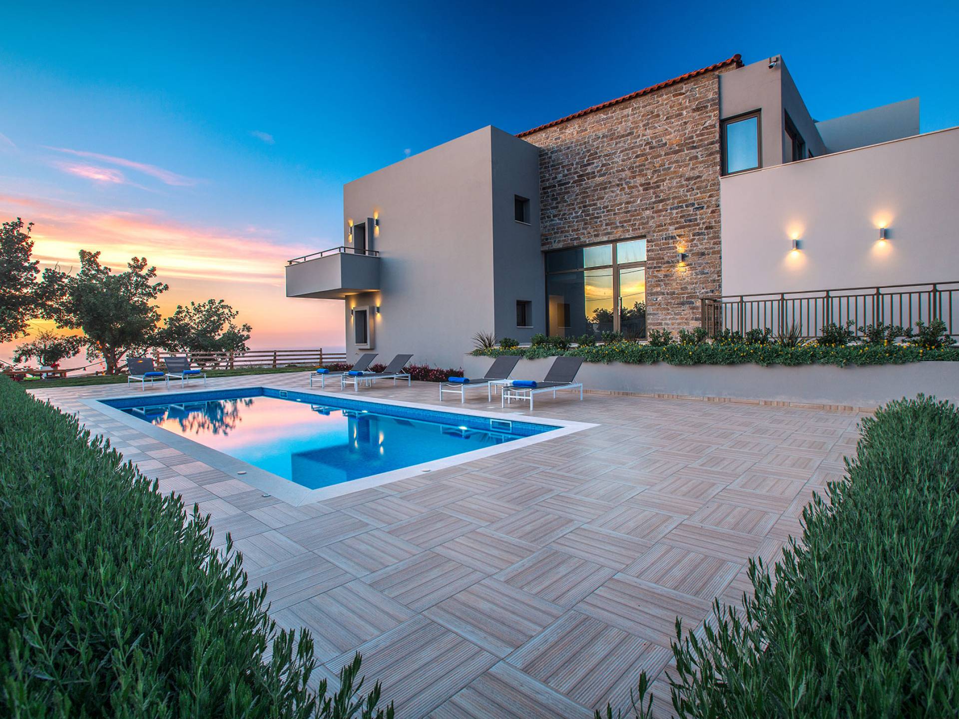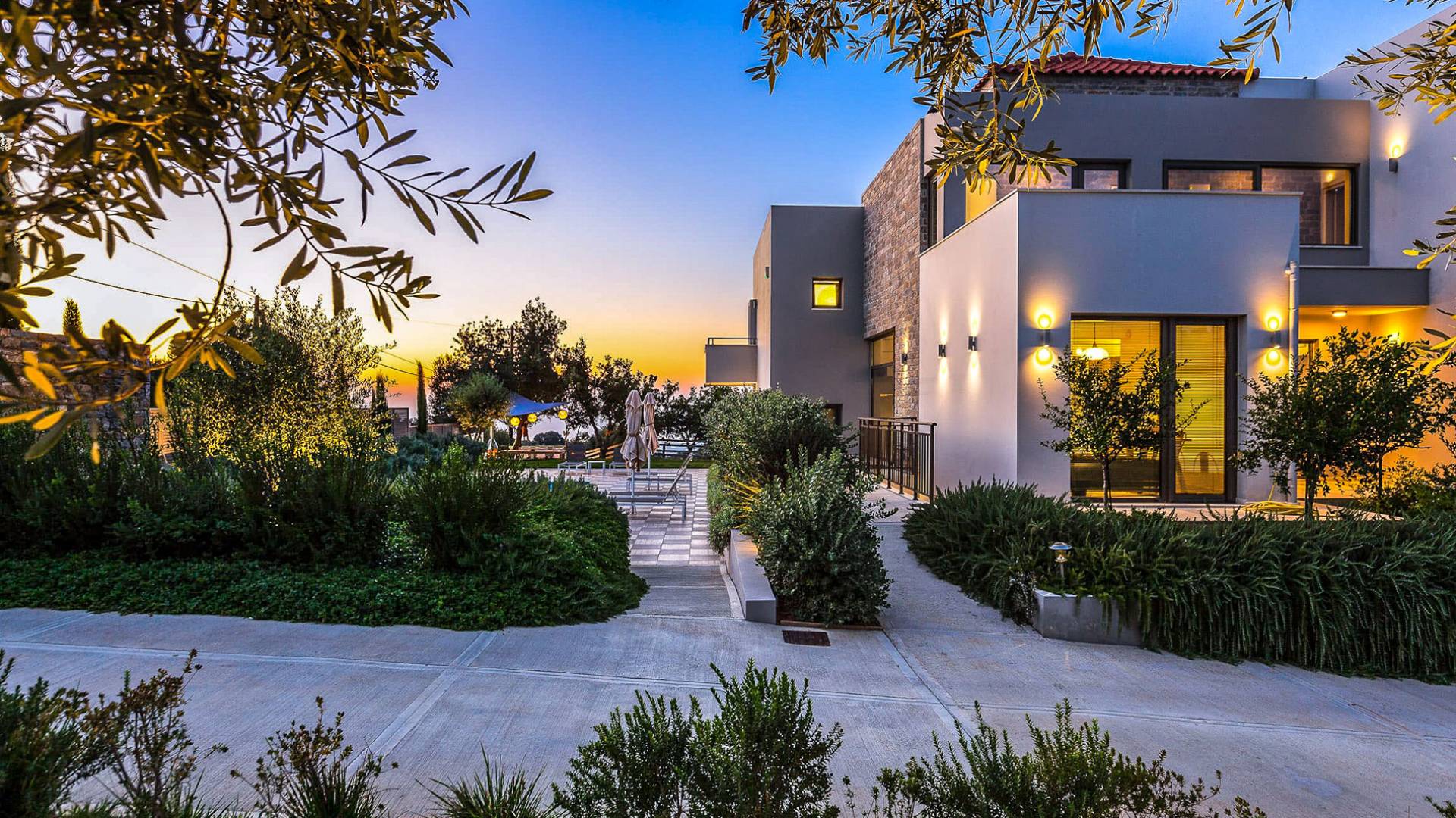 Villa Essence Creta, un’elegante villa di 250 m² su due livelli con dependance indipendente, offre totale privacy, servizi di lusso e viste mozzafiato sul paesaggio cretese.