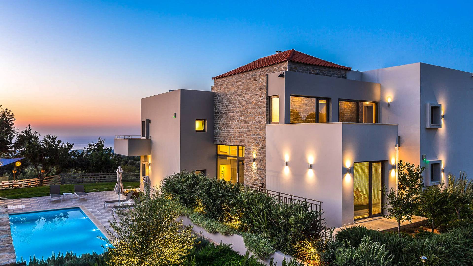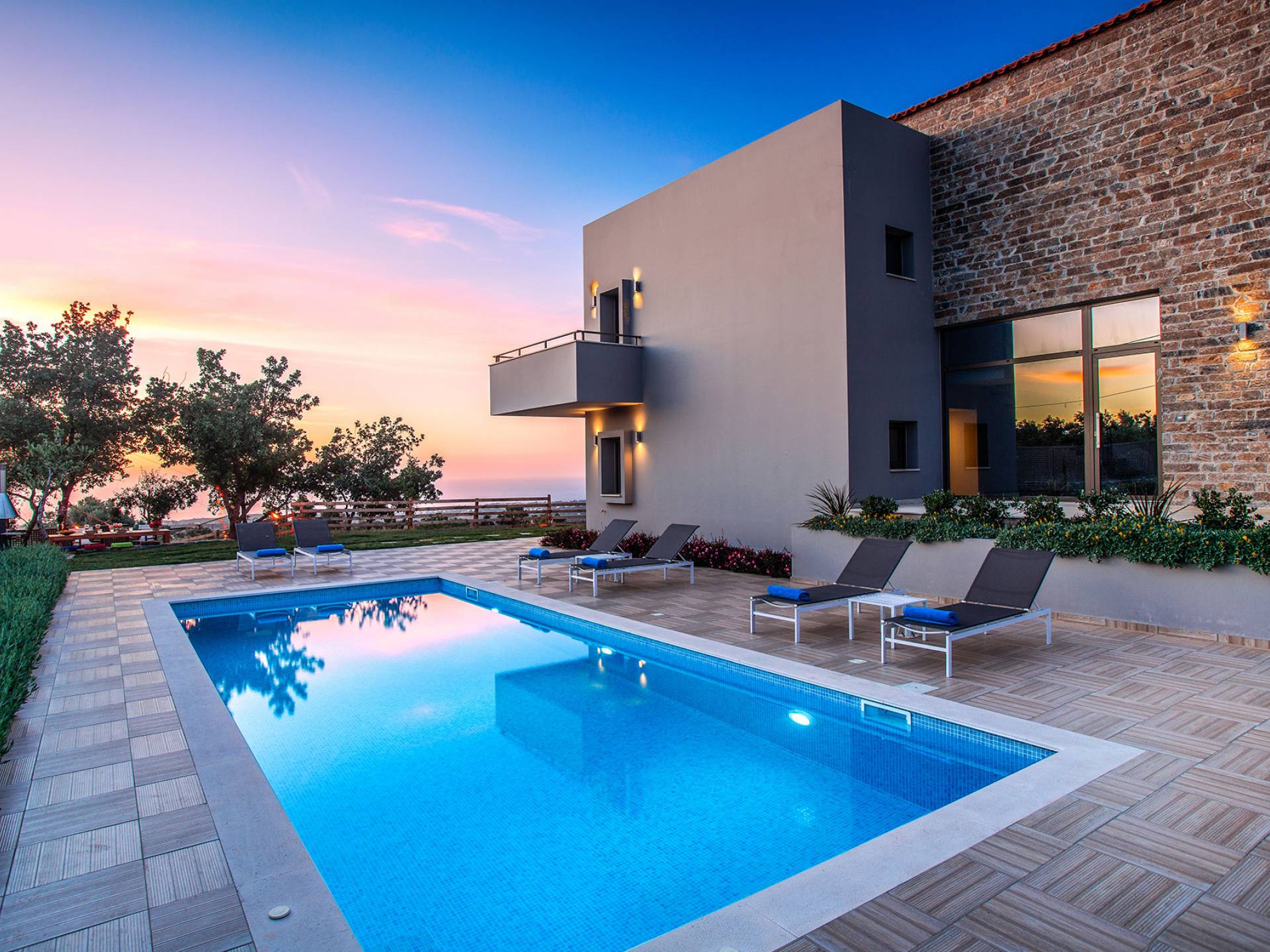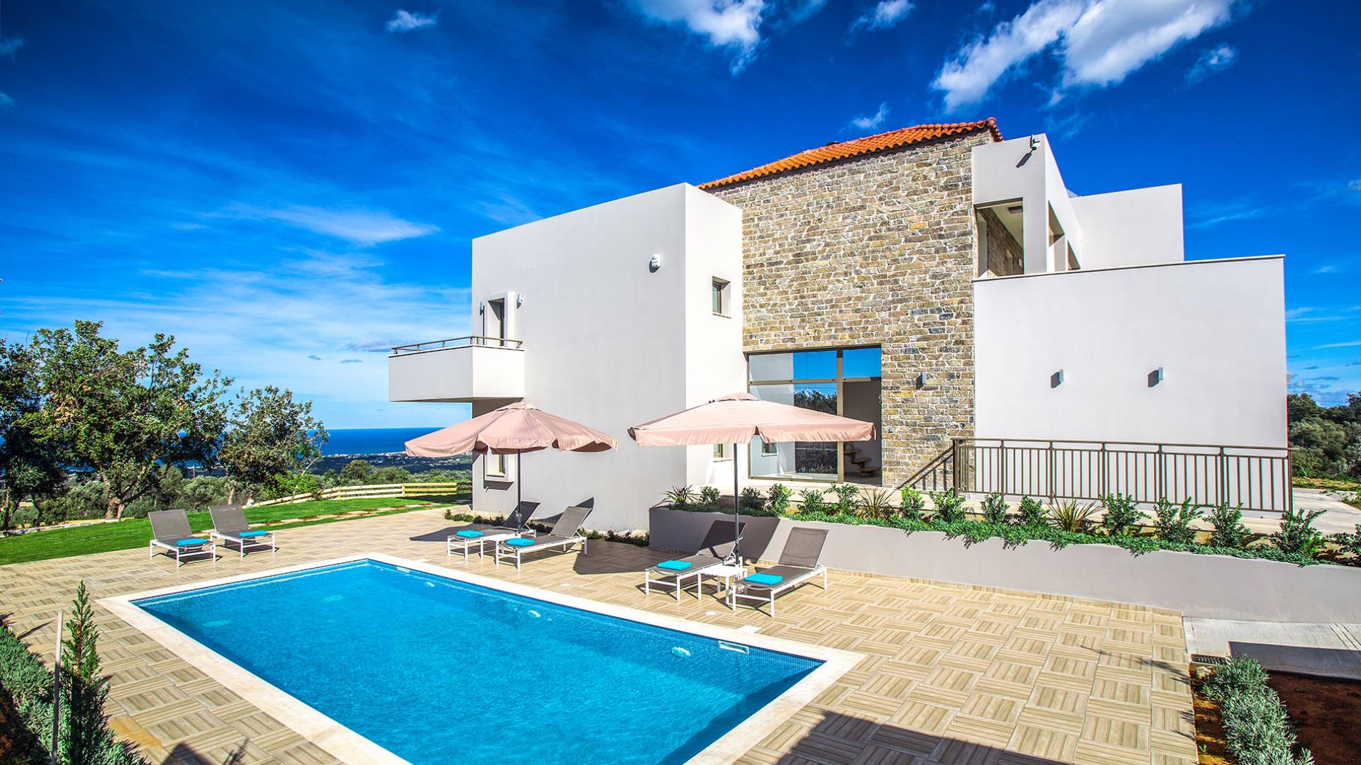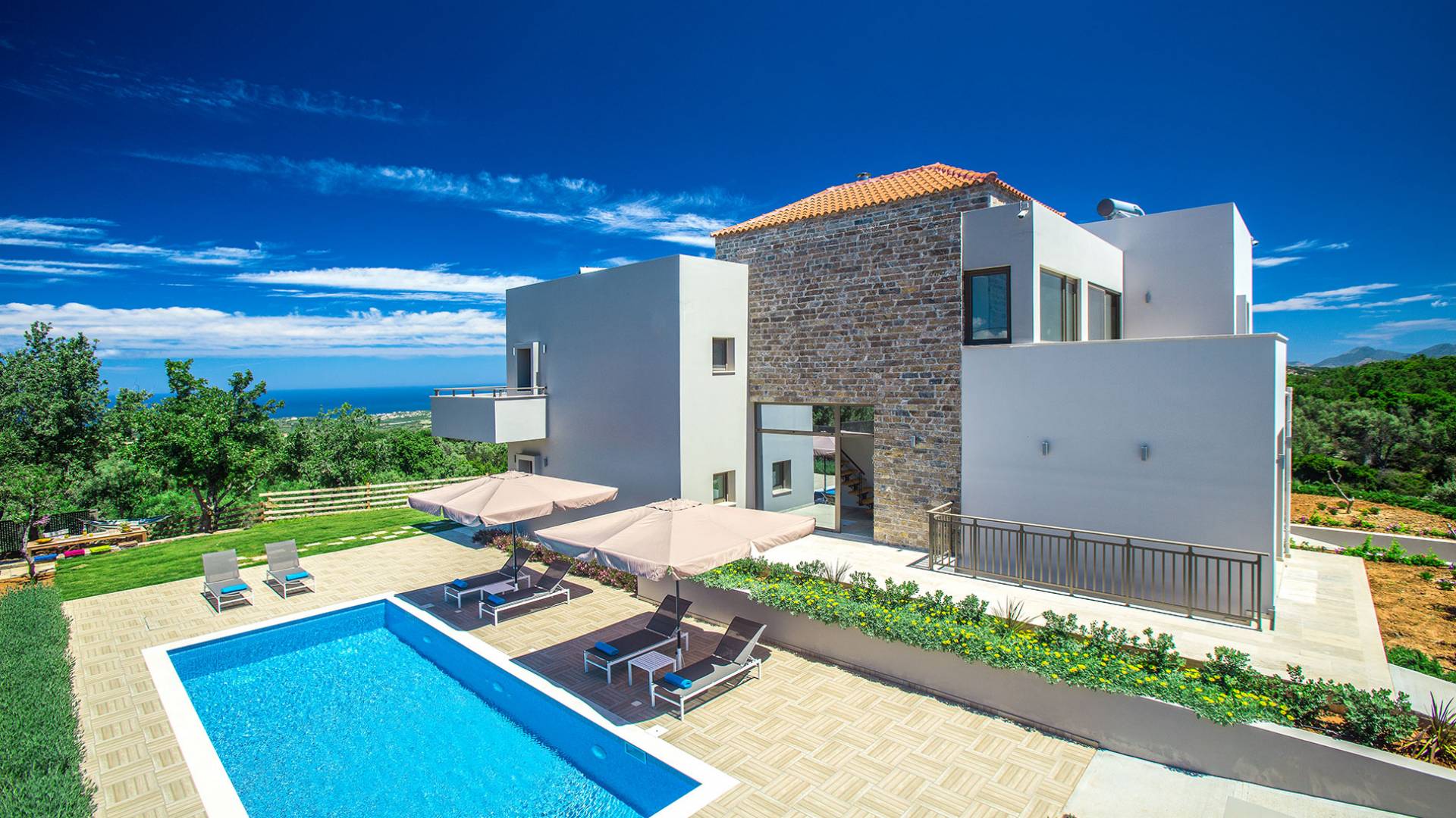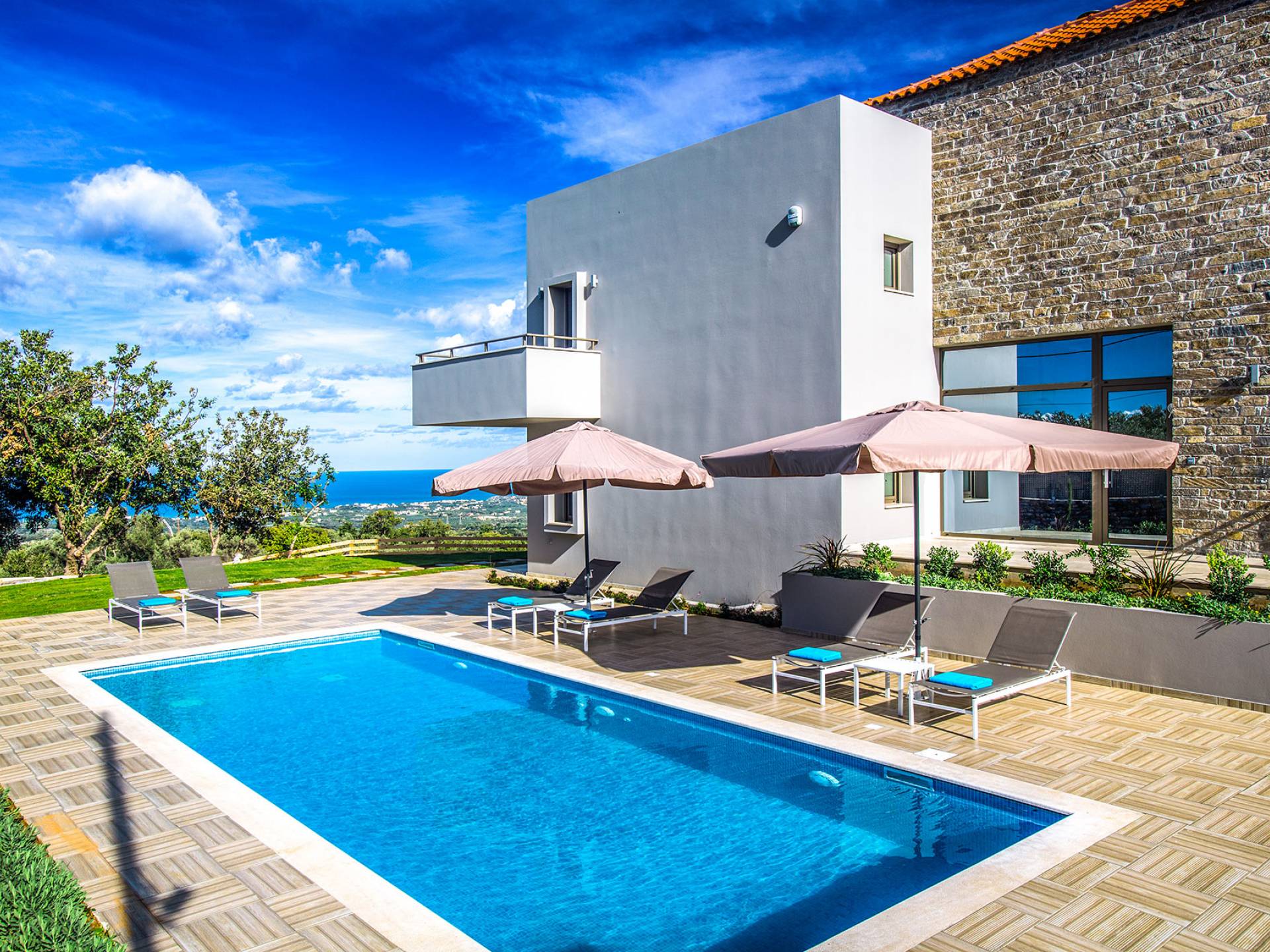 Villa Essence Creta, un’elegante villa di 250 m² su due livelli con dependance indipendente, offre totale privacy, servizi di lusso e viste mozzafiato sul paesaggio cretese.