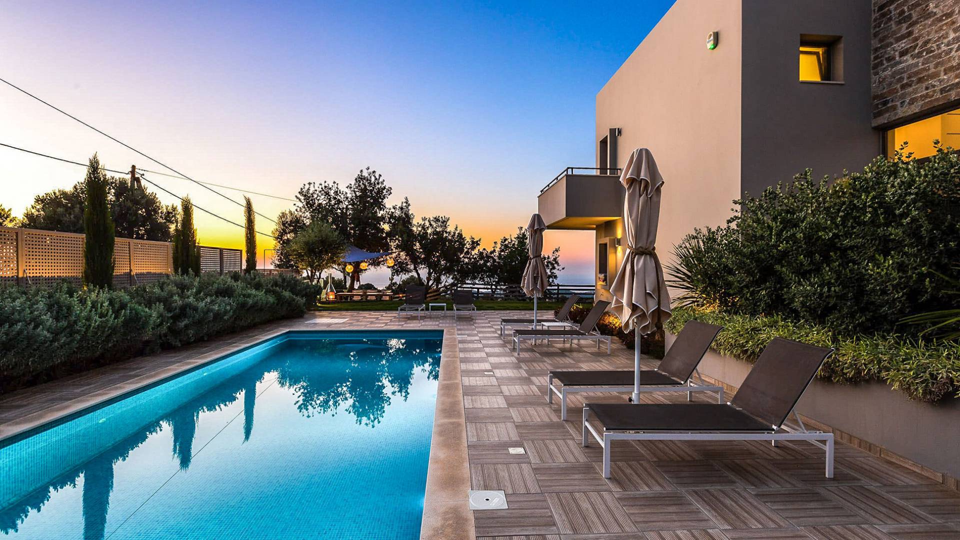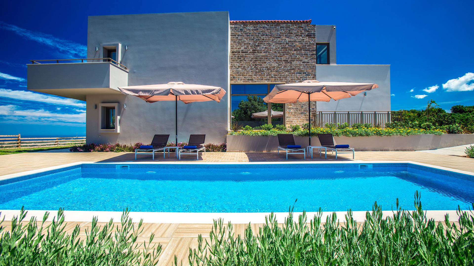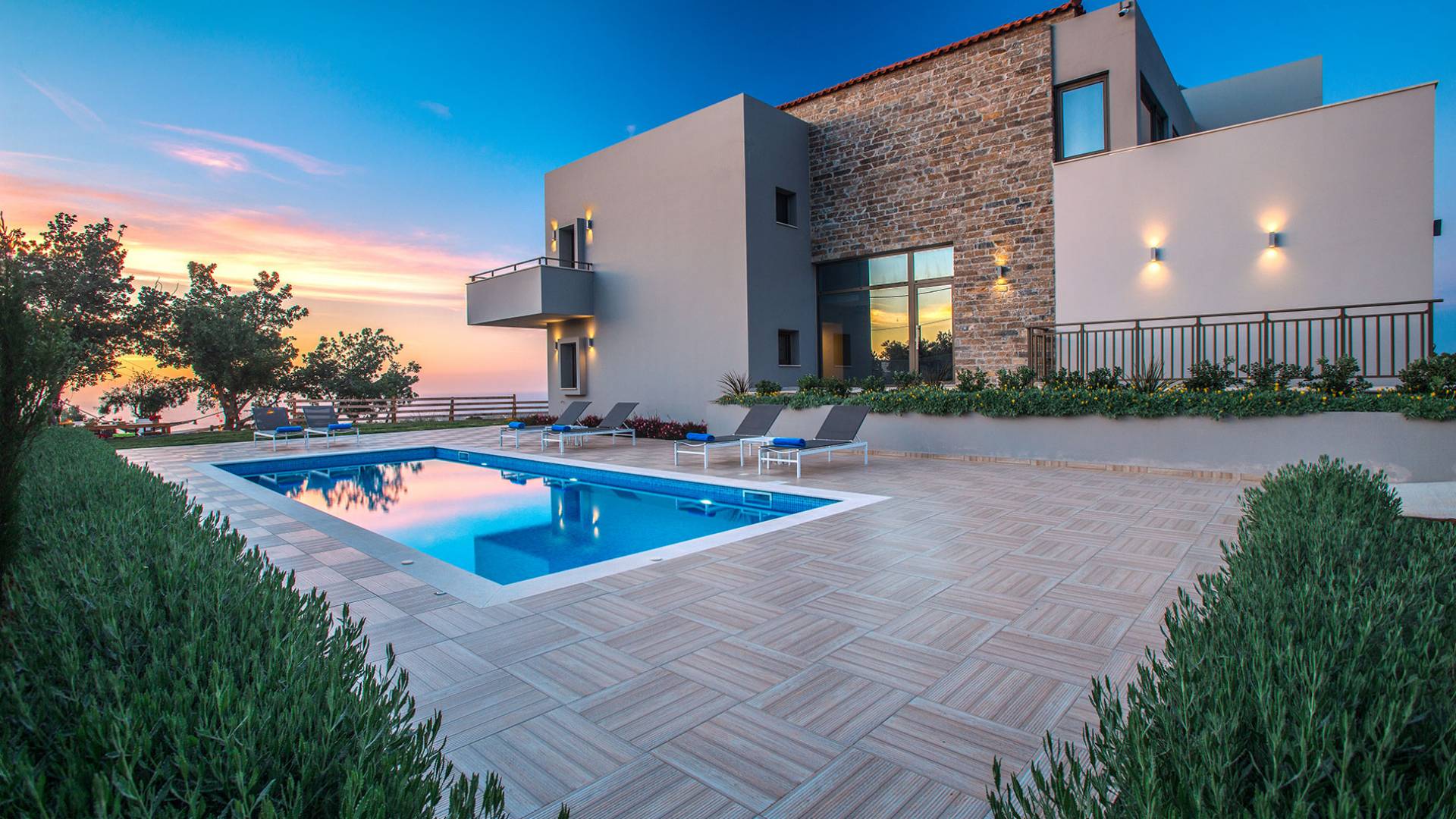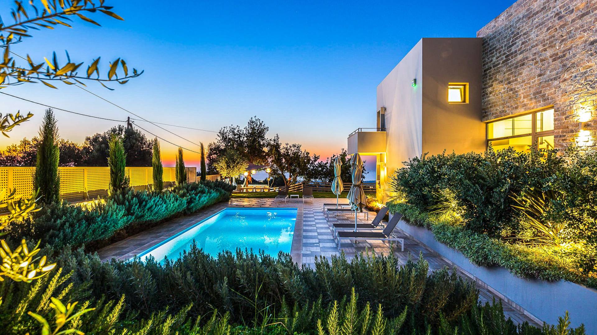 Villa Essence Creta, un’elegante villa di 250 m² su due livelli con dependance indipendente, offre totale privacy, servizi di lusso e viste mozzafiato sul paesaggio cretese.