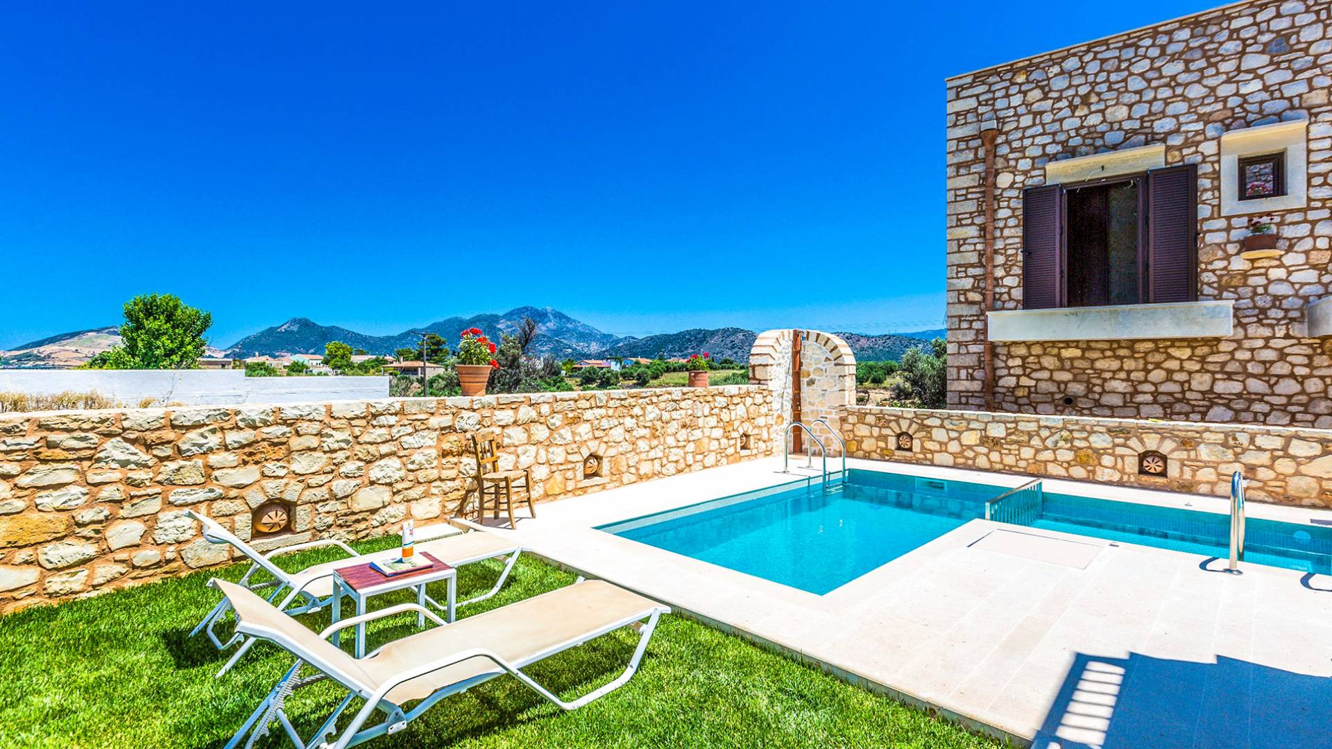 Mirva Villa Rethymno è costruita in modo tradizionale utilizzando materiali cretesi naturali come pietra, legno e terra. Si compone di 2 camere da letto che possono ospitare 4 persone, un bagno, un WC e una spaziosa cucina aperta con soggiorno. Altre 2 persone possono dormire nel soggiorno. Mirva Villa Rethymno dispone di una piscina privata una parte separata nella piscina per bambini e idromassaggio. L'acqua calda è fornita da pannelli solari, la villa è dotata di aria condizionata ed è possibile utilizzare la connessione Wi-Fi gratuita.