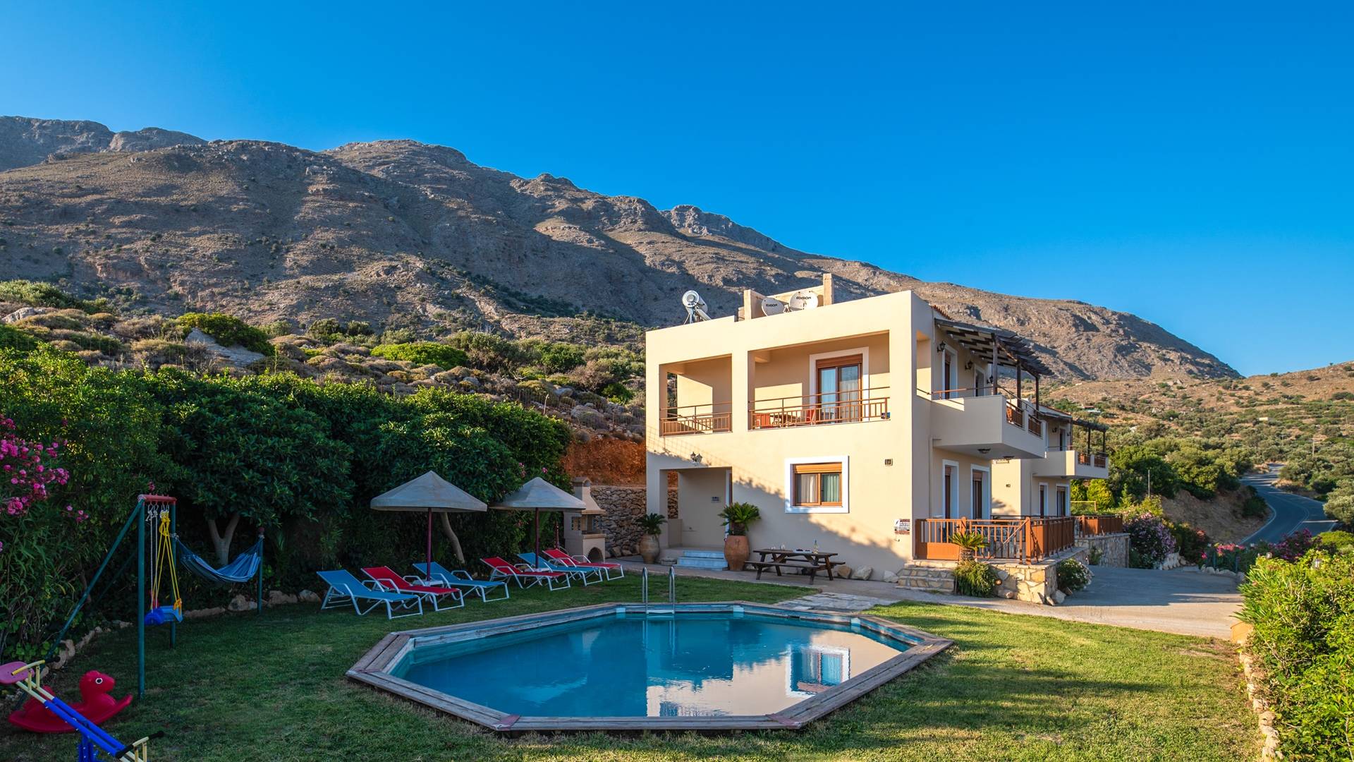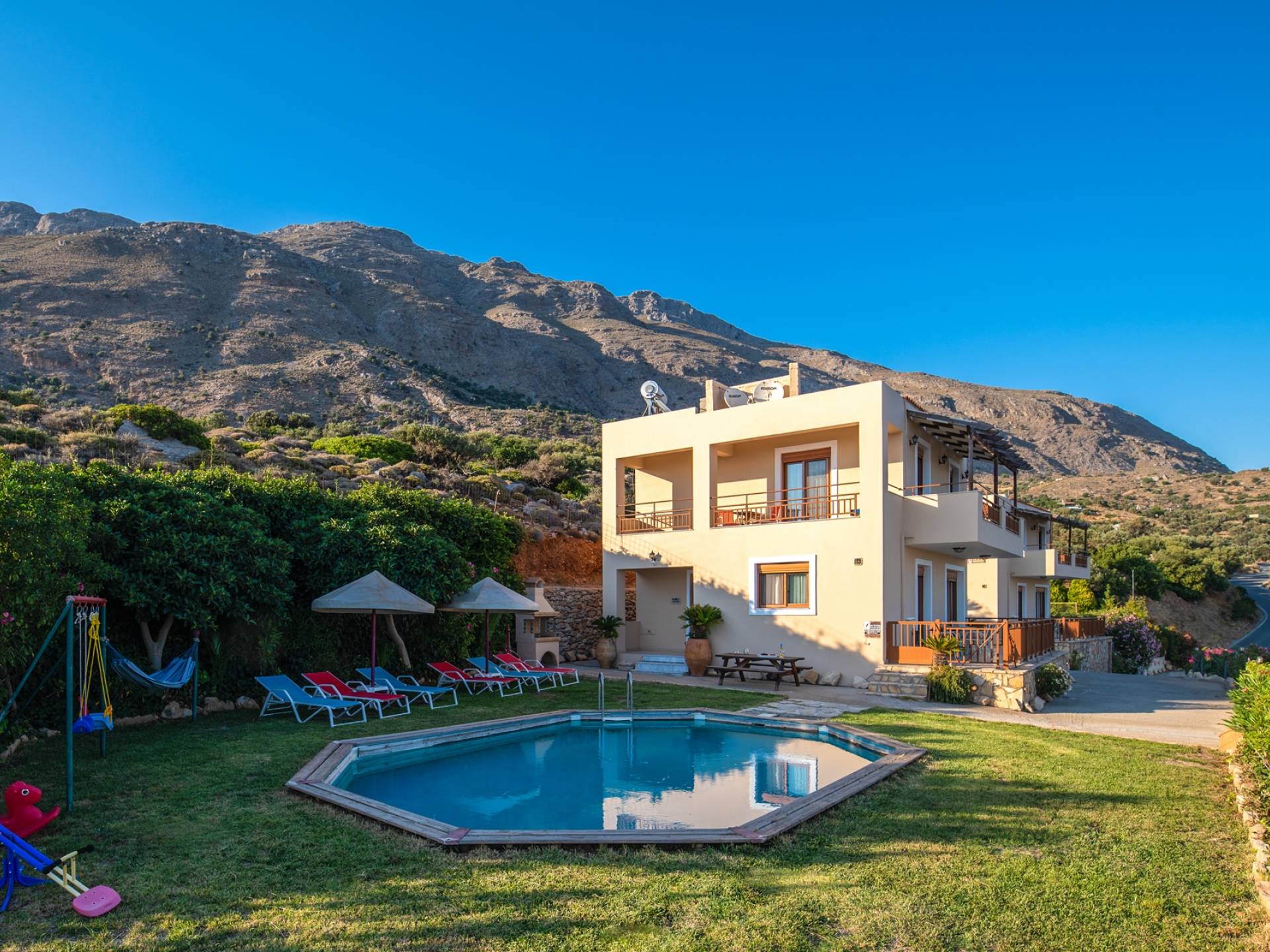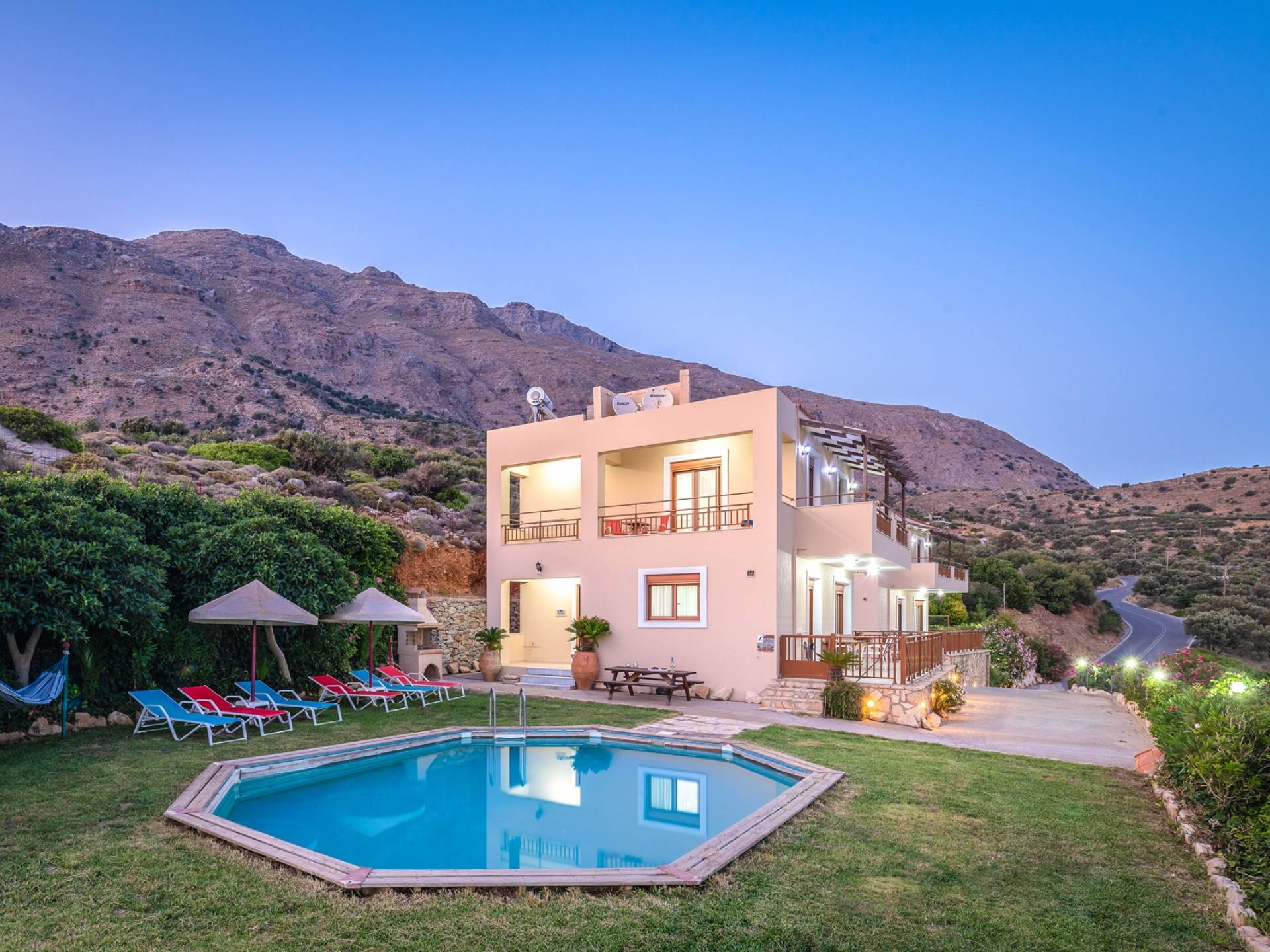 Intorno alla villa c'è un bellissimo giardino paesaggistico e una piscina privata, circondata da lettini. I mobili da giardino sono, inoltre, disponibili sui balconi. Le viste mozzafiato sul Mar Libico e la piena bellezza naturale di Triopetra di giorno e di notte possono essere godute da entrambe le ville. Fai una passeggiata fino alle spiagge di Triopetra, che molti ritengono tra le migliori della Grecia e goditi le piccole baie e calette tranquille, che hanno acque cristalline e spiagge incontaminate e assolate. Triopetra Villas Panagia è il luogo di vacanza ideale per momenti unici e memorabili sotto il sole di Creta.