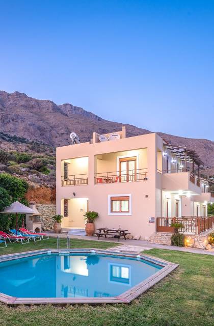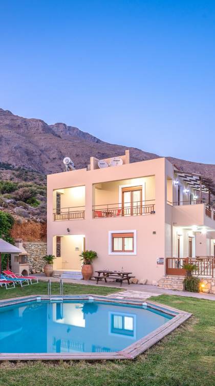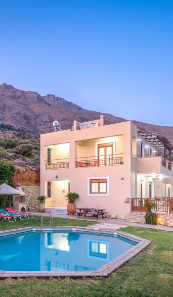 Il complesso Triopetra Triopetra Villas Panagia è composto da 2 lussuose ville "Dimitris" e "Kadiani". Progettate in modo squisito, entrambe le ville sono state costruite secondo uno standard molto elevato e gli arredi e le strutture di qualità offrono una vacanza di lusso in questa zona incontaminata del sud di Creta che può essere descritta solo come un paradiso. Costruita su circa 4000 metri di terreno, ogni villa ha oltre cento metri di spazio abitativo su 2 piani e può ospitare 5 persone nel lusso con tutti i comfort moderni inclusi. Le viste mozzafiato sul superbo Mar Libico e la piena bellezza naturale di Triopetra di giorno e di notte possono essere godute da entrambe le ville. Una passeggiata fino alle spiagge di Triopetra, che molti ritengono tra le migliori della Grecia, insieme a piccole baie e calette tranquille offrono ai più esigenti acque cristalline color acquamarina e spiagge incontaminate e soleggiate.