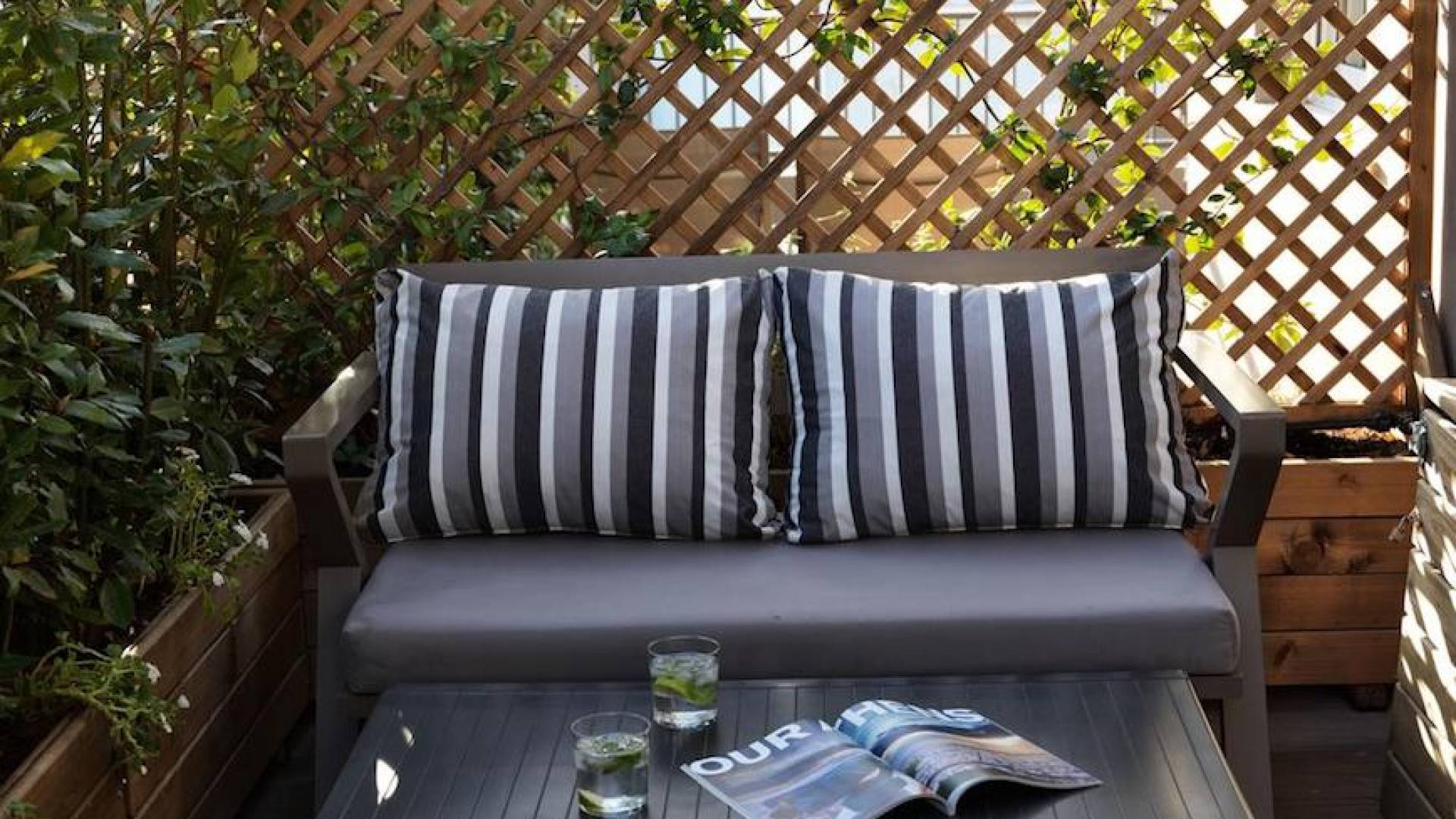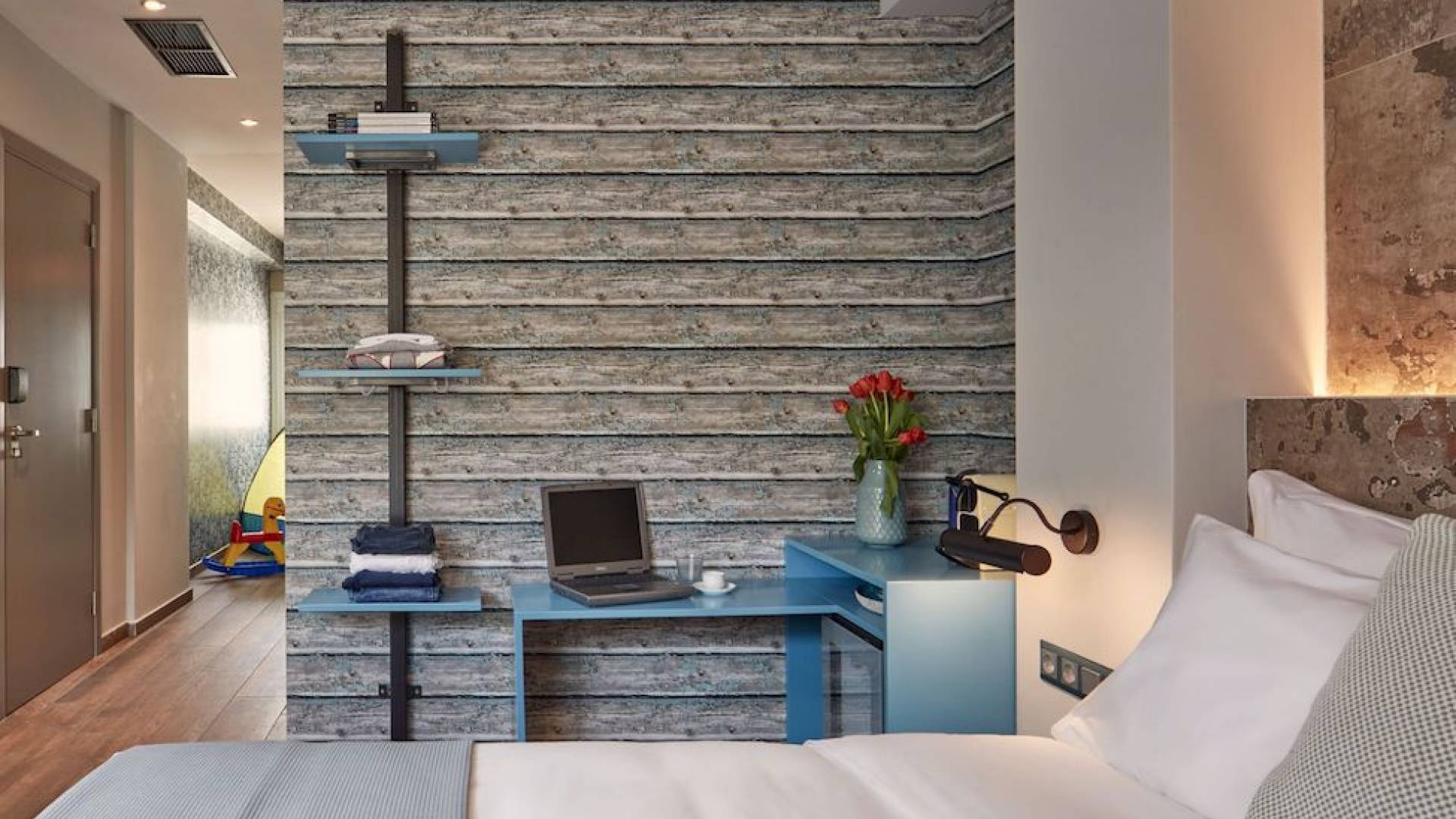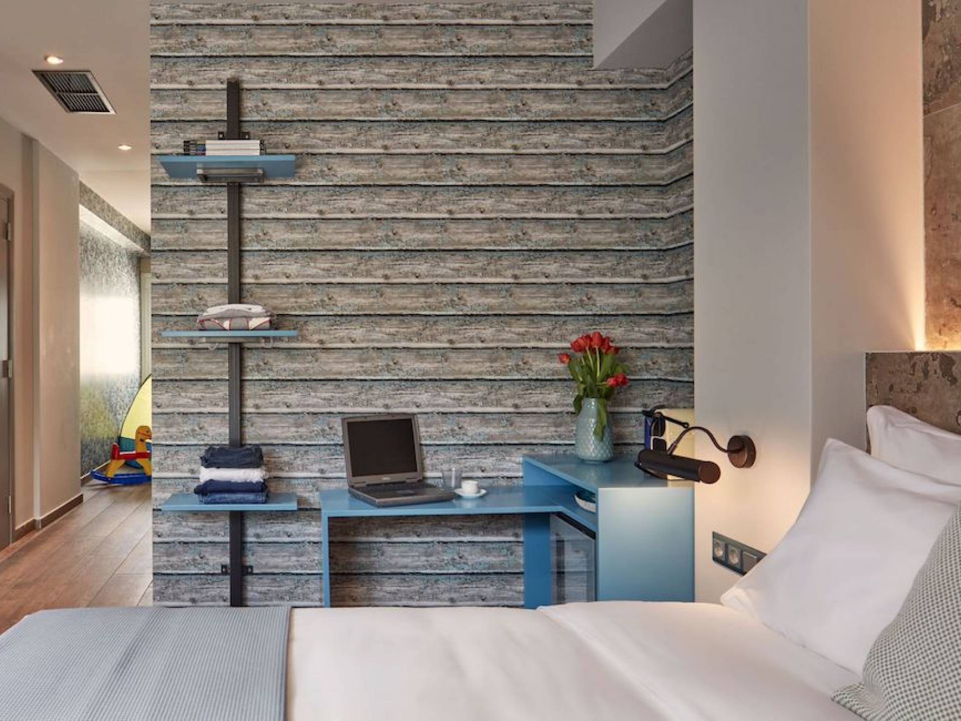 La suite familiare con balcone segue un concetto di design aperto che crea una sensazione di connessione. La camera dei bambini dispone di letti a castello colorati e carta da parati alfabetica ed è collegata da un corridoio aperto a una stanza con carta da parati decorativa e piastrelle di cemento accentuate da mobili artigianali locali. I dettagli premurosi del designer favoriscono un'esperienza personalizzata che ti fa sentire a casa. Il balcone della camera è l'ideale per rilassarsi godendosi il clima soleggiato ateniese.