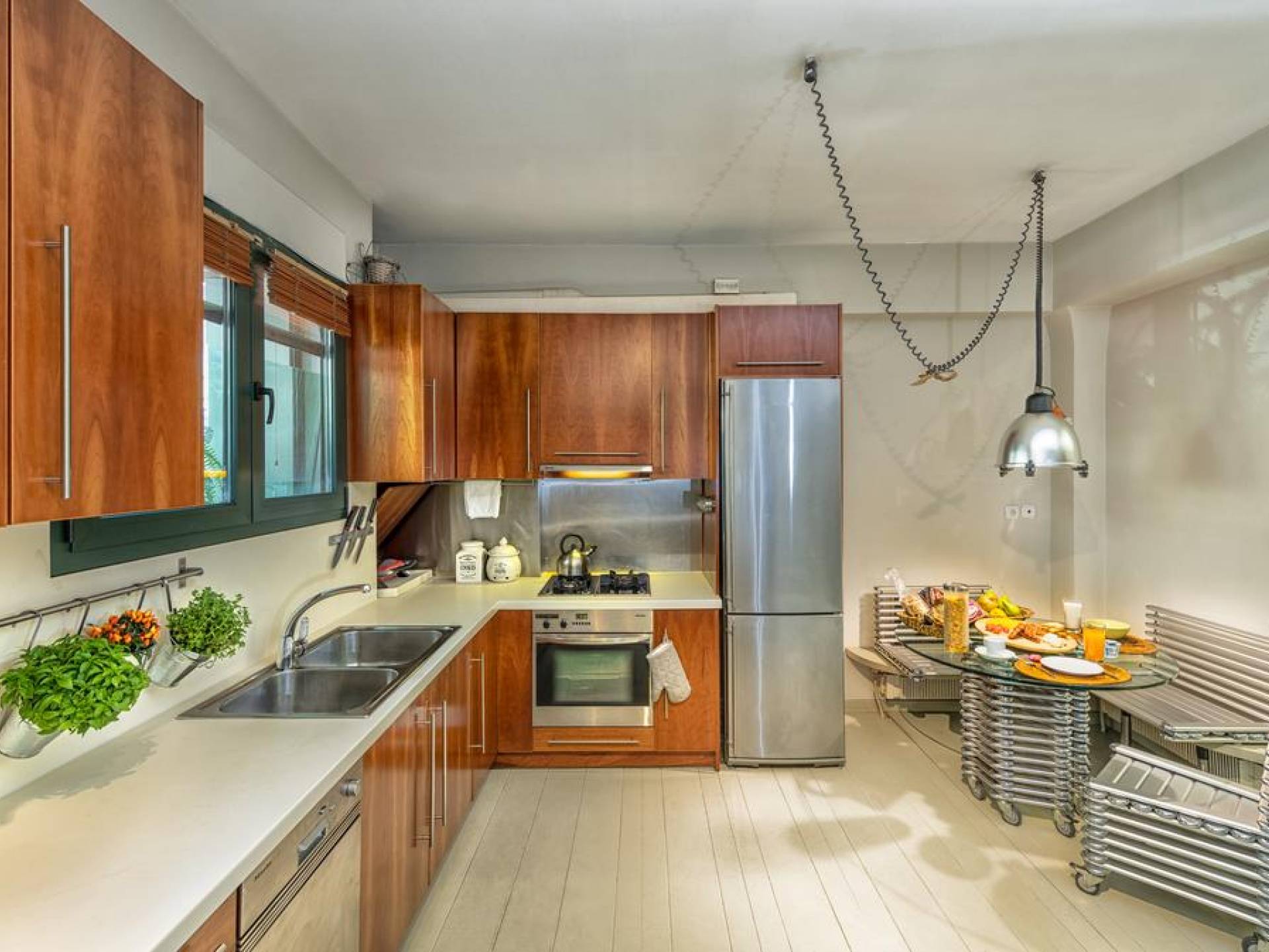 A pochi passi da Kallimarmaro, il primo (1896) Stadio dei Giochi Olimpici, questa residenza di 3 piani, che può ospitare un massimo di 8 persone. Residence Kallimarmaro è un complesso di due edifici separati: la casa moderna principale e un piccolo edificio neoclassico rigorosamente ristrutturato. Tra di loro, al piano terra, dove si trova la piscina, si trova un rigoglioso patio piantumato con 5 enormi alberi da frutto più un vero canestro da basket, per gli appassionati di basket.
