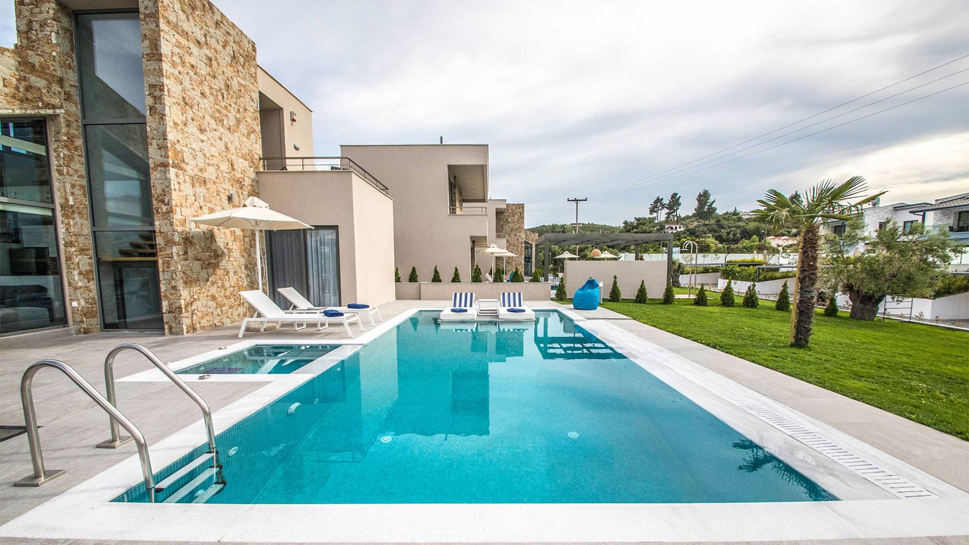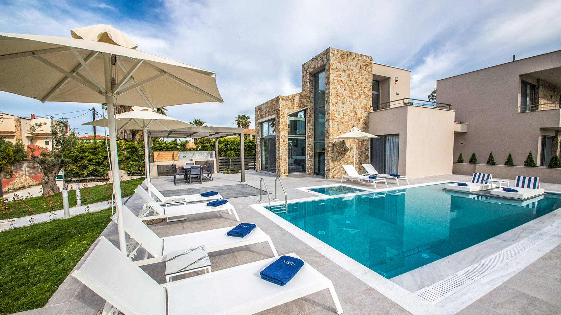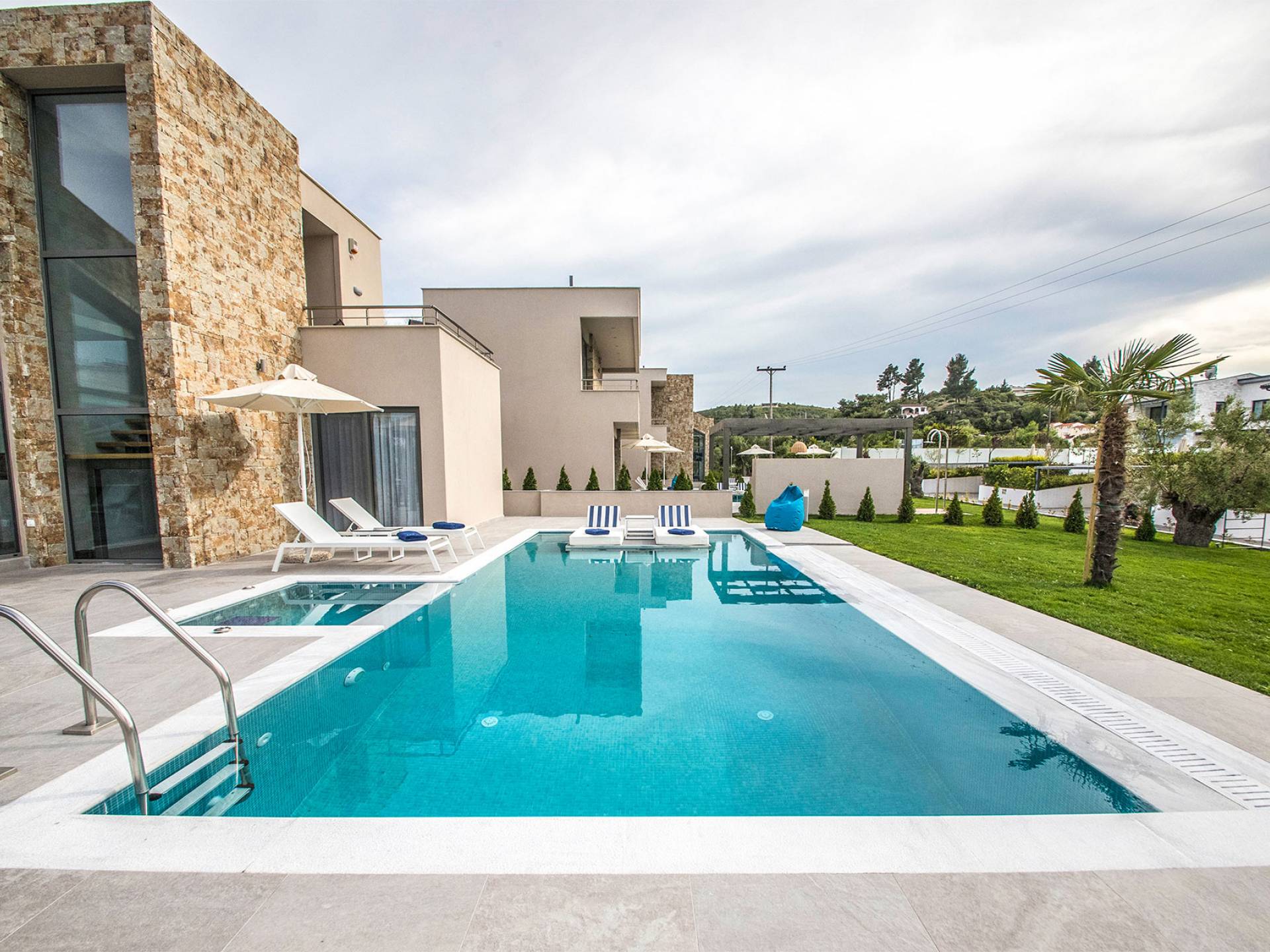 Ocean Private Villas è un nuovissimo resort di alto livello a Pefkochori, Halkidiki, per te che vuoi rilassarti e viziarti durante le vacanze. Con grande rispetto per l'ambiente, le ville sono state create in un modo che riduce l'impronta e rispetta il pianeta attraverso l'energia elettrica verde. Ogni villa utilizza l'energia solare e la genera in elettricità in modo che tu possa goderti al meglio la tua vacanza nel massimo rispetto dell'ambiente.