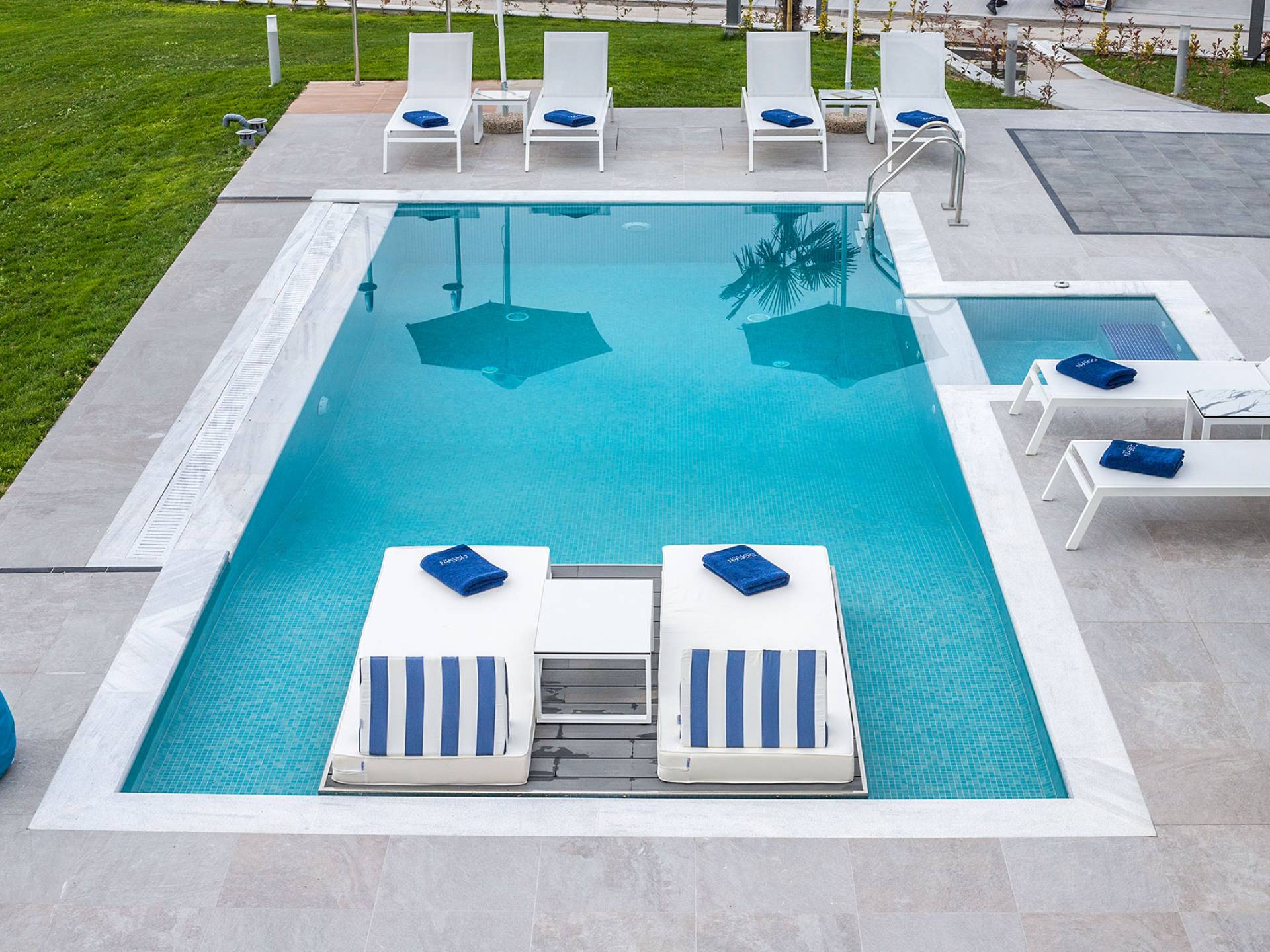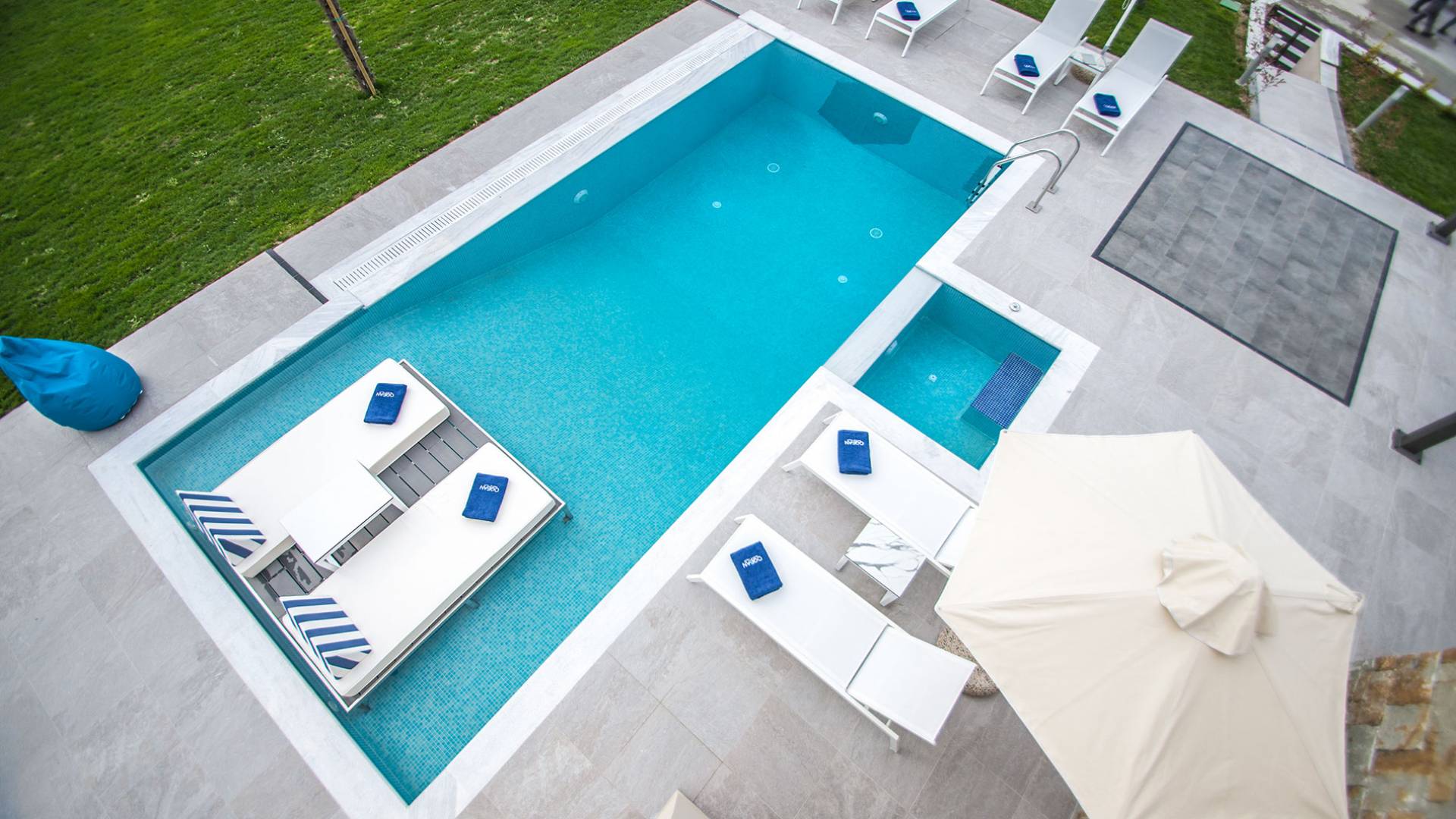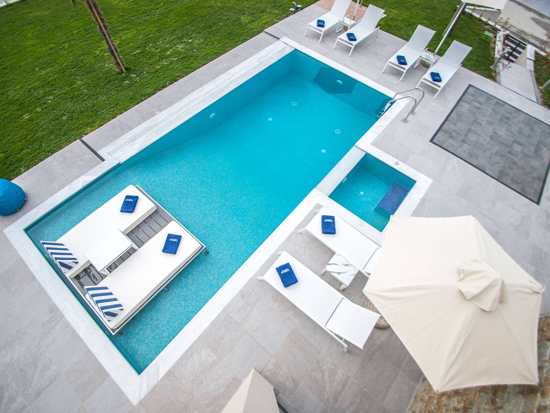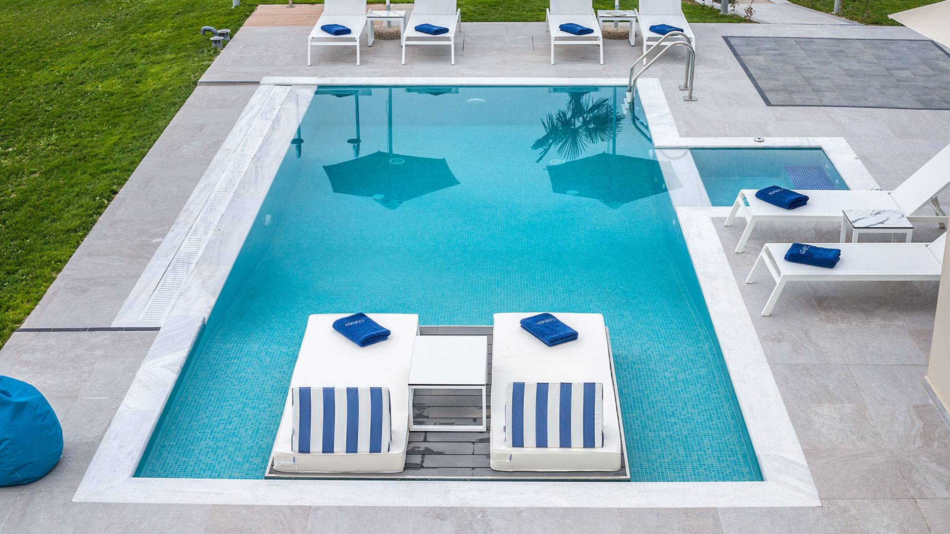 Colore blu, sole e lusso, niente può battere questa combinazione. Cos'altro c'è da chiedere per le tue vacanze? Concediti una piscina privata riscaldata nell'intimità della tua villa, sia interna che esterna. L'acqua è curativa e terapeutica e laverà…