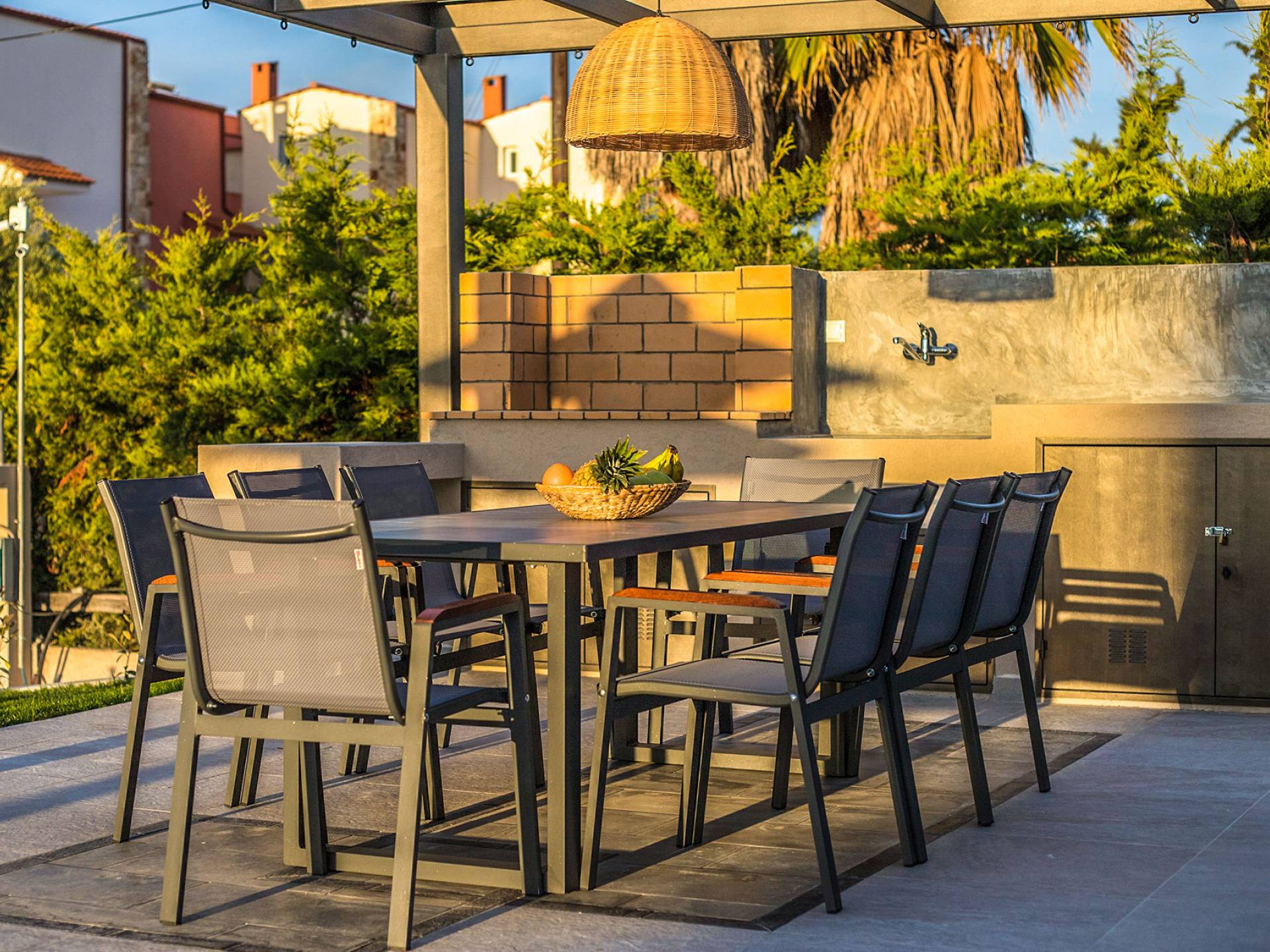 Villa Calypso è una villa con una zona pranzo all'aperto di 25 m² e una piscina molto grande, dove puoi rilassarti con il resto della tua famiglia e dei tuoi amici. Il balcone della villa ti dà l'opportunità di godere della vista del mare che è davvero vicino al nostro resort, a soli 200 metri di distanza. Il design degli interni di questa villa è davvero unico, in quanto al secondo piano si trova un loft molto accogliente ed elegante con il suo letto matrimoniale king-size e una SMART TV 4K.
