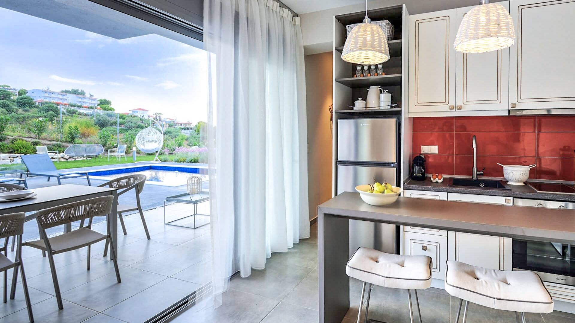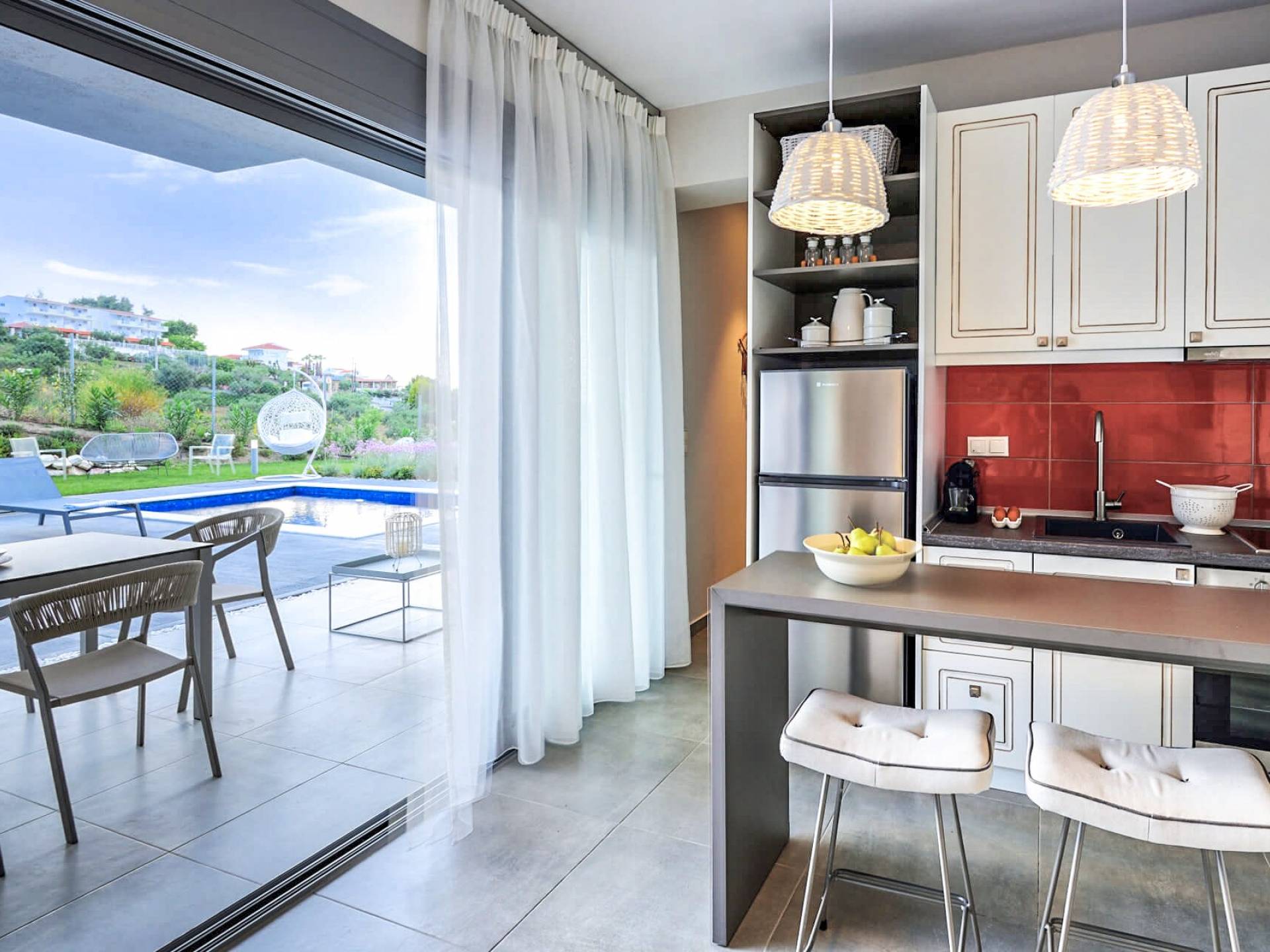 Goditi un soggiorno da sogno nella penisola di Kassandra. Marigold Exclusive 2 Bedroom Private-Pool Villa offre ai suoi visitatori il lusso, i vantaggi e la privacy che cercano in un ambiente idilliaco. Marigold Exclusive 2 Bedroom Private Pool Villa può ospitare comodamente quattro persone. Con un design raffinato e moderno, la villa offre un piano terra open space composto da una zona soggiorno, una cucina completamente attrezzata, una camera matrimoniale e un bagno con doccia. In ogni stanza c'è l'aria condizionata o un ventilatore a soffitto.