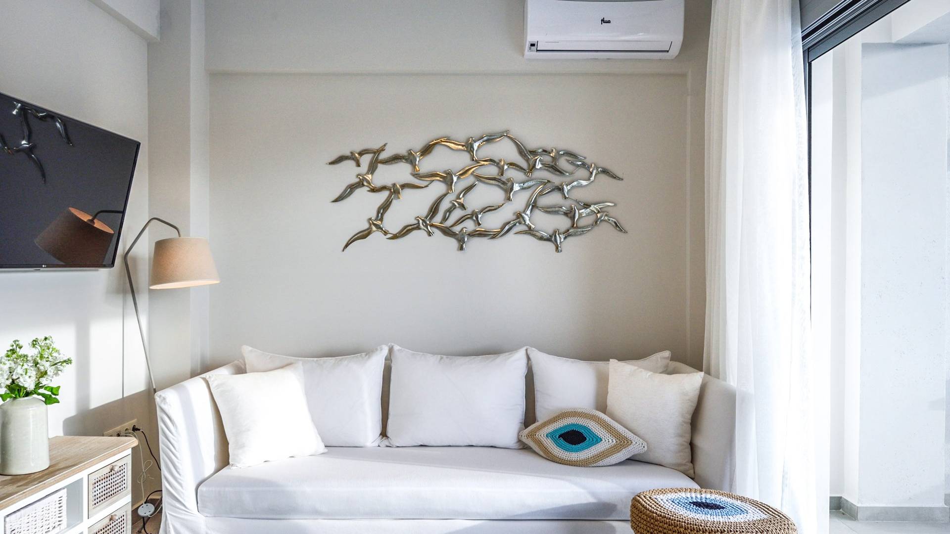 Una bellissima junior suite si trova al primo piano ed è composta da una camera da letto con letto matrimoniale, perfettamente progettata per una famiglia con un bambino piccolo. Il primo piano è composto da un bagno con doccia e un grande e bellissimo terrazzo che offre una magnifica vista sul mare.