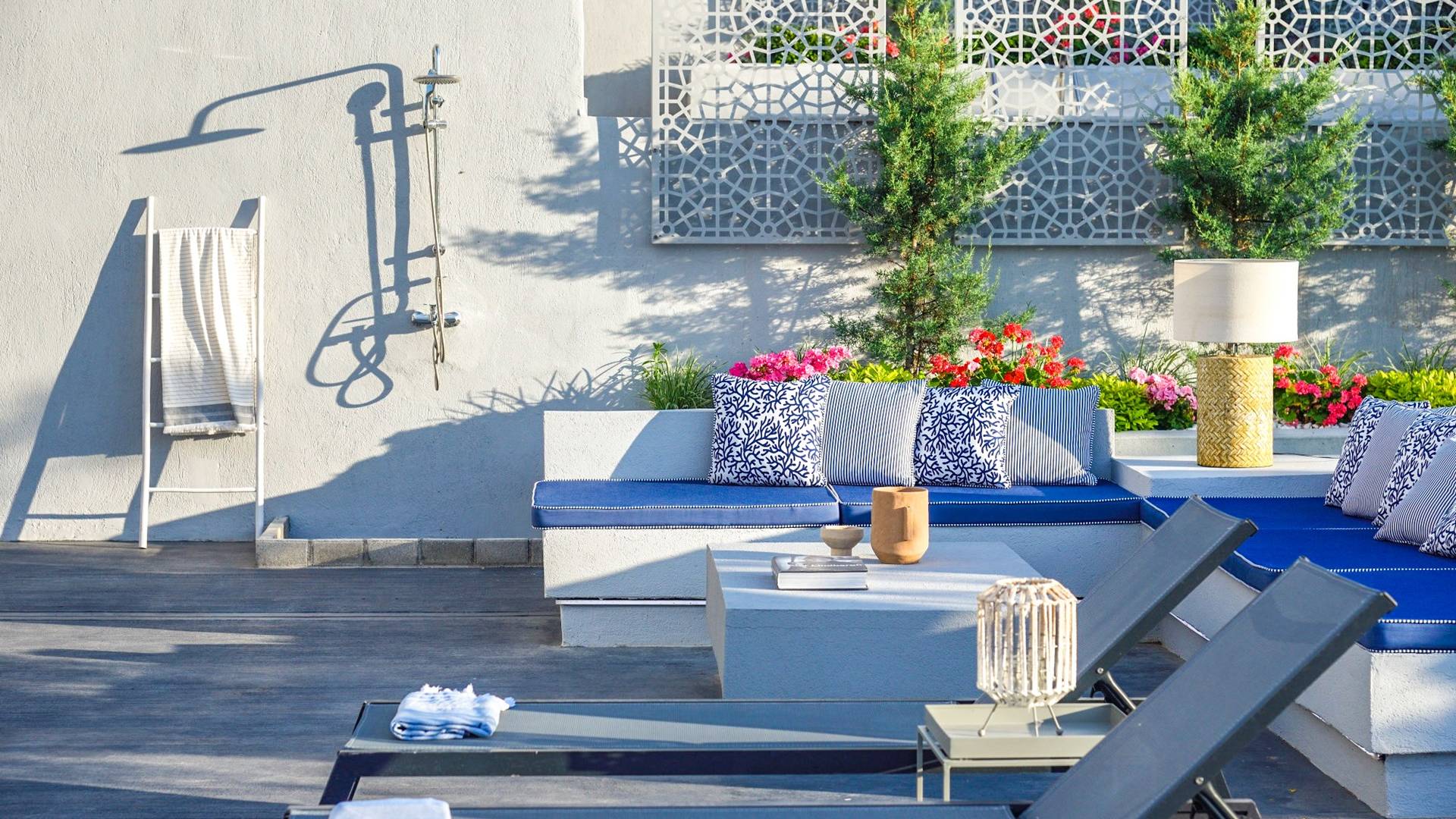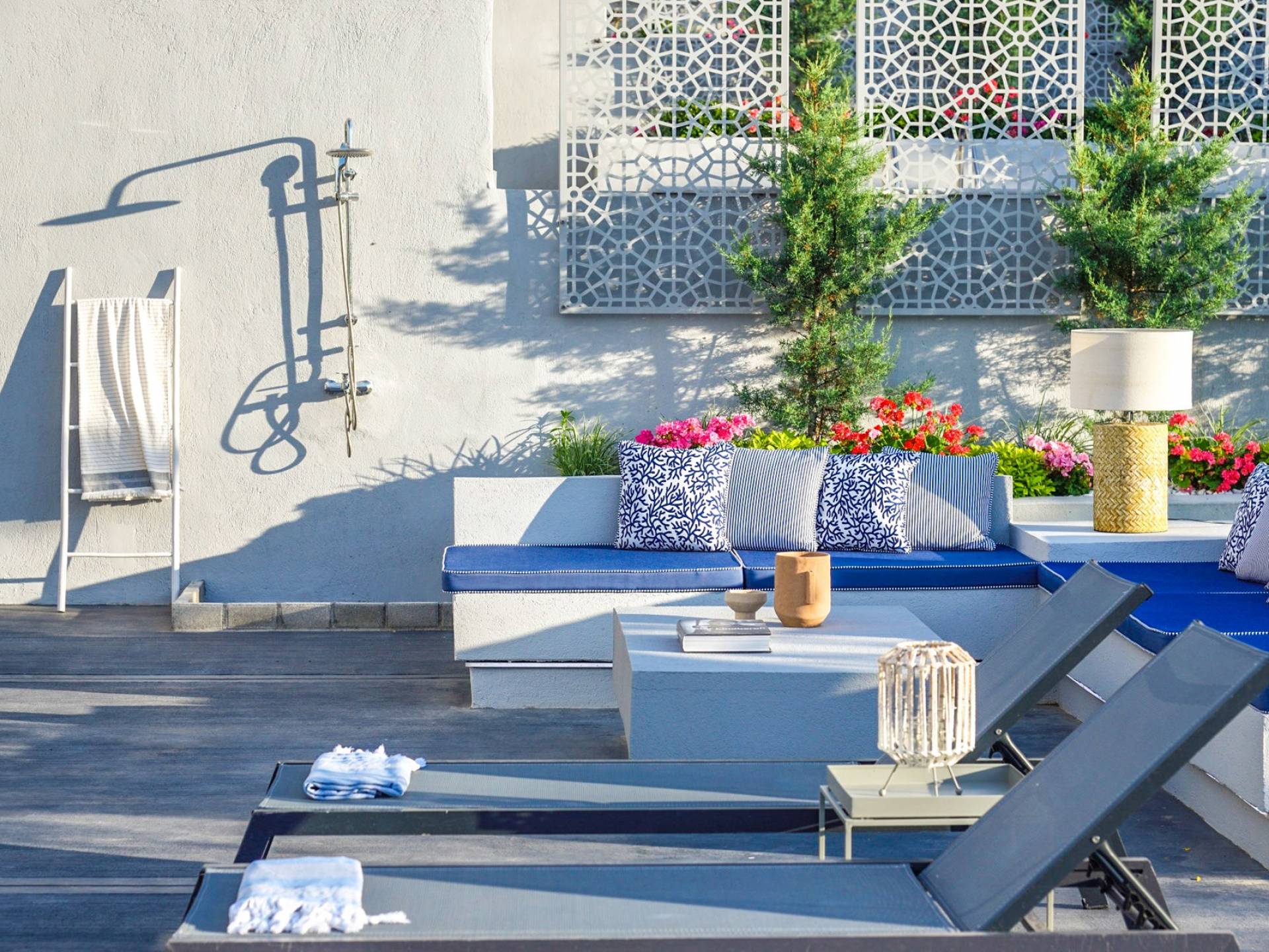 Lì incontrerai anche l'area salotto all'aperto con comodi divani e cuscini incorporati. Preparati un frizzante cocktail mediterraneo usando erbe fresche come menta piperita, timo o rosmarino direttamente dal tuo giardino privato e vivi l'esperienza bioclimatica Soleado.