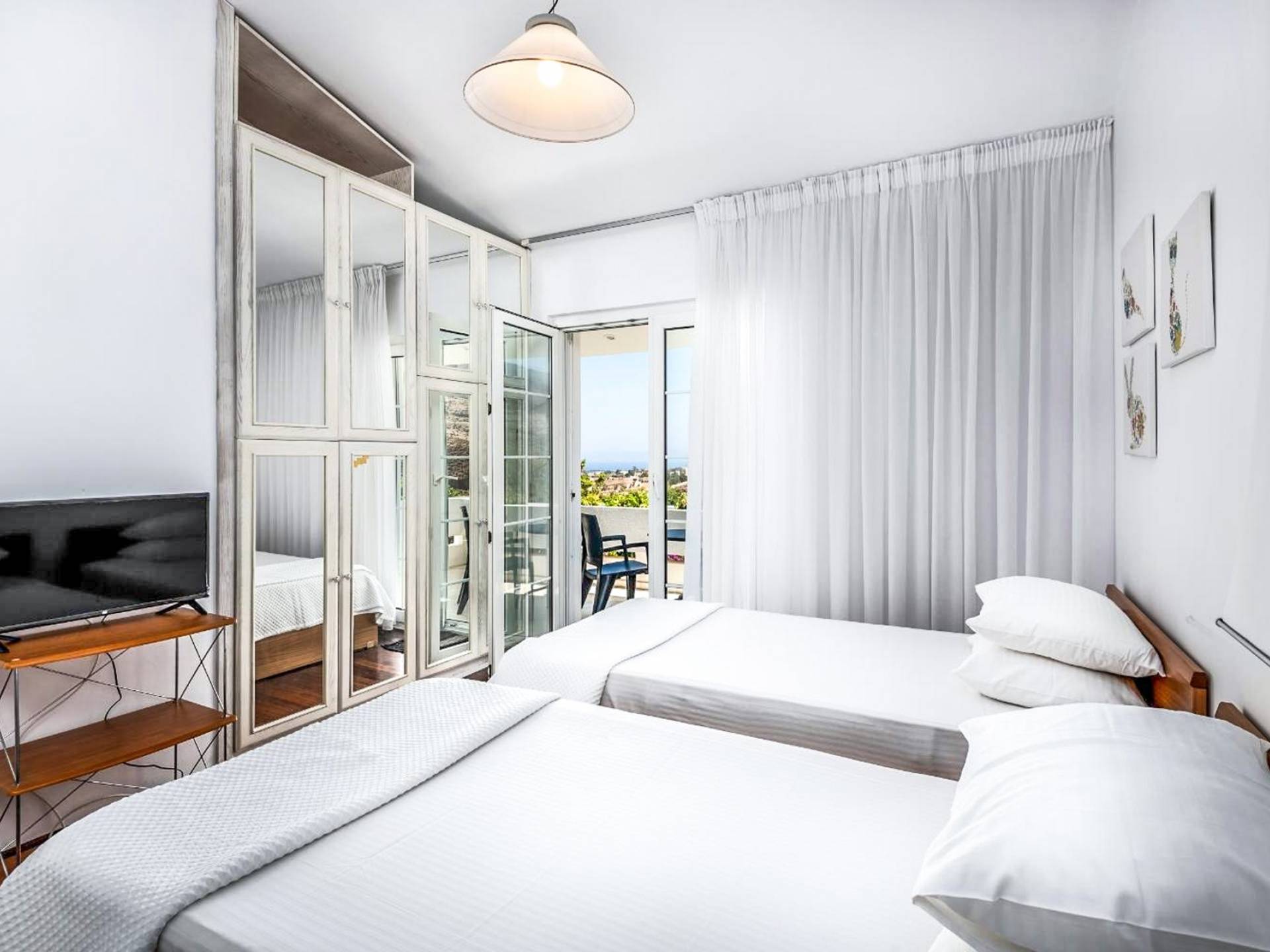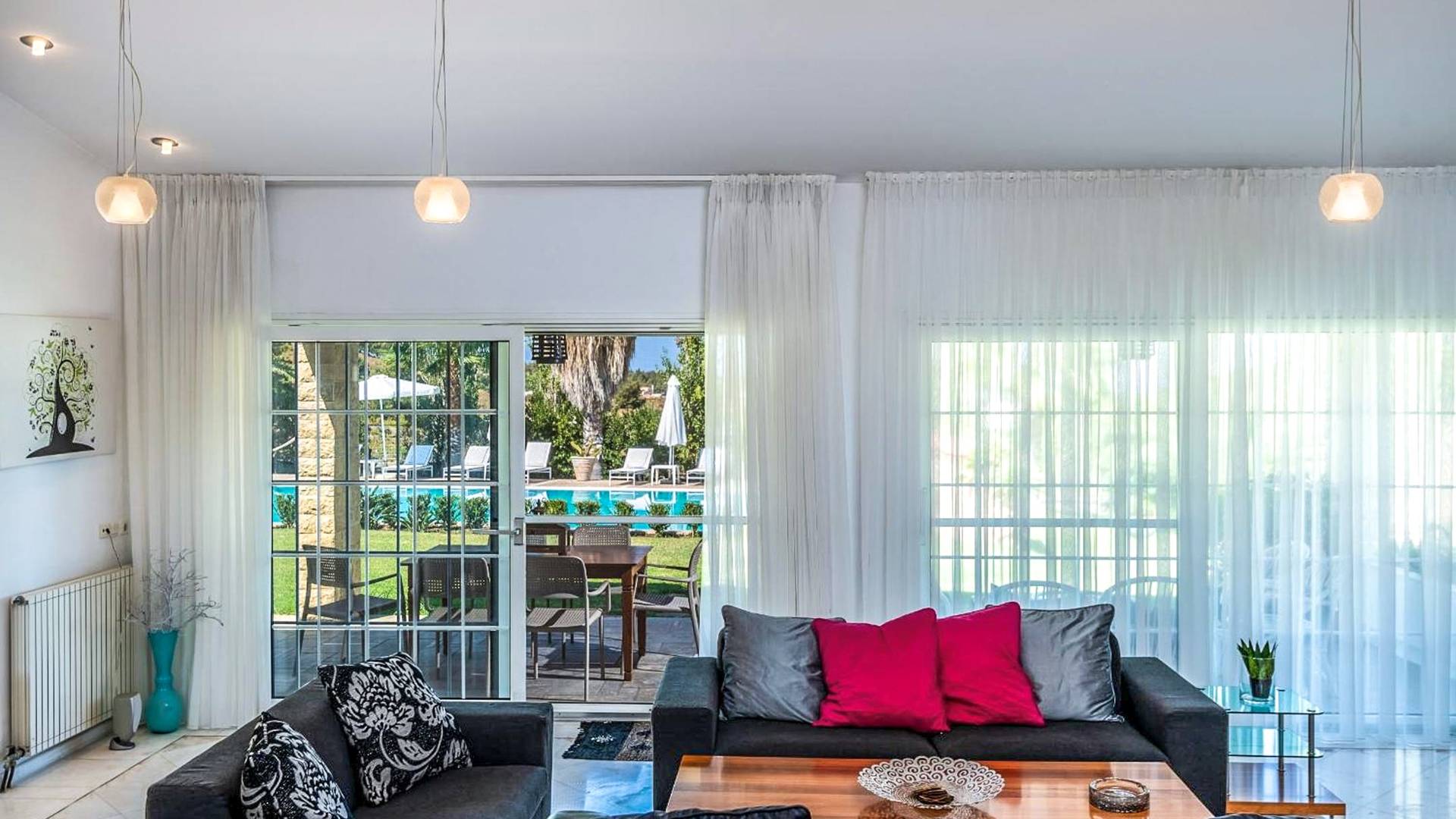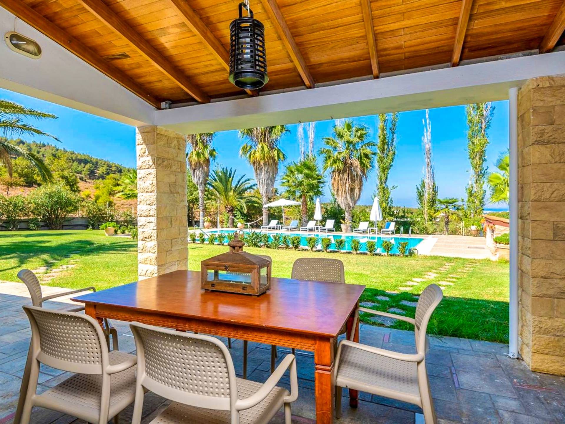 Villa Valasia è una residenza indipendente di 280m2 che è stata costruita con un'architettura moderna, con molte aperture che danno molta luce ad ogni angolo della casa e una vista mozzafiato sul Mar Egeo e sulla verde foresta sul lato sud con 4 ettari di giardino recintato. La costruzione è stata realizzata su 2 livelli a causa della pendenza del terreno. Al piano superiore ci sono 3 camere da letto, la camera da letto principale (con letto king size) con il proprio bagno privato e comprende una vasca idromassaggio (completamente funzionante), le 2 camere da letto (una con letto matrimoniale e divano letto e l'altra con 2 letti singoli) con il proprio bagno.