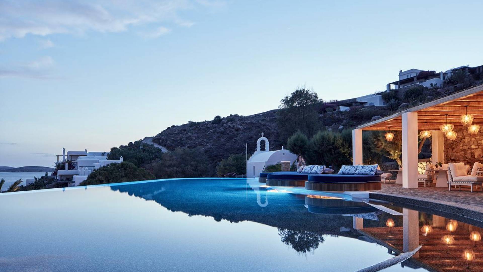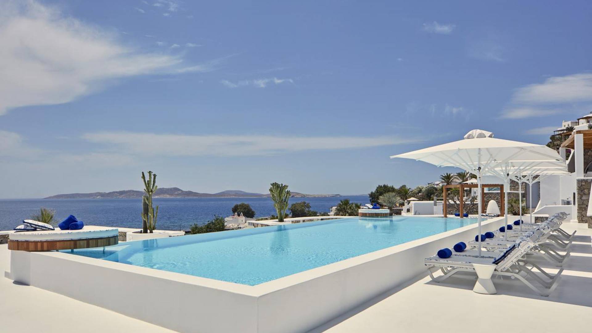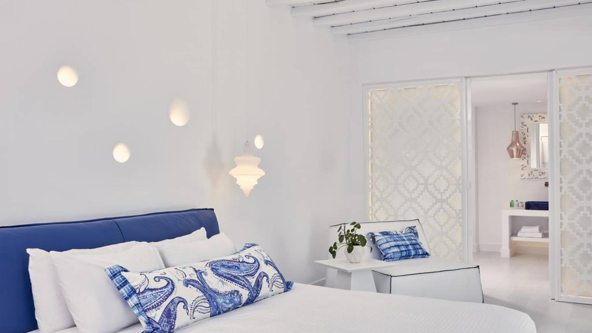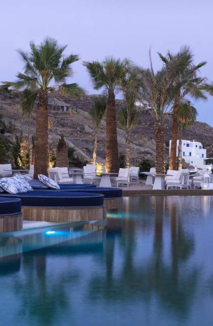 Annusato in uno splendido scenario, sopra la spiaggia baciata dal sole di Agios Ioannis a Mykonos, Katikies Mykonos, membro di Leading Hotels of the World, cattura l'essenza del mare chic vivendo a un soffio dal mare scintillante.