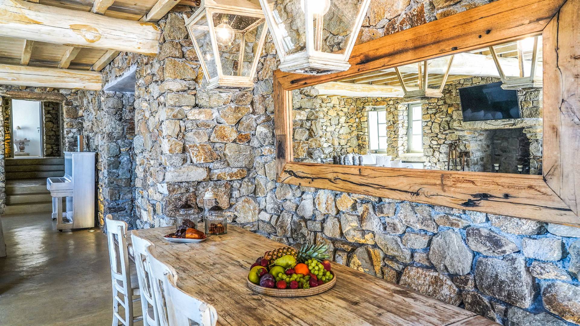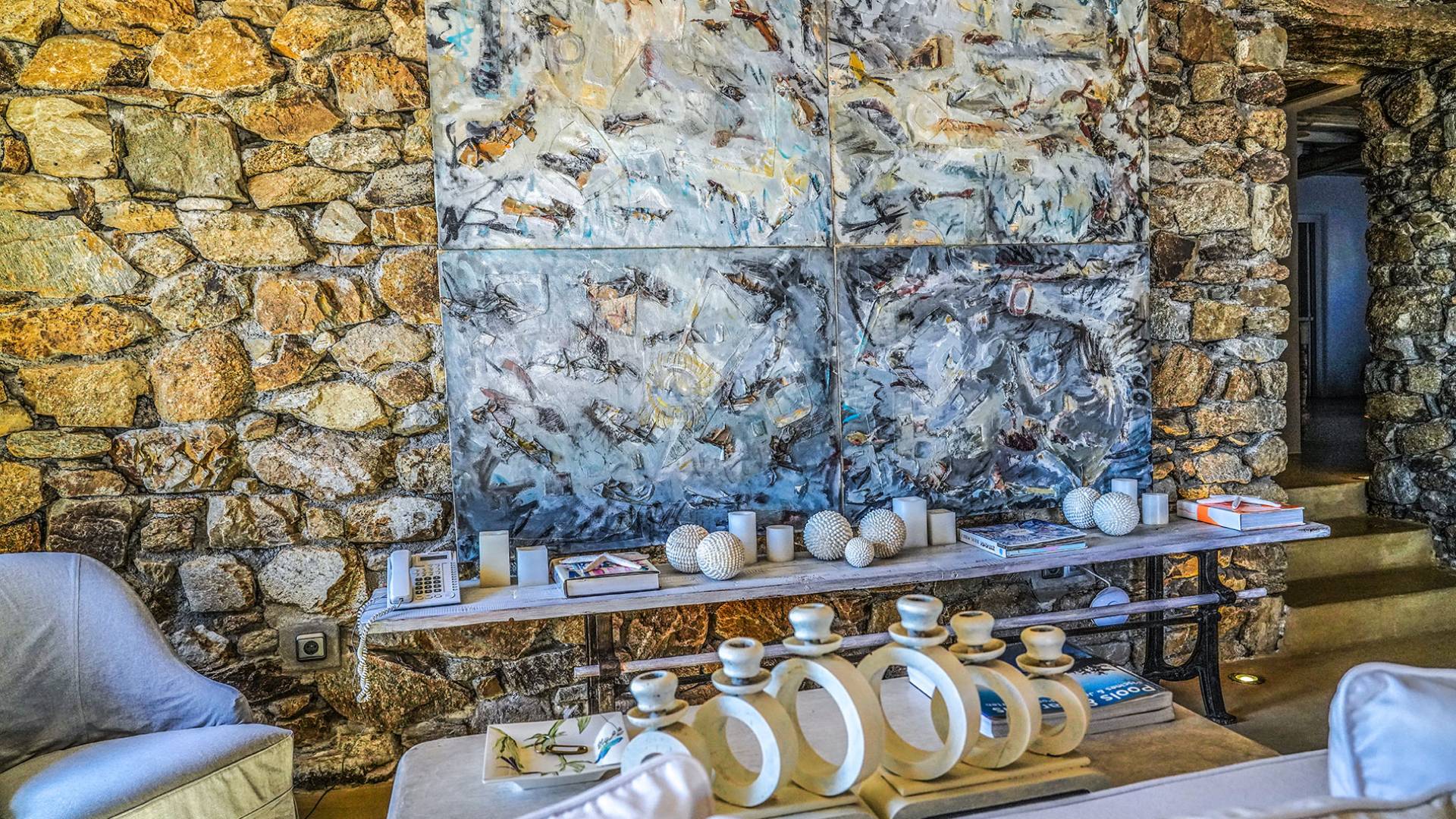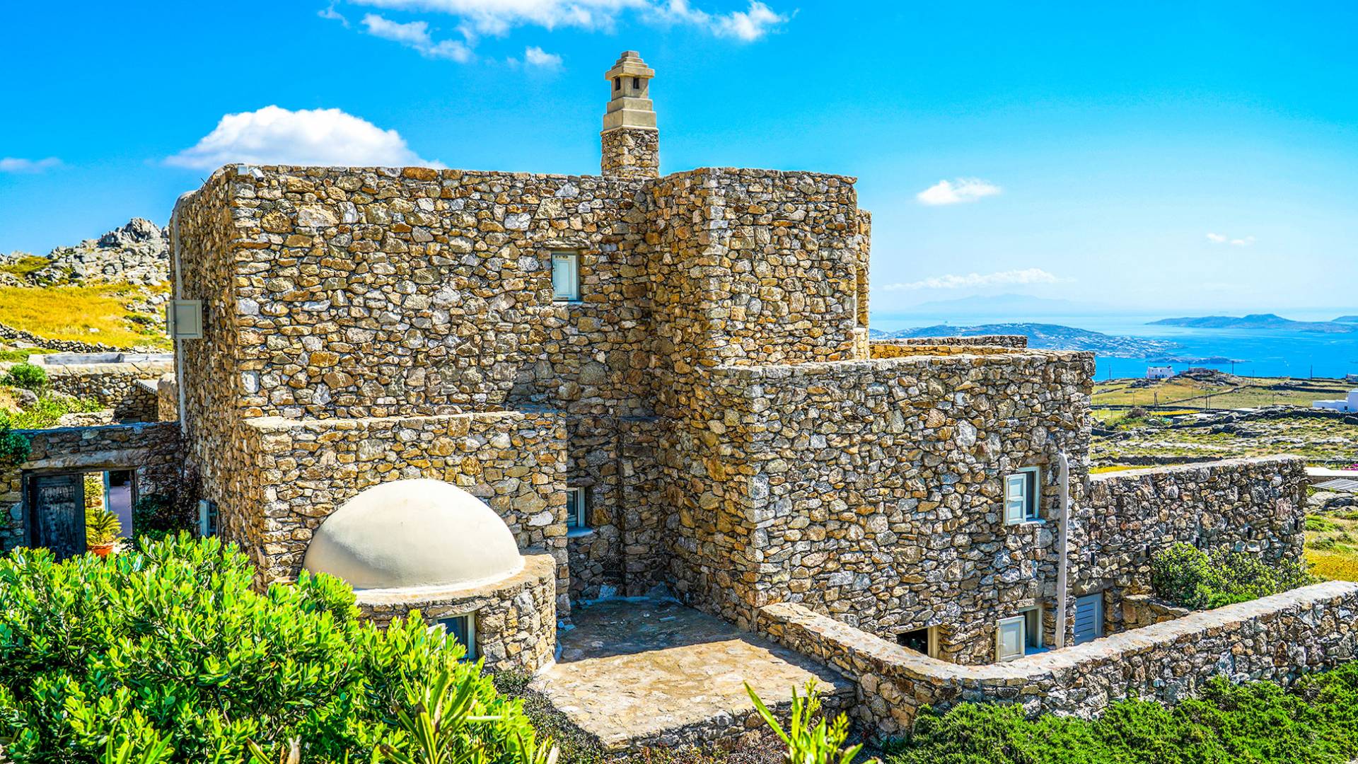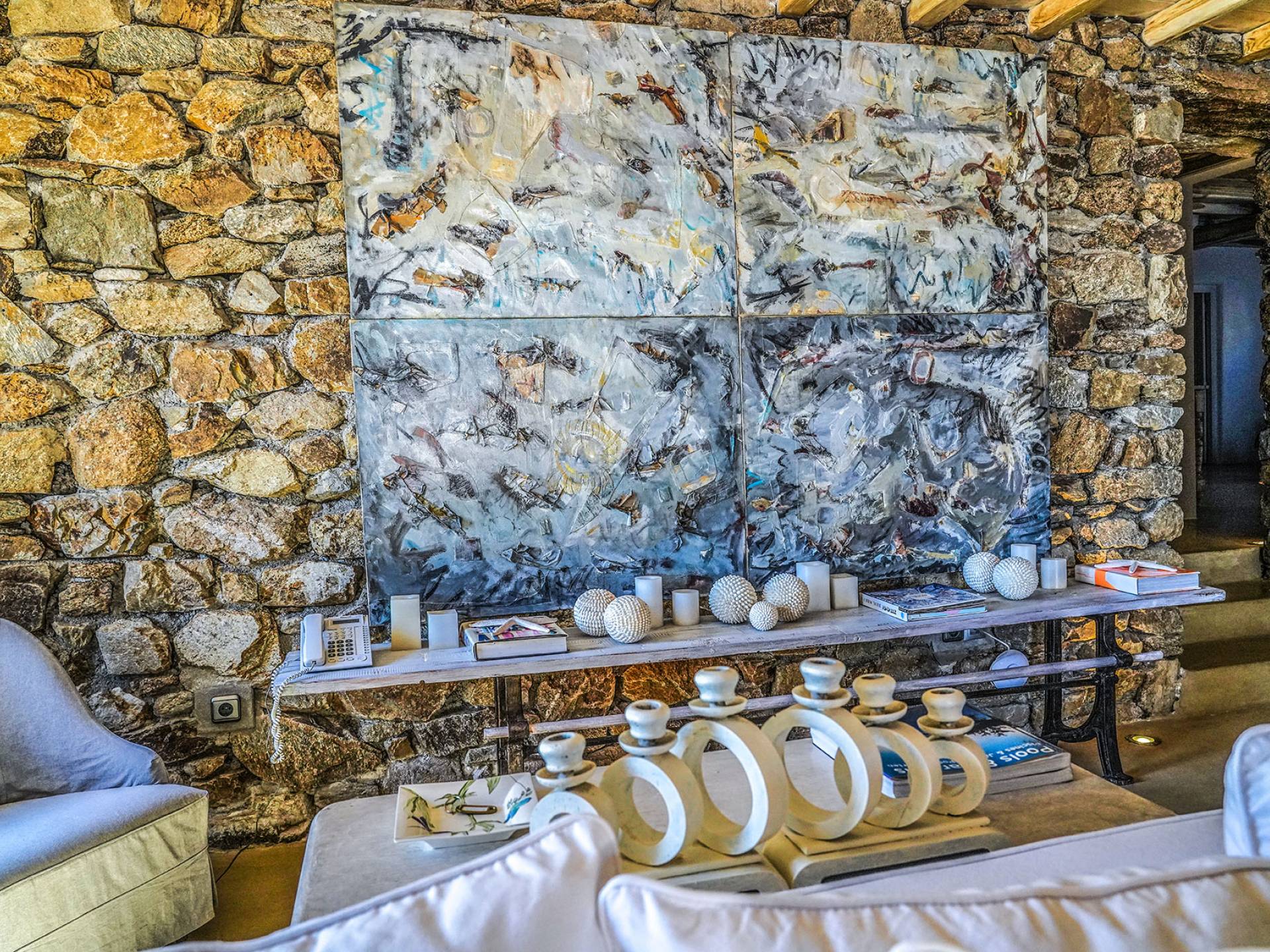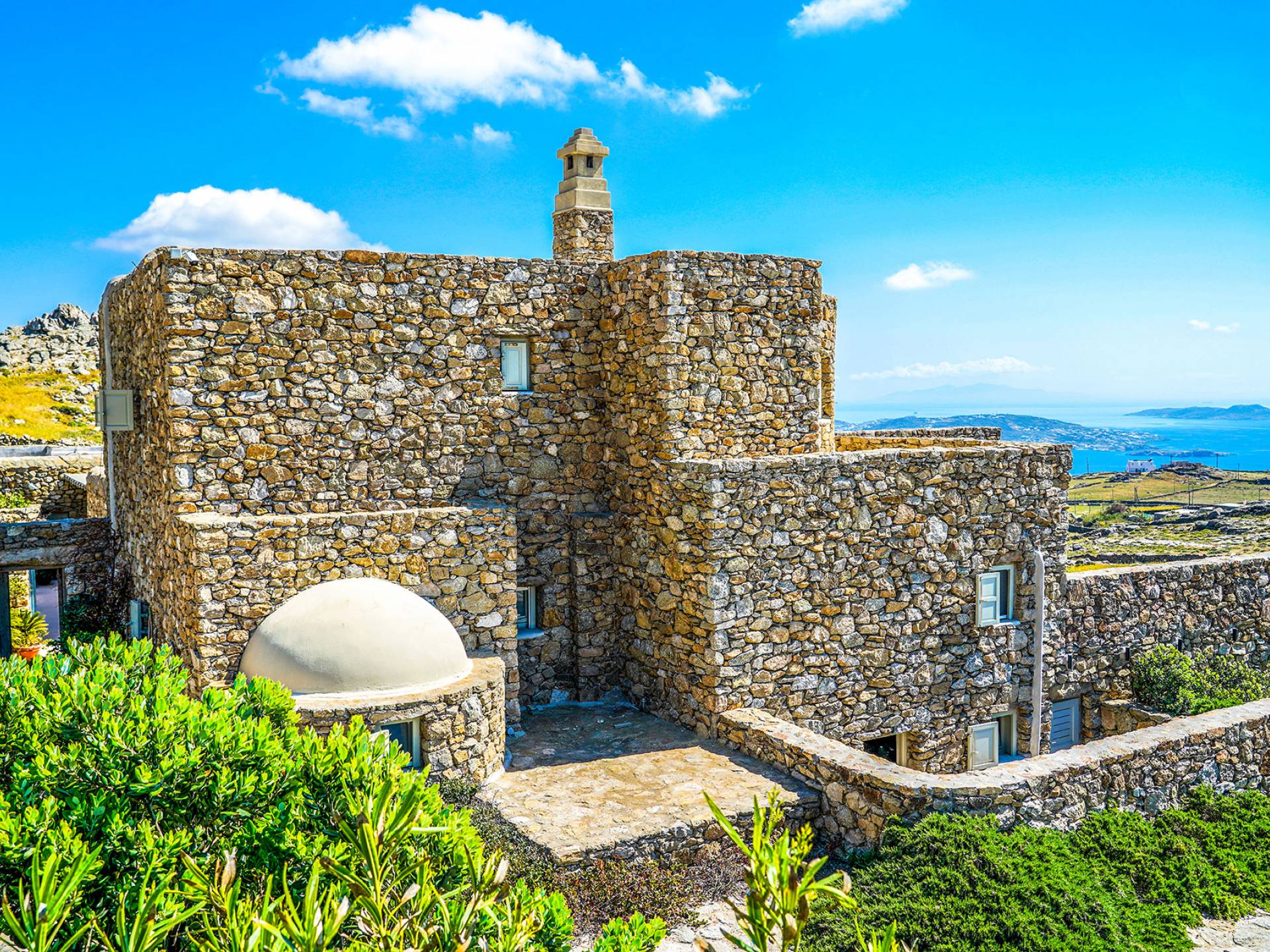Villa Sandstone Mykonos è una bellissima villa in pietra con 7 camere da letto nella zona di Kastro, con una splendida vista sul mare e sul tramonto, l'opzione perfetta per le tue vacanze a Mykonos! La struttura si trova vicino alla spiaggia di Agios Stefanos, al nuovo porto di Mykonos, alla città di Mykonos (Chora) e alla baia di Choulakia, con ciottoli di interesse naturale dalla forma unica.