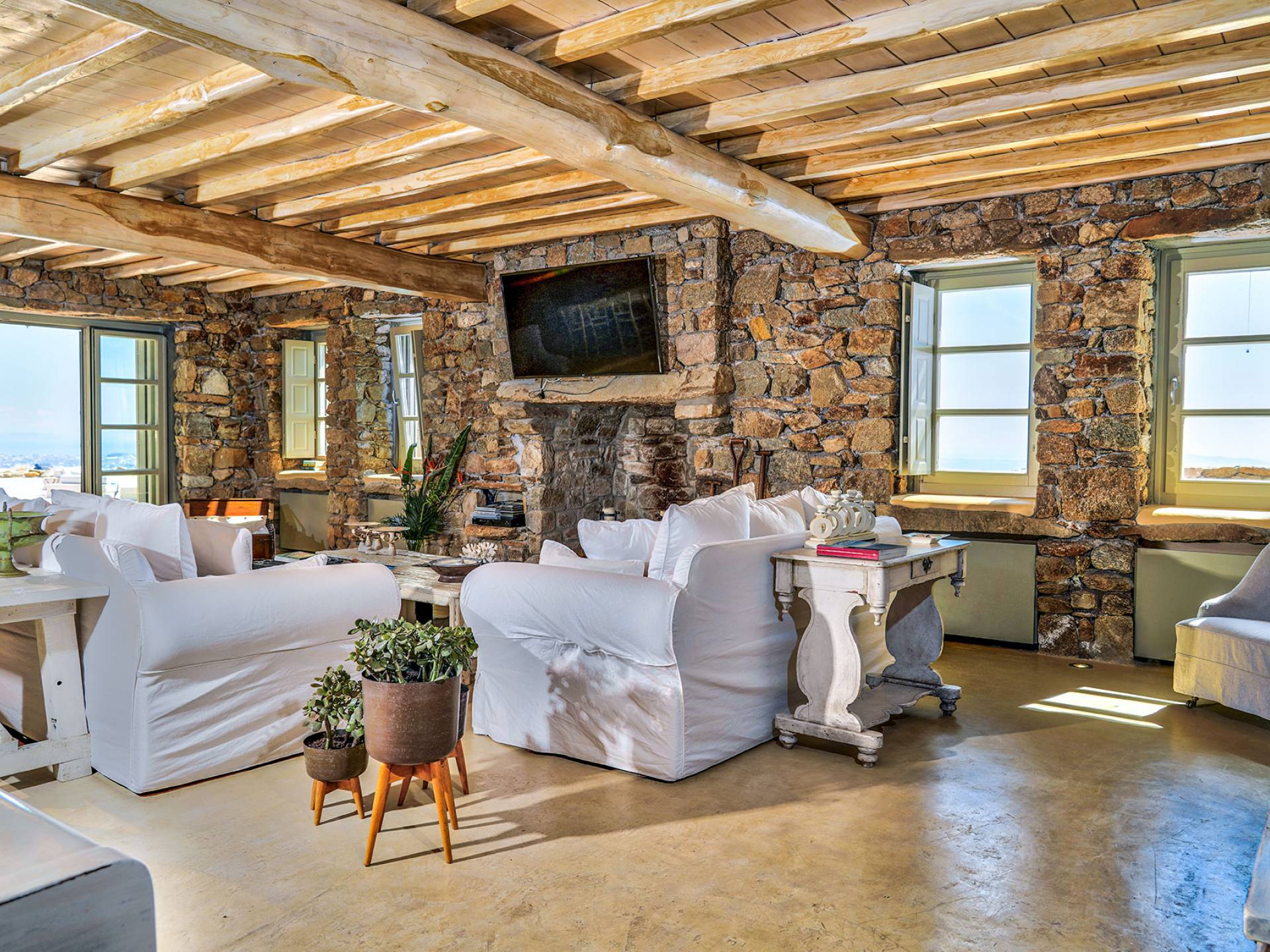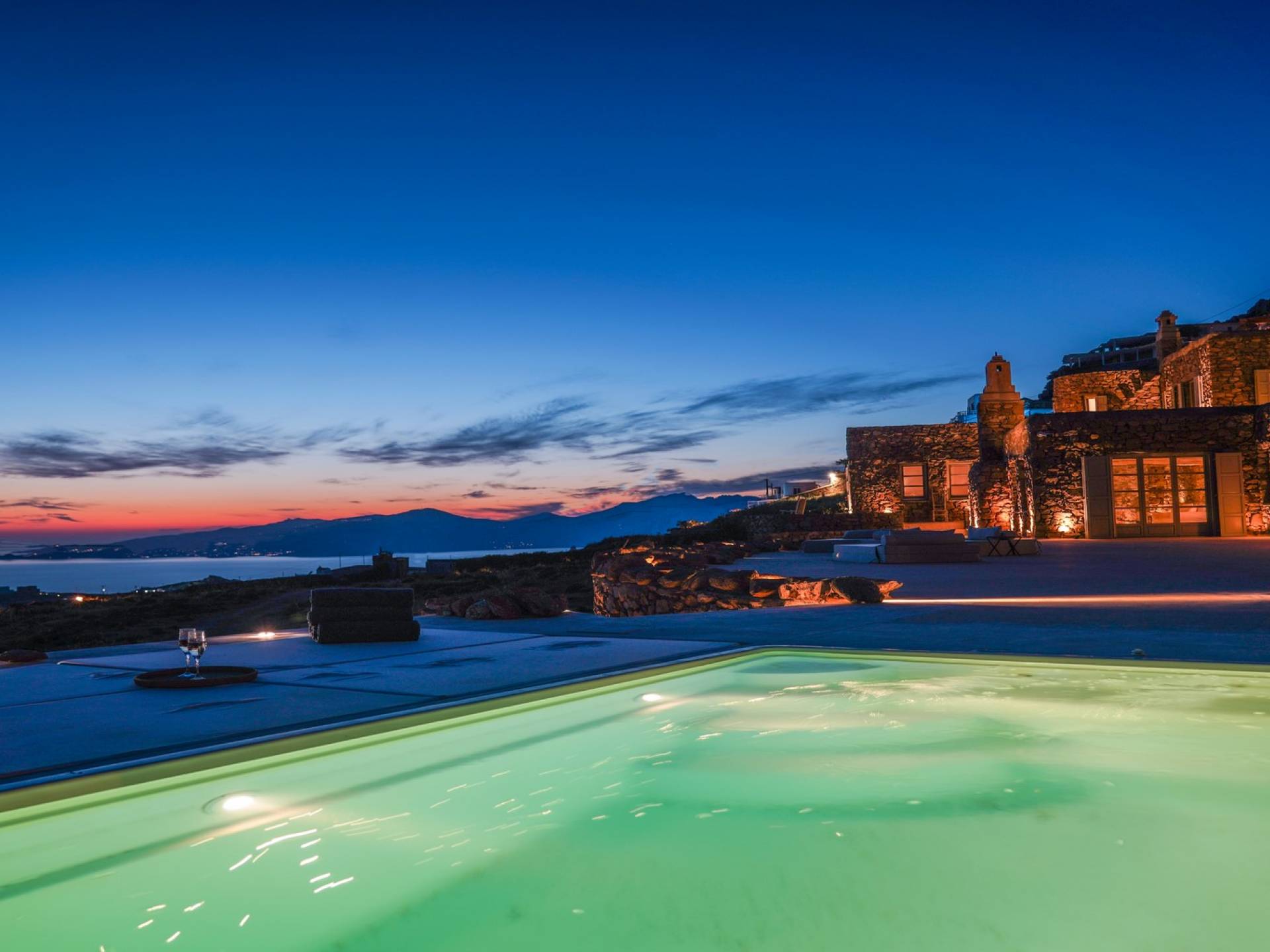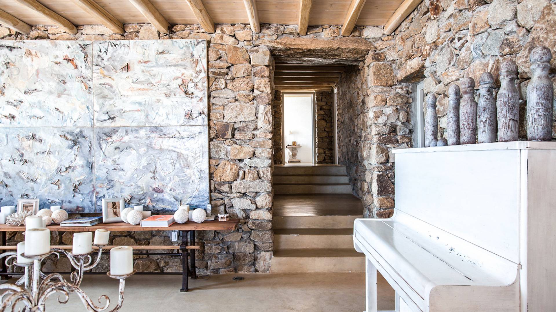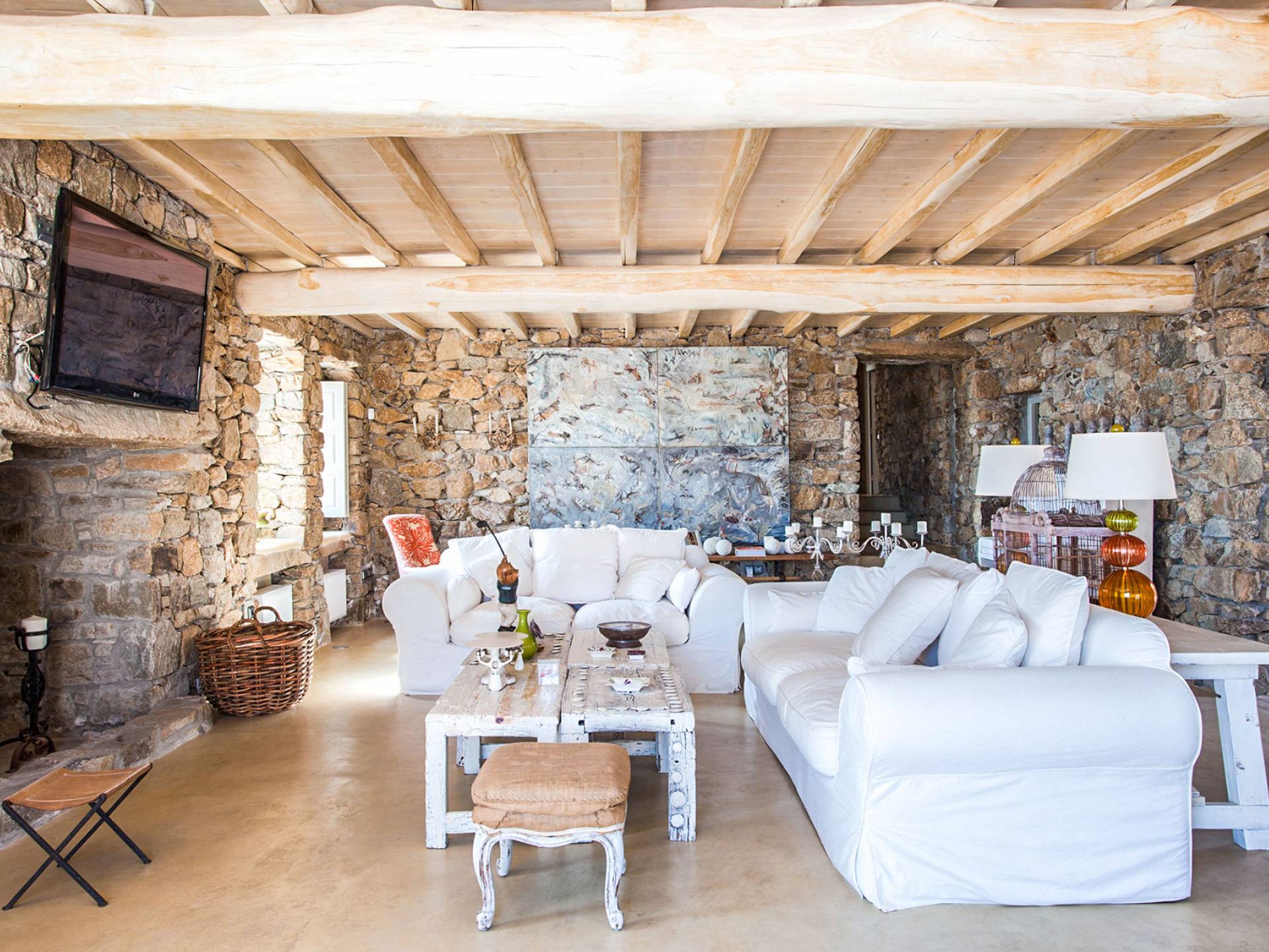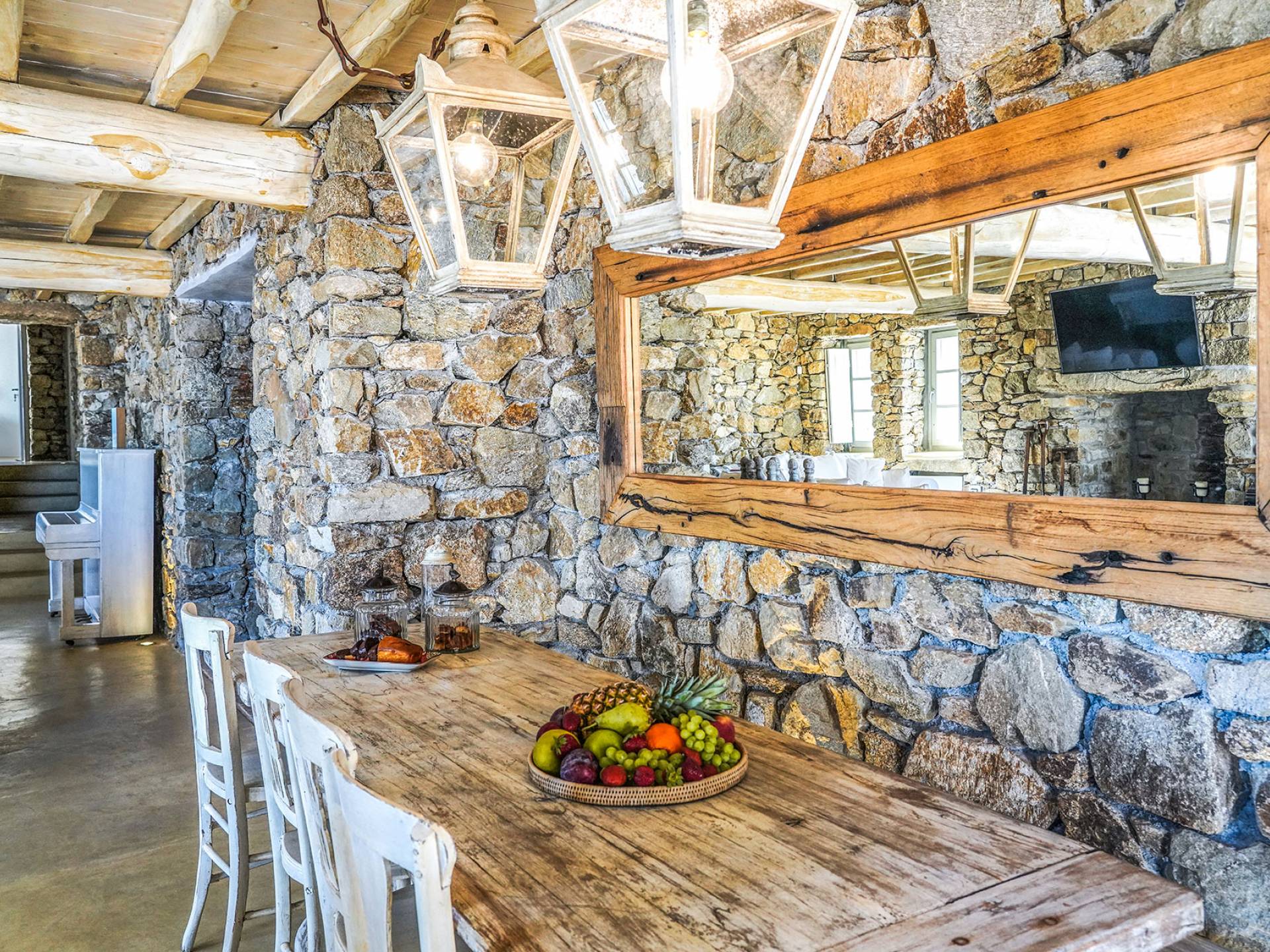 Villa Sandstone Mykonos è una bellissima villa in pietra con 7 camere da letto nella zona di Kastro, con una splendida vista sul mare e sul tramonto, l'opzione perfetta per le tue vacanze a Mykonos! La struttura si trova vicino alla spiaggia di Agios Stefanos, al nuovo porto di Mykonos, alla città di Mykonos (Chora) e alla baia di Choulakia, con ciottoli di interesse naturale dalla forma unica.