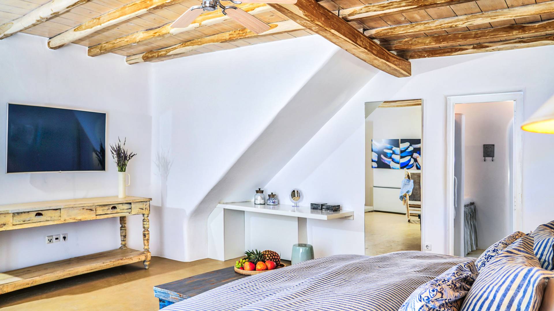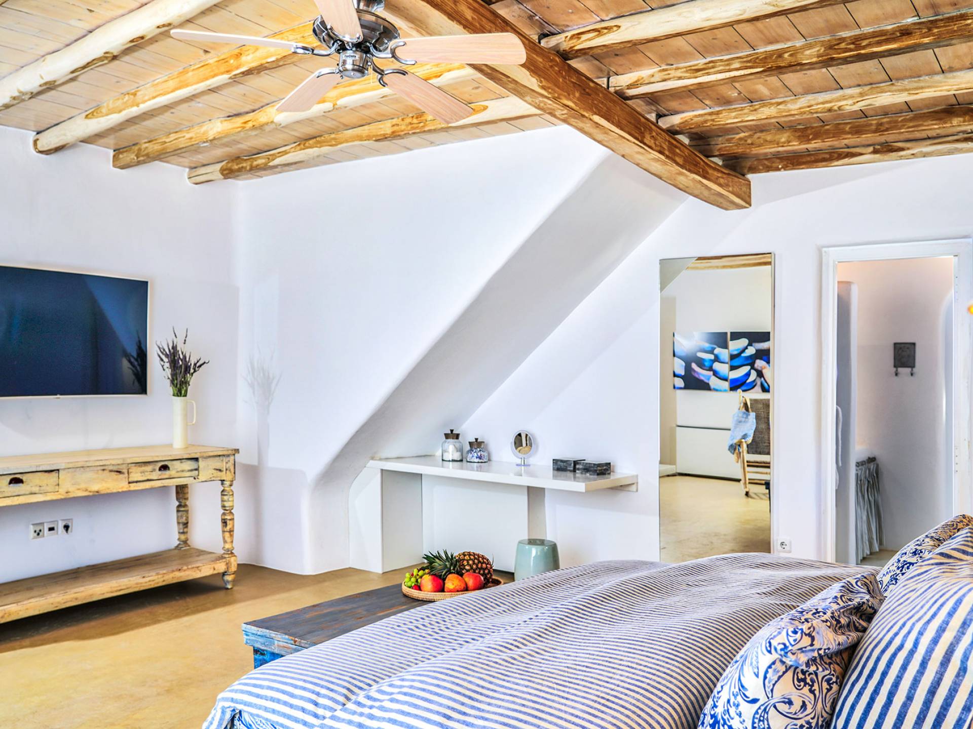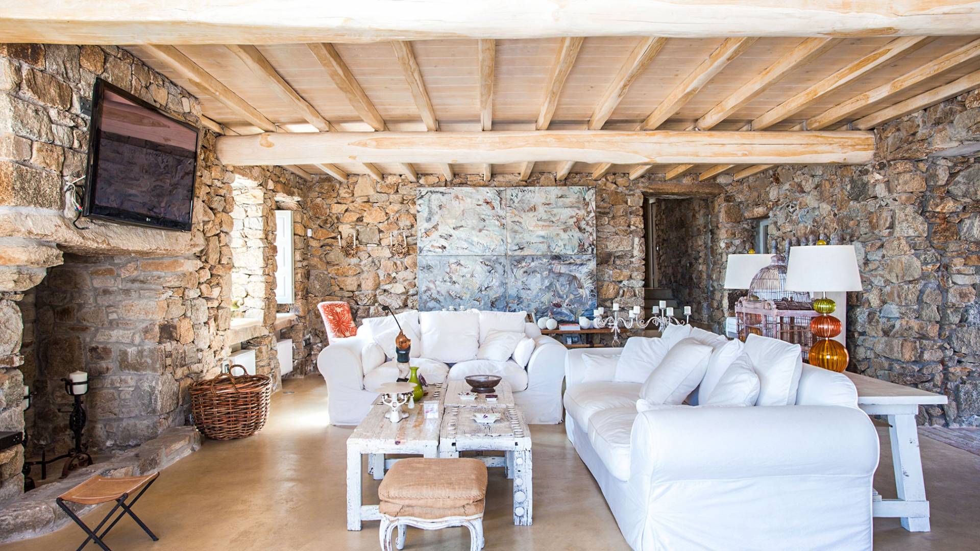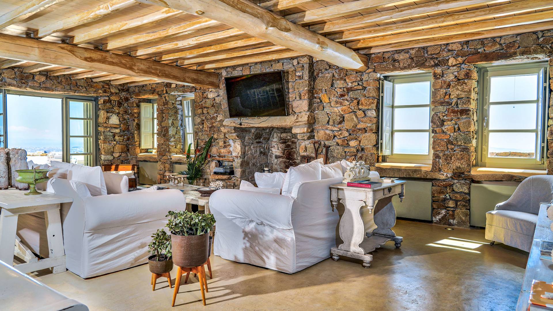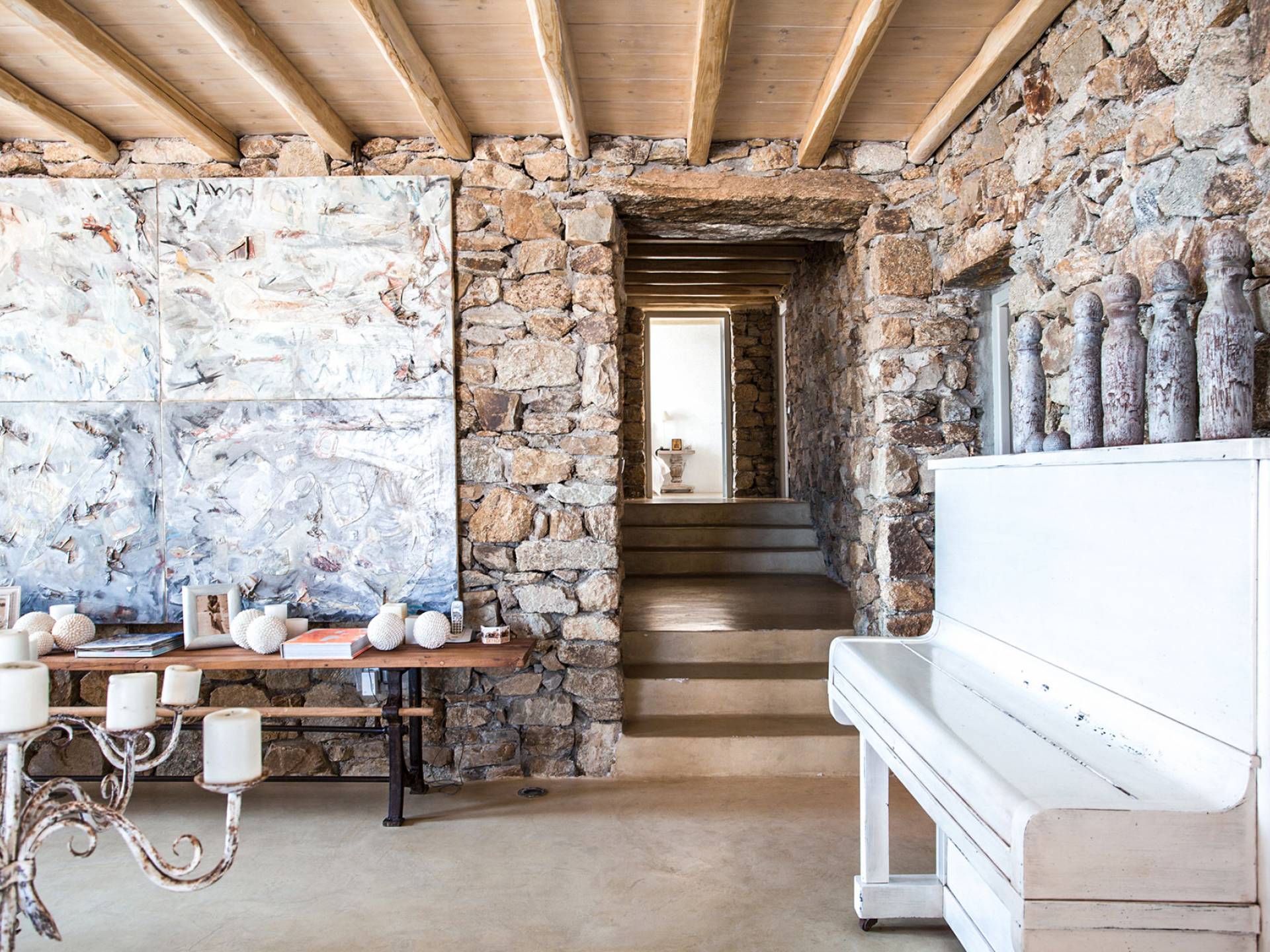 Villa Sandstone Mykonos è una bellissima villa in pietra con 7 camere da letto nella zona di Kastro, con una splendida vista sul mare e sul tramonto, l'opzione perfetta per le tue vacanze a Mykonos! La struttura si trova vicino alla spiaggia di Agios Stefanos, al nuovo porto di Mykonos, alla città di Mykonos (Chora) e alla baia di Choulakia, con ciottoli di interesse naturale dalla forma unica.
