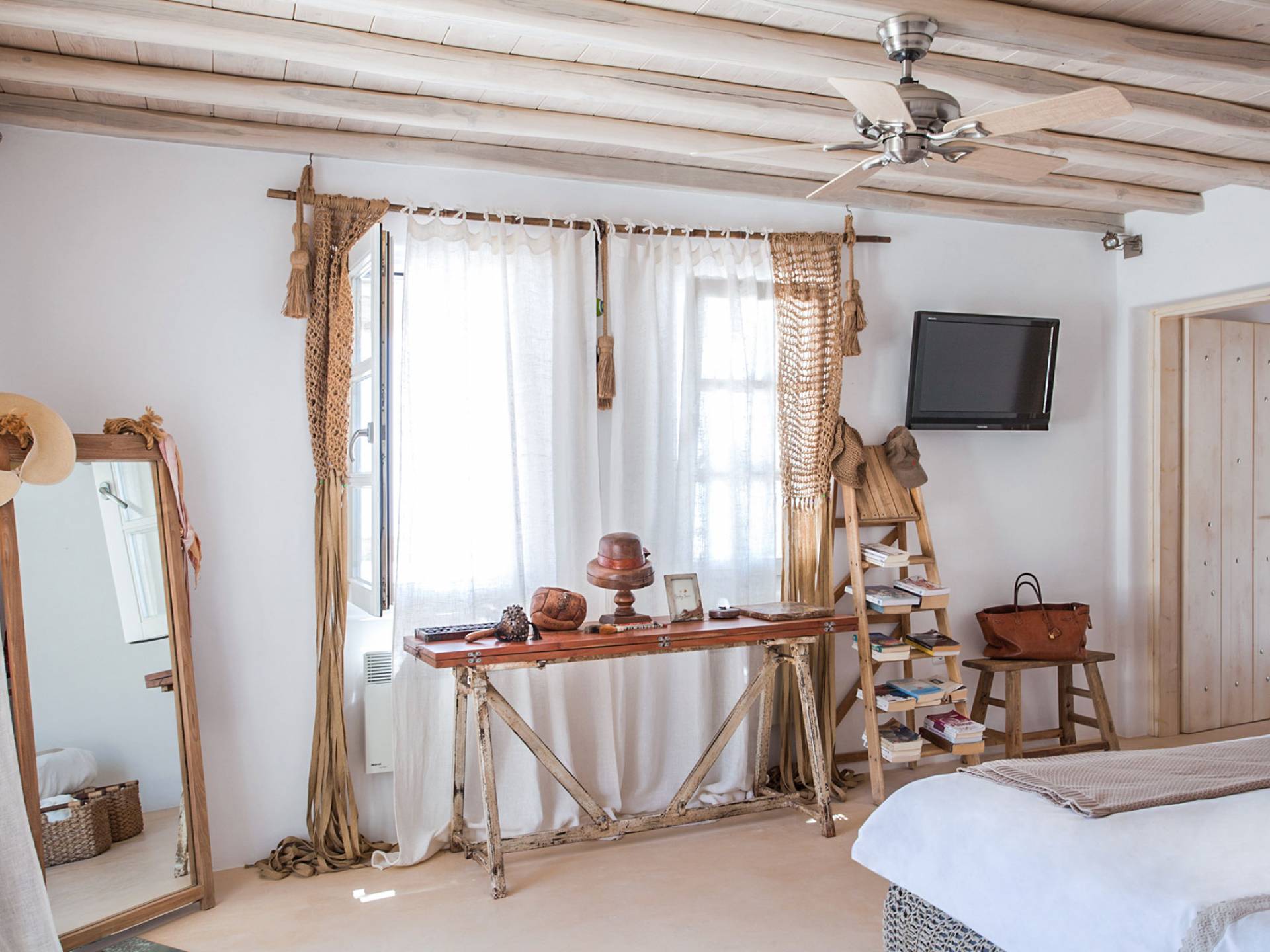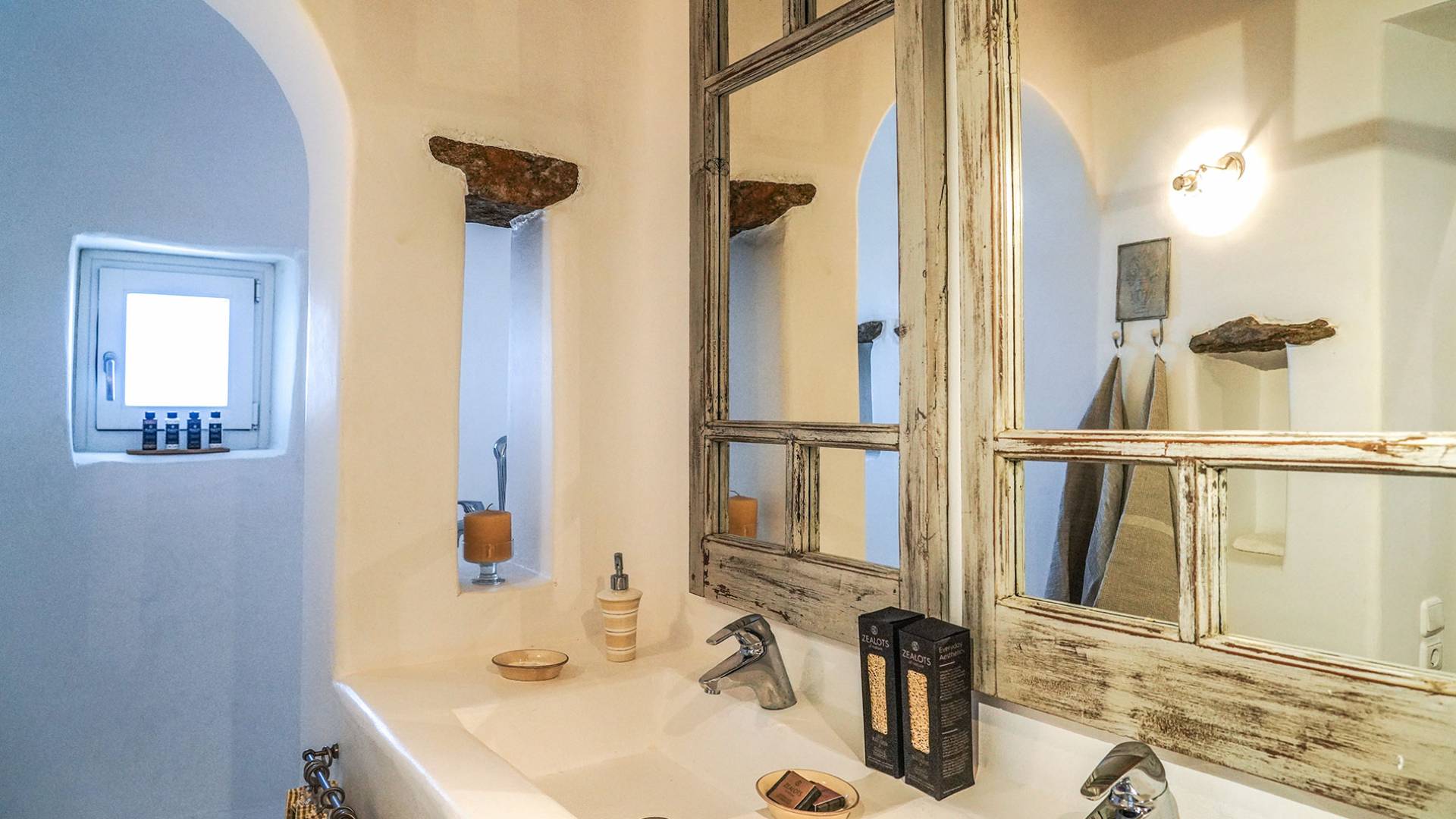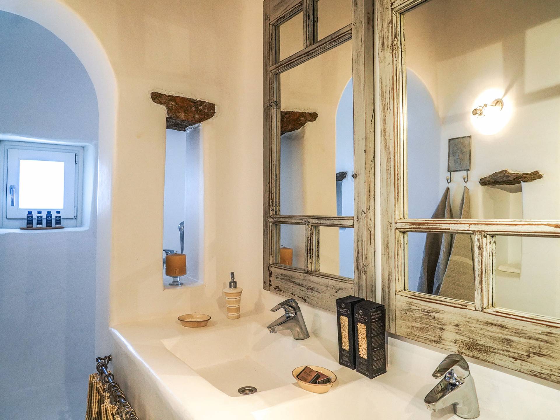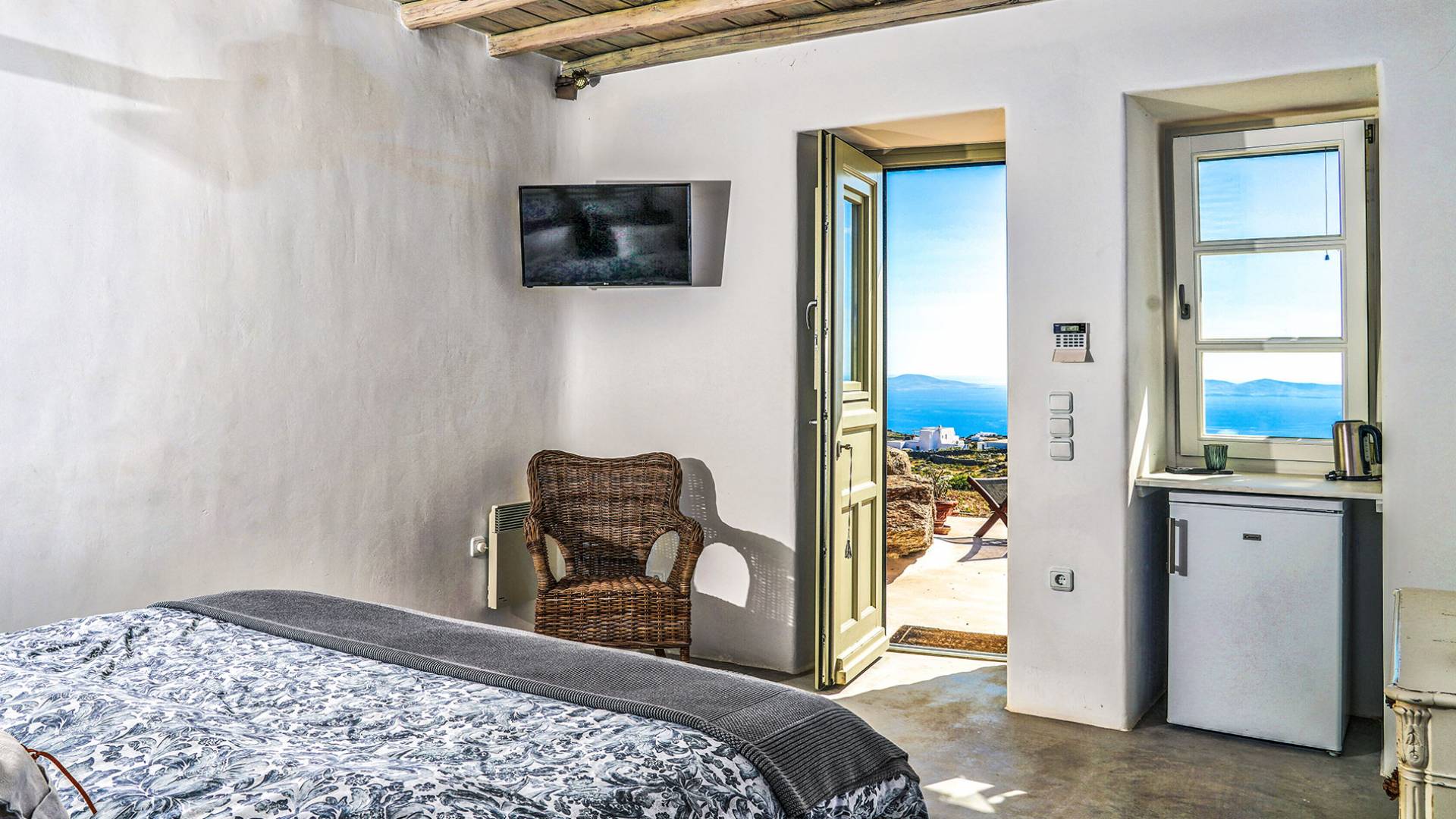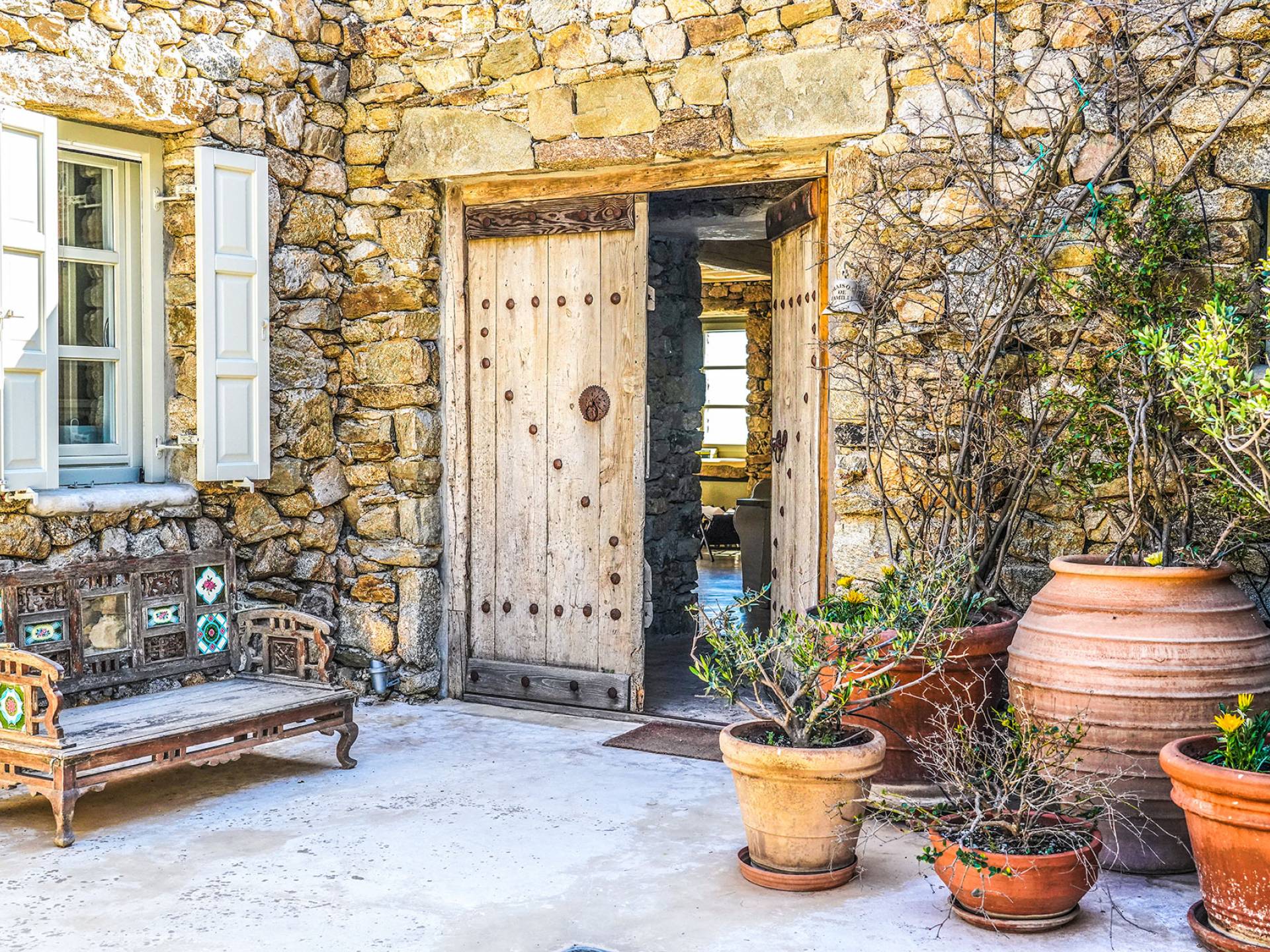 Villa Sandstone Mykonos si trova sul lato nord-ovest di Mykonos ed è composta da una casa principale, 3 pensioni indipendenti, diversi salottini all'aperto, zona pranzo e una vasca idromassaggio all'aperto. Gli ospiti godono di momenti di relax negli spazi esterni con comodi divani, cuscini a terra, tavolo da pranzo ecc.