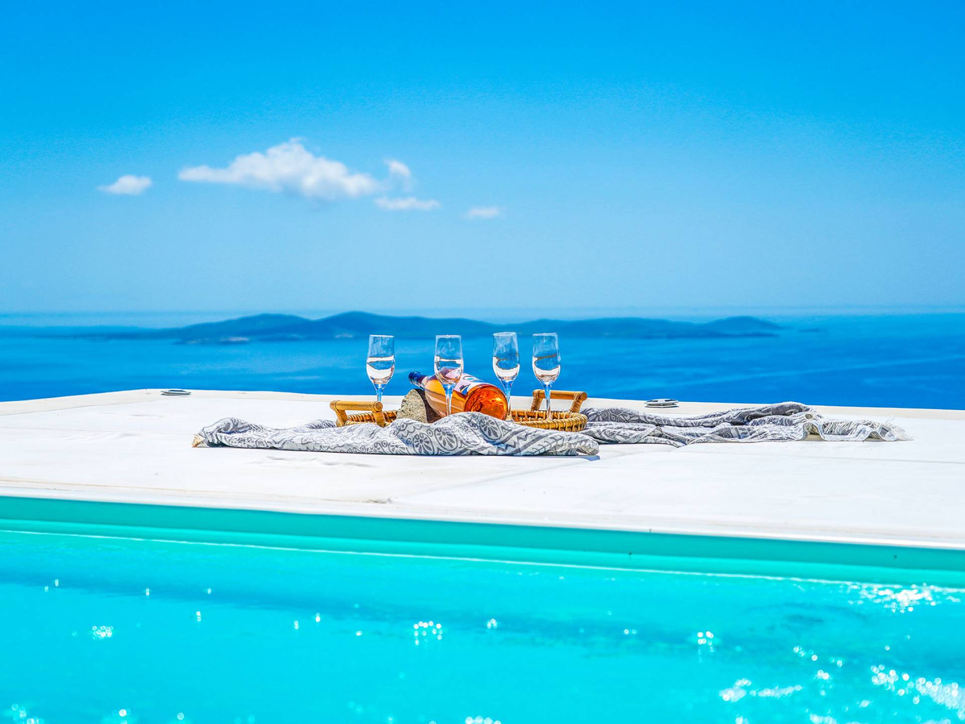 Colore blu, sole e lusso, niente può battere questa combinazione. Cos'altro c'è da chiedere per le tue vacanze? Concediti una piscina privata riscaldata nell'intimità della tua villa, sia interna che esterna. L'acqua è curativa e terapeutica e laverà…