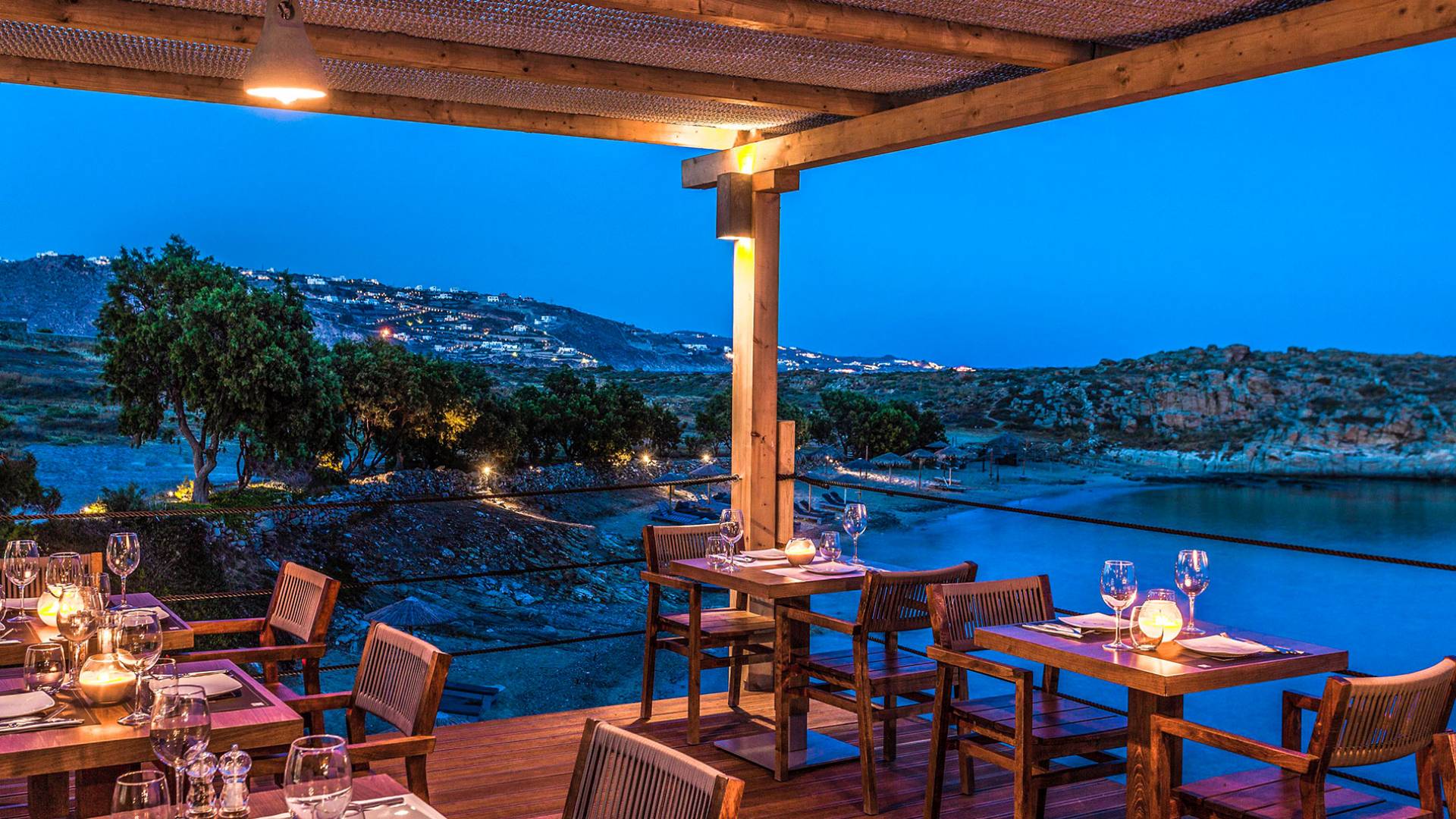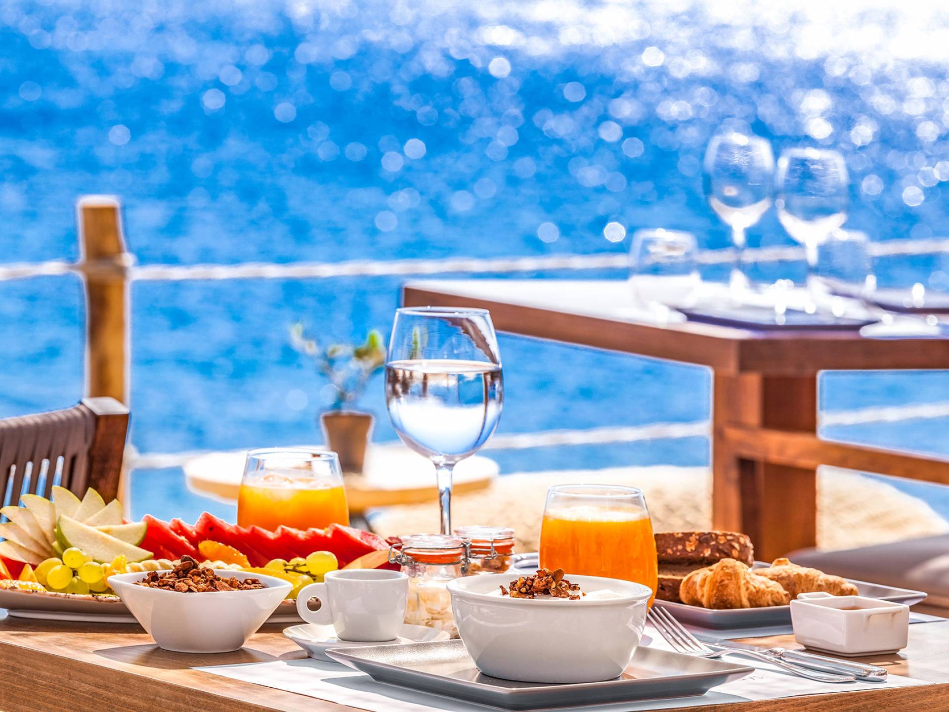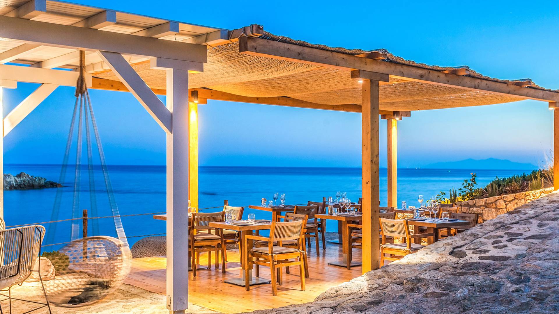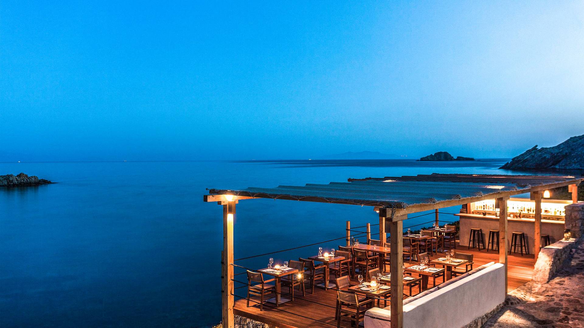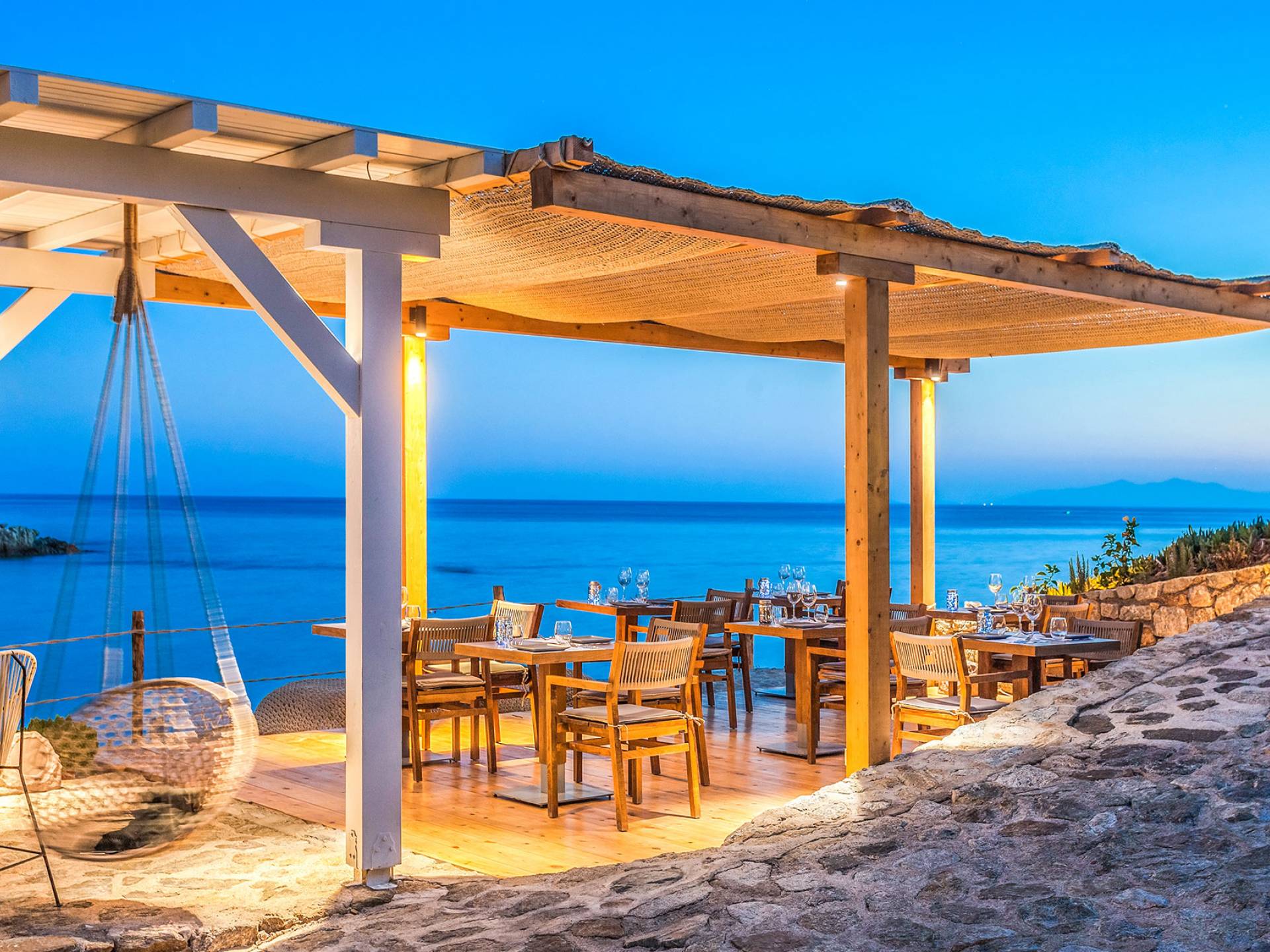 Vivi la serenità di un ambiente magnifico, assapora i sensazionali sapori greci serviti sotto la rilassante colonna sonora delle onde delle acque dell'Egeo e l'illuminazione giocosa del sole o delle stelle. Goditi un'esperienza unica di pranzo o cena nel meraviglioso ristorante vino mare che si affaccia sulla spiaggia privata e assapora i più deliziosi piatti greci del Mediterraneo mentre sorseggi una vista romantica e serena. Festeggia un'occasione speciale, innamorati, condividi momenti caldi con amici o familiari e crea un ricordo di cui fare tesoro.