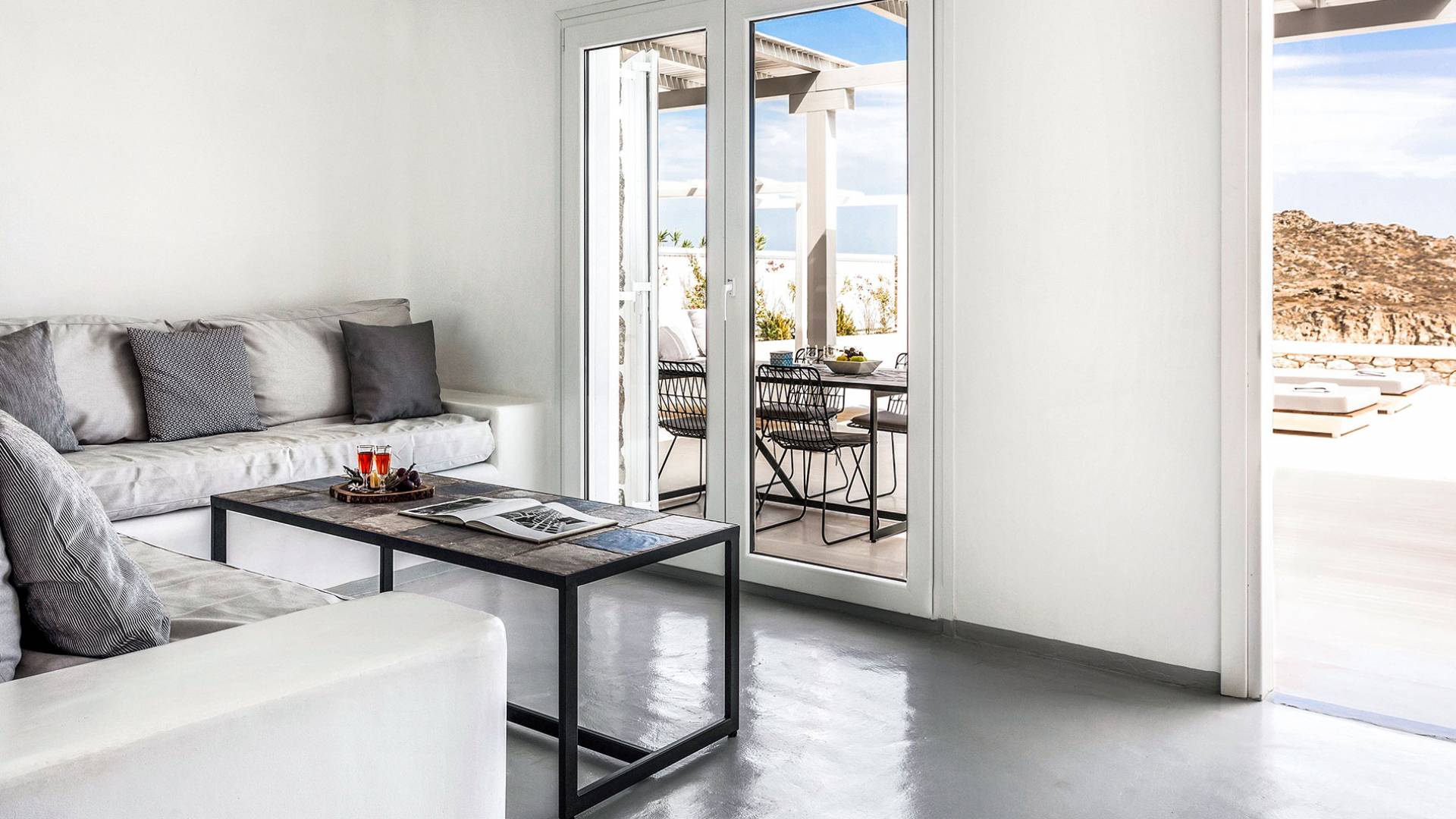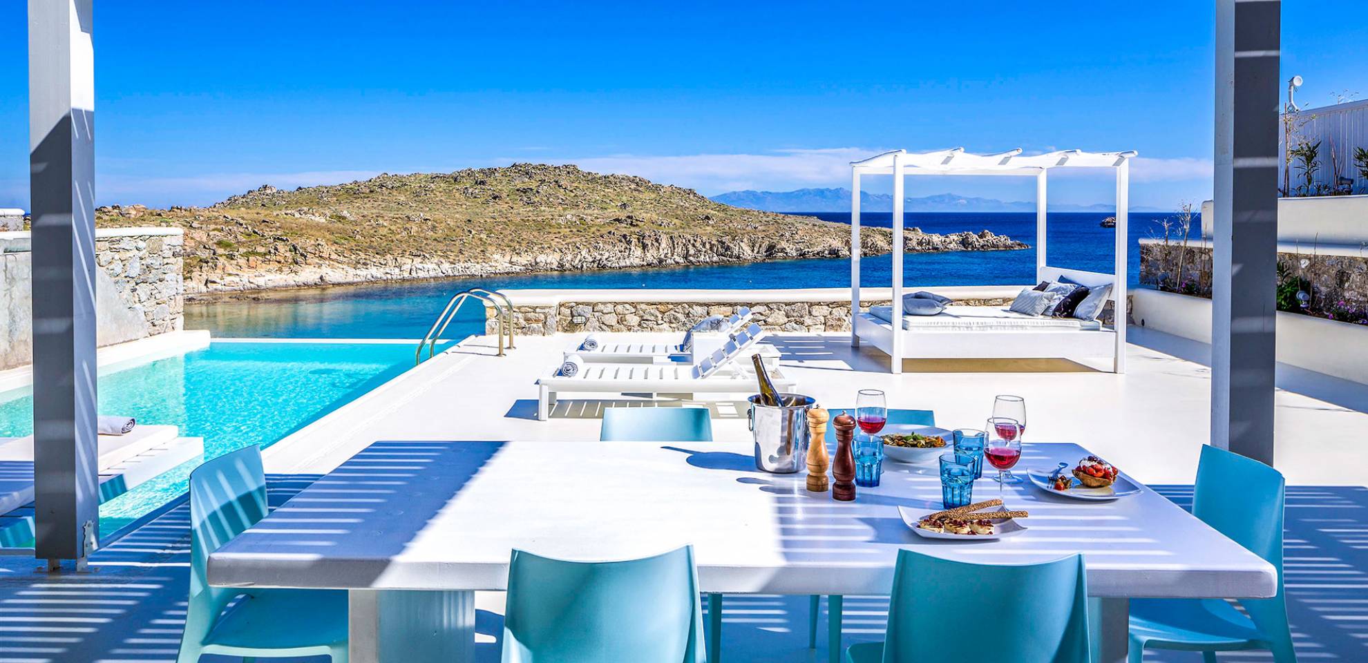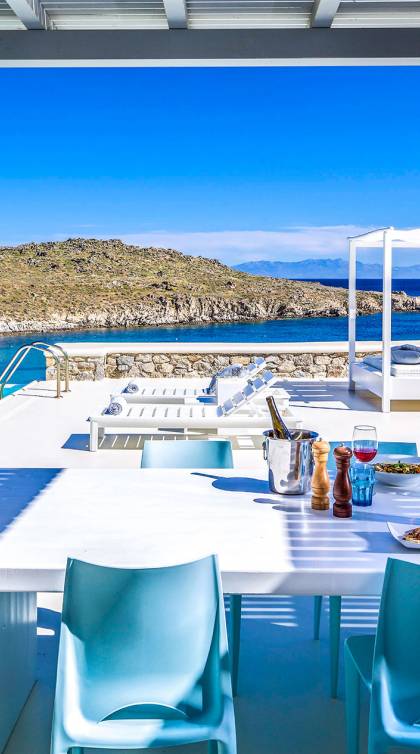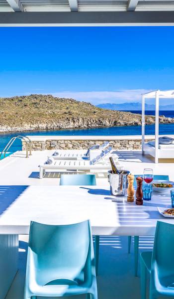 Tutte le lussuose ville Casa del Mar sono arredate in modo brillante e dispongono di camere da letto spaziose, spazi abitativi elegantemente realizzati e ampie terrazze private con viste impareggiabili sull'orizzonte infinito e sulla spettacolare alba di Mykonos. La spiaggia privata di Glifadi, insieme alle eccellenti strutture e agli impareggiabili servizi VIP, fanno di questo magnifico complesso di lusso una scelta favorevole per le coppie e per le vacanze in famiglia.