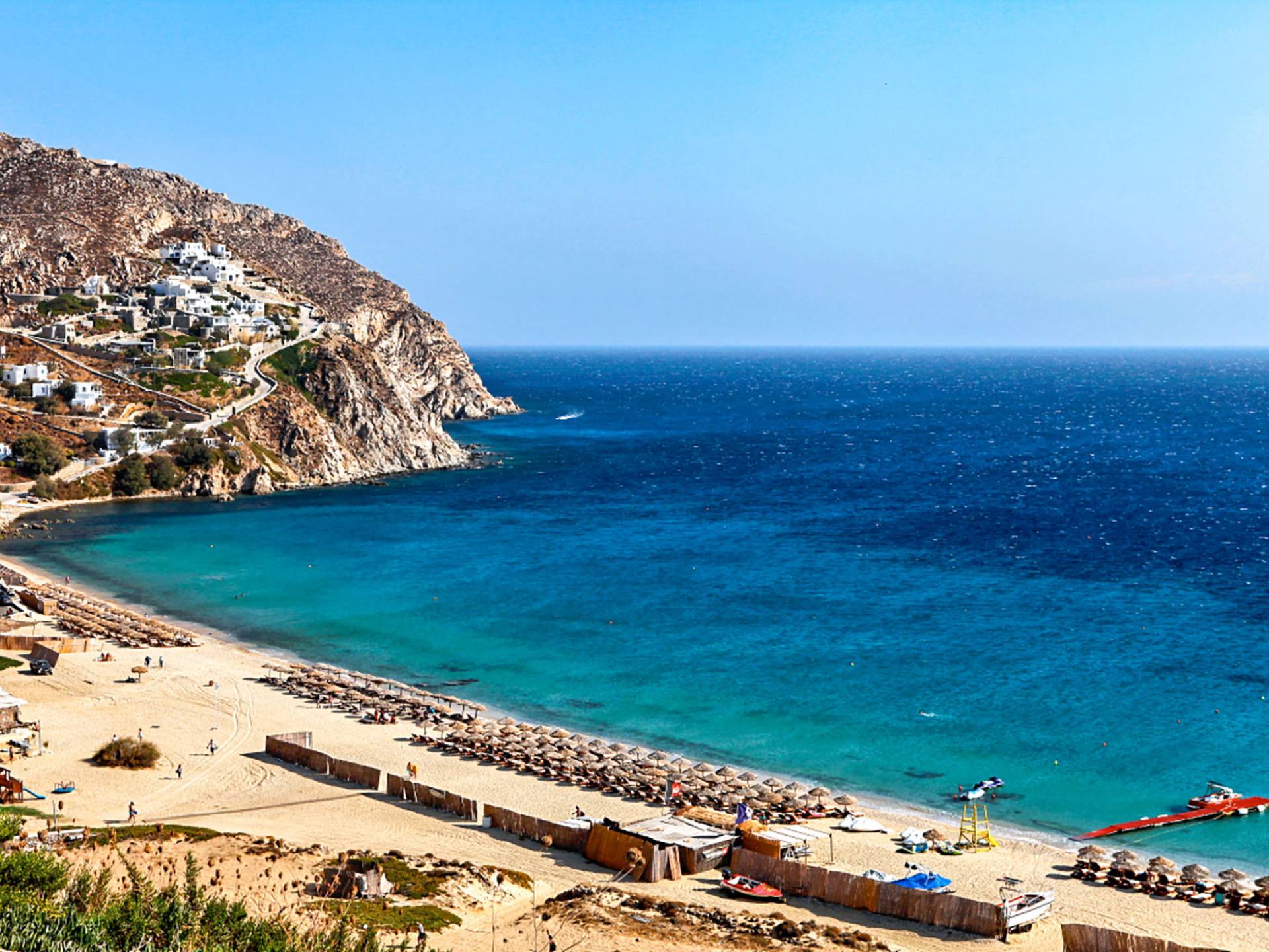È considerata una delle migliori spiagge dell'isola di Mykonos, Elia è sicuramente una delle più belle. Situato a 8 km dalla città è tranquillo e vi rapirà il cuore con la soffice sabbia dorata. Goditi l'ospitalità della gente del posto e la semplicità di questa regione. Qui incontrerai molte persone famose nazionali e internazionali che sono venute anche qui per godersi le acque cristalline e l'atmosfera tranquilla.