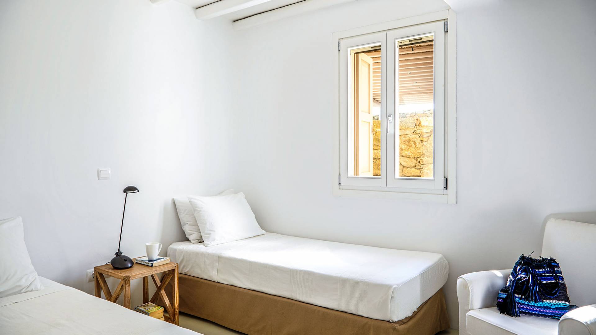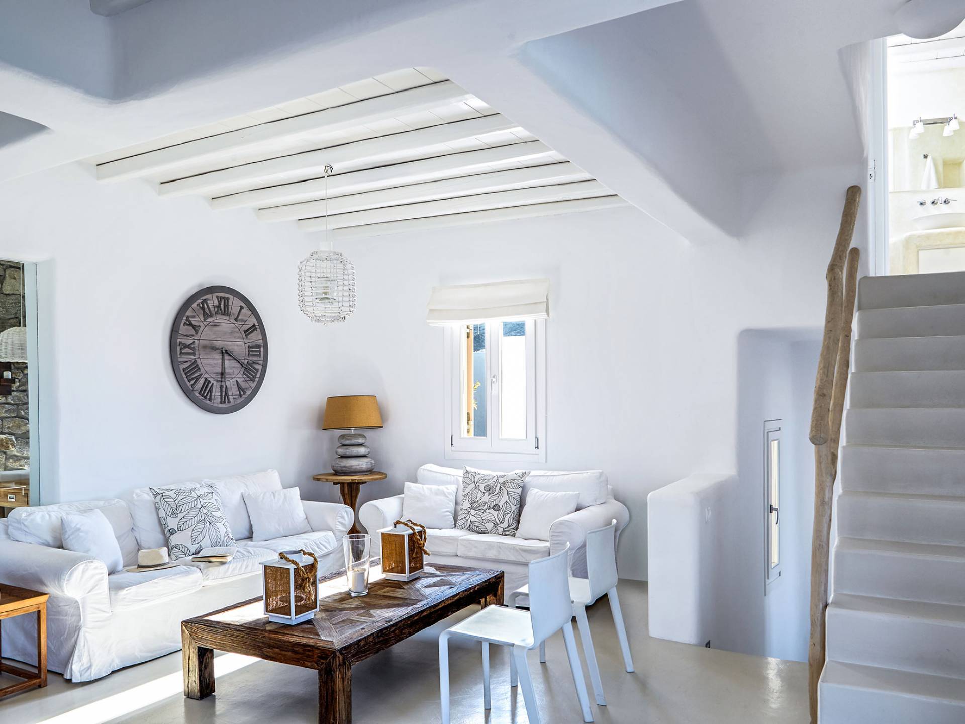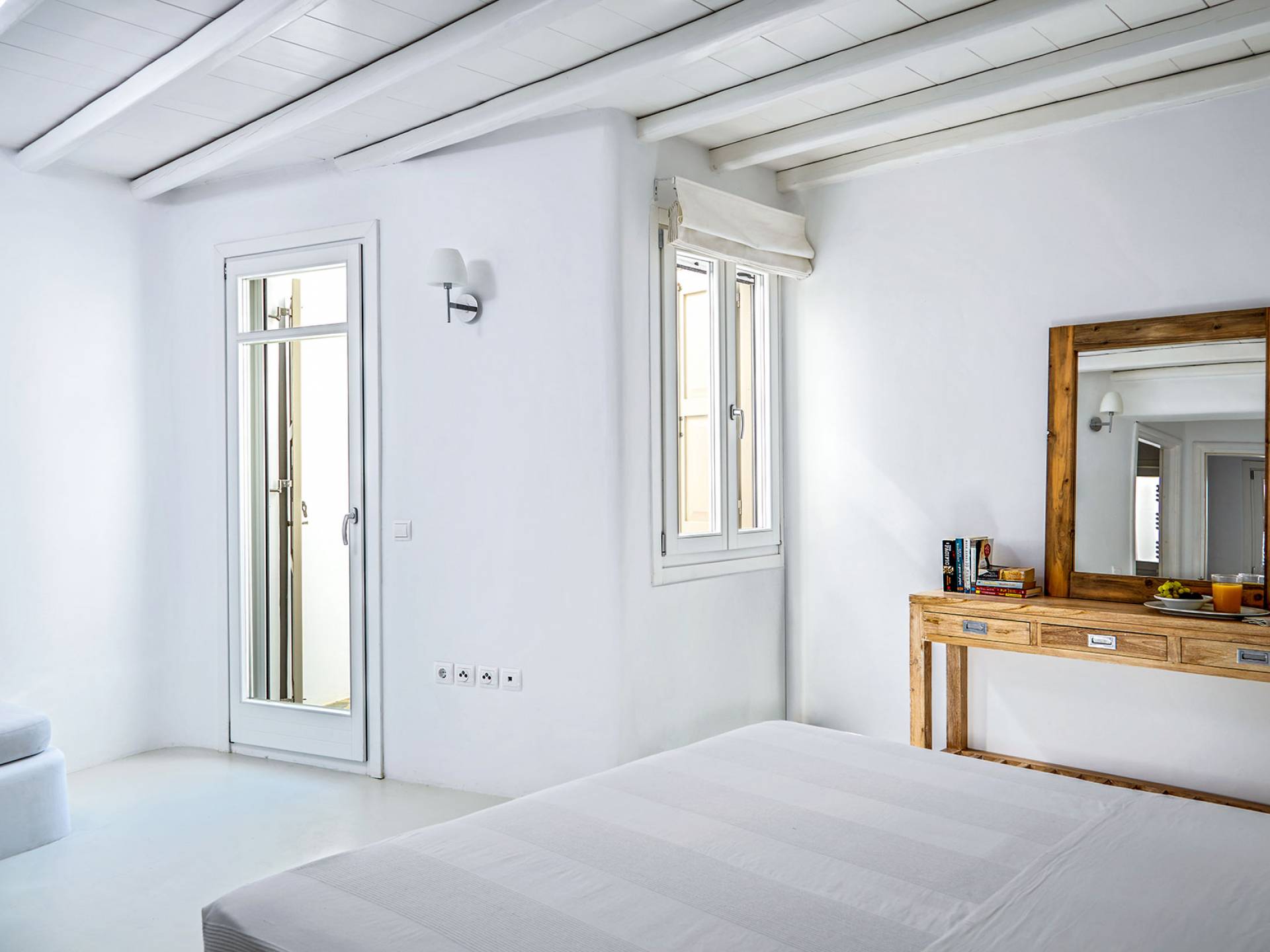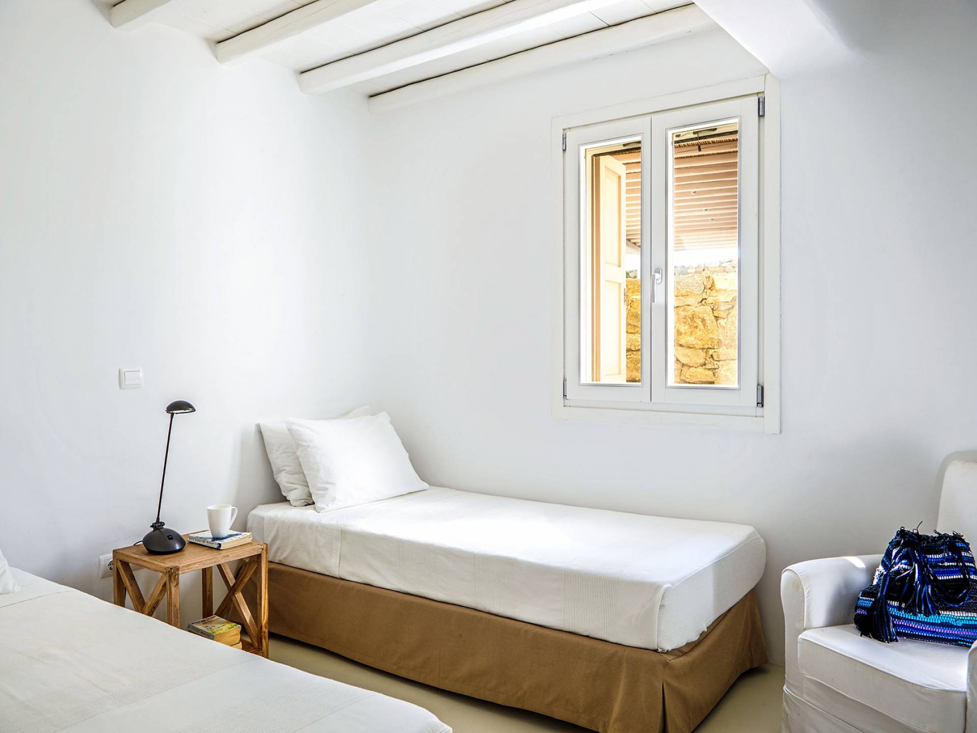 Elia White Residence Mykonos si sviluppa su 3 livelli. Al livello superiore si trovano la zona giorno, il bagno e una cucina completamente attrezzata mentre al livello superiore si trova la camera da letto a forma di barca con un letto king-size e un bagno privato con una spettacolare vista mare da ogni parte. È come essere su una barca galleggiante. Al piano terra si trova una spaziosa camera matrimoniale con bagno privato con letto king-size. Al livello inferiore troviamo un secondo salottino e 3 camere da letto con 3 bagni. Due camere da letto hanno due letti singoli e una camera da letto con letto king-size.