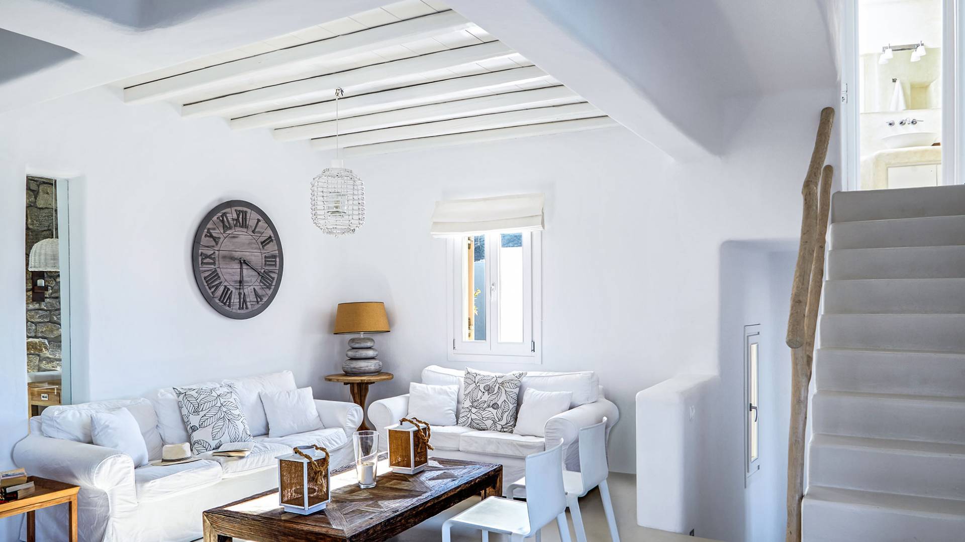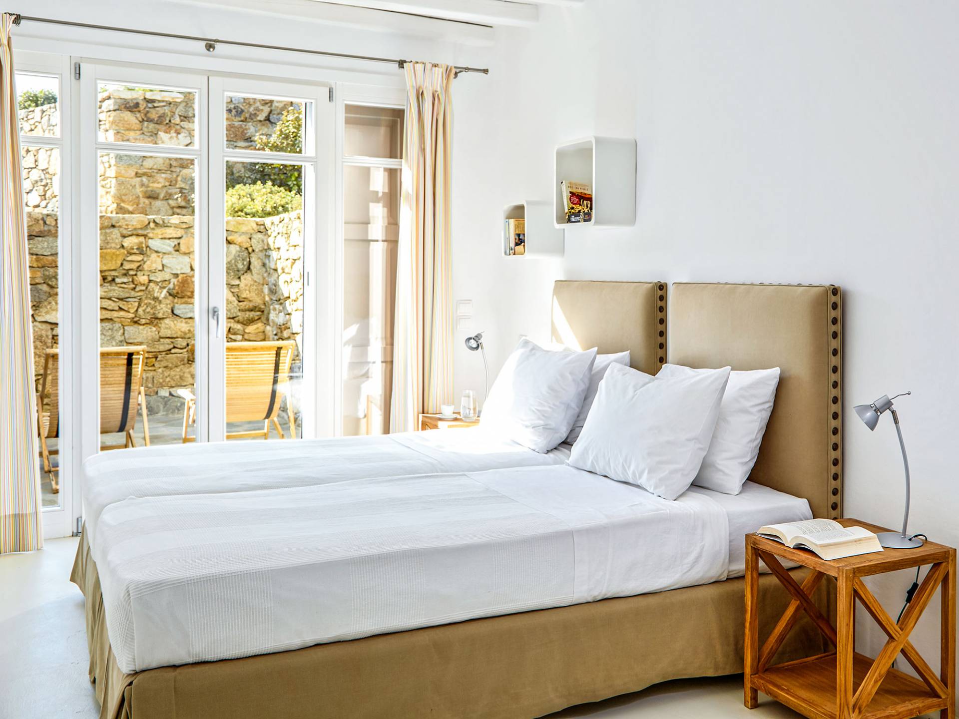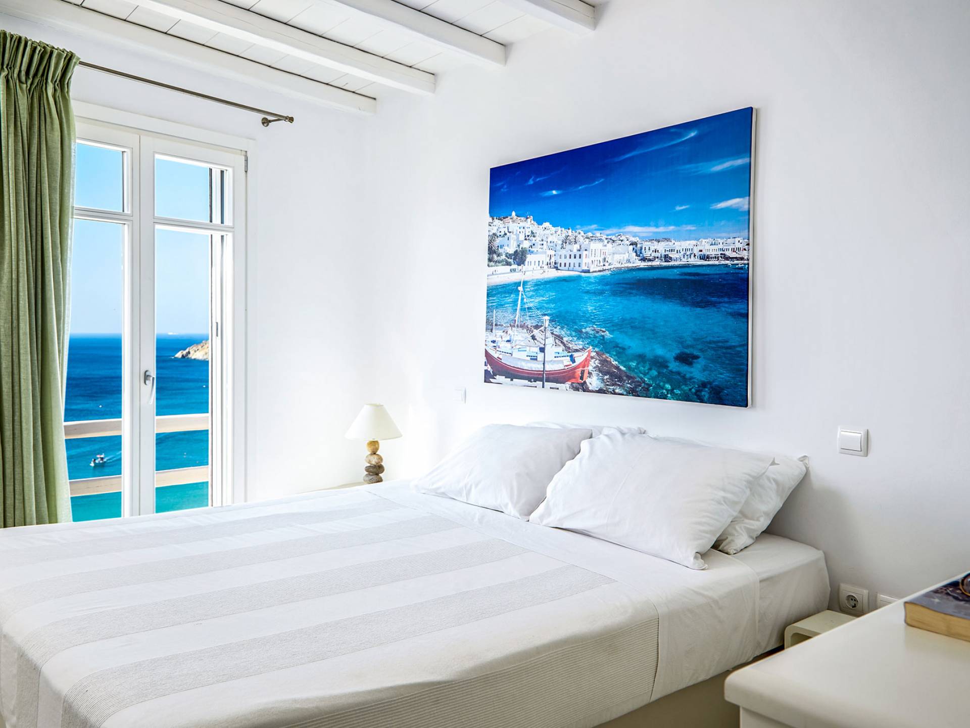 Elia White Residence Mykonos si sviluppa su 3 livelli. Al livello superiore si trovano la zona giorno, il bagno e una cucina completamente attrezzata mentre al livello superiore si trova la camera da letto a forma di barca con un letto king-size e un bagno privato con una spettacolare vista mare da ogni parte. È come essere su una barca galleggiante. Al piano terra si trova una spaziosa camera matrimoniale con bagno privato con letto king-size. Al livello inferiore troviamo un secondo salottino e 3 camere da letto con 3 bagni. Due camere da letto hanno due letti singoli e una camera da letto con letto king-size.