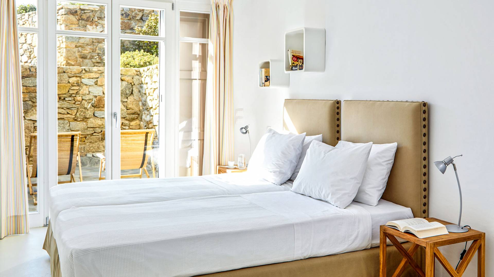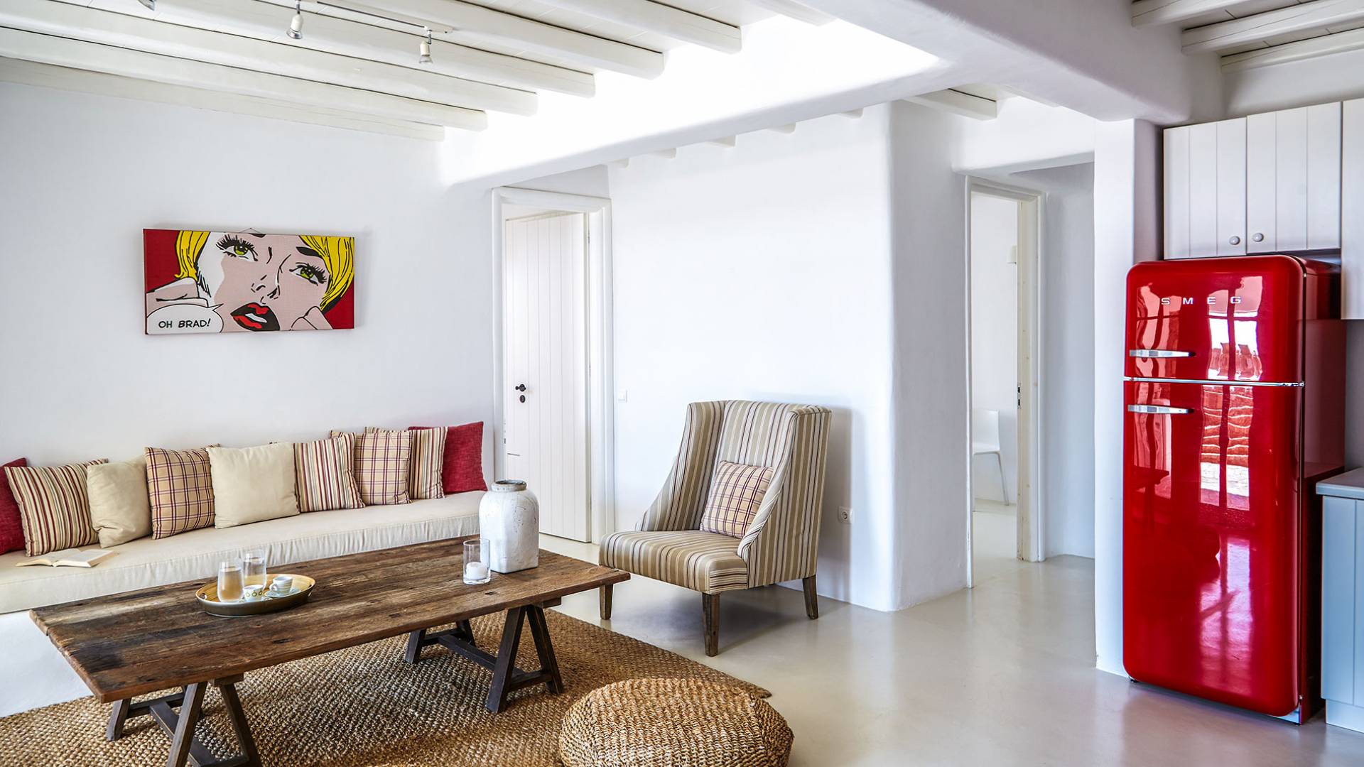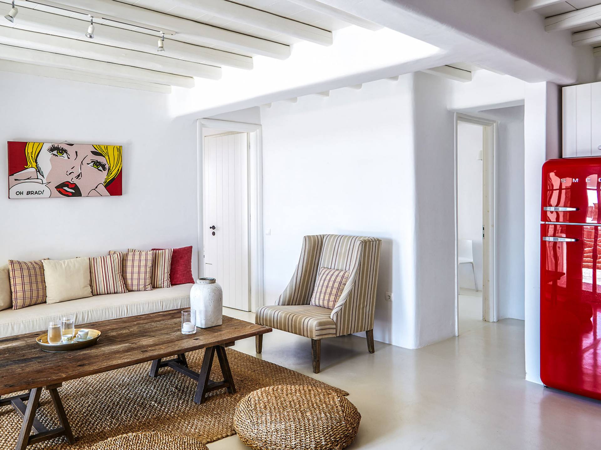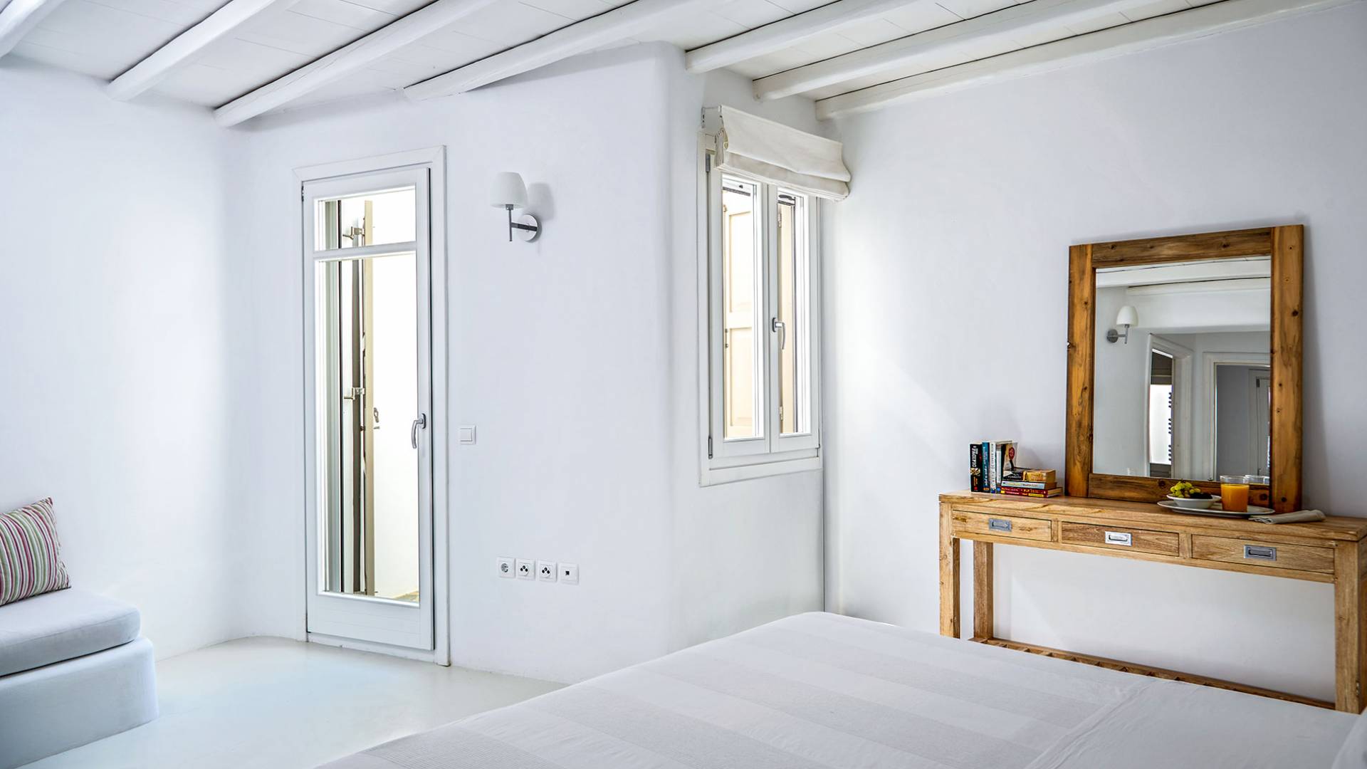 Elia White Residence Mykonos si sviluppa su 3 livelli. Al livello superiore si trovano la zona giorno, il bagno e una cucina completamente attrezzata mentre al livello superiore si trova la camera da letto a forma di barca con un letto king-size e un bagno privato con una spettacolare vista mare da ogni parte. È come essere su una barca galleggiante. Al piano terra si trova una spaziosa camera matrimoniale con bagno privato con letto king-size. Al livello inferiore troviamo un secondo salottino e 3 camere da letto con 3 bagni. Due camere da letto hanno due letti singoli e una camera da letto con letto king-size.