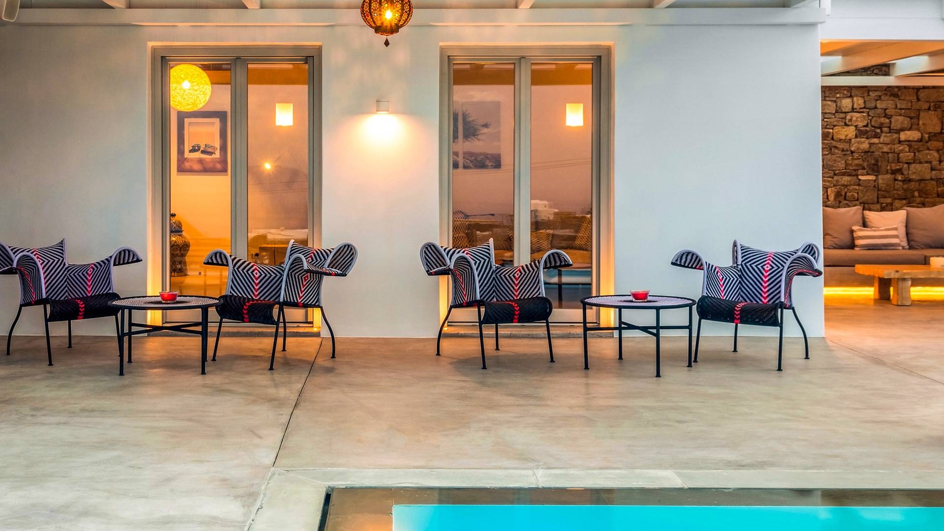 Le ville Ariel e Adel si trovano sul lato sud-est dell'isola, vicino alla spiaggia di Elia. Si trovano uno accanto all'altro in un terreno di 4000 mq separati da un ampio portone, offrendo una totale privacy se necessario. Il design moderno, le strutture all'avanguardia e le splendide viste rendono queste ville una destinazione unica per famiglie e gruppi di amici.