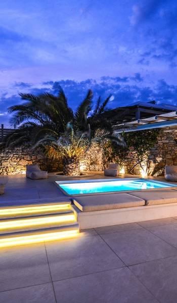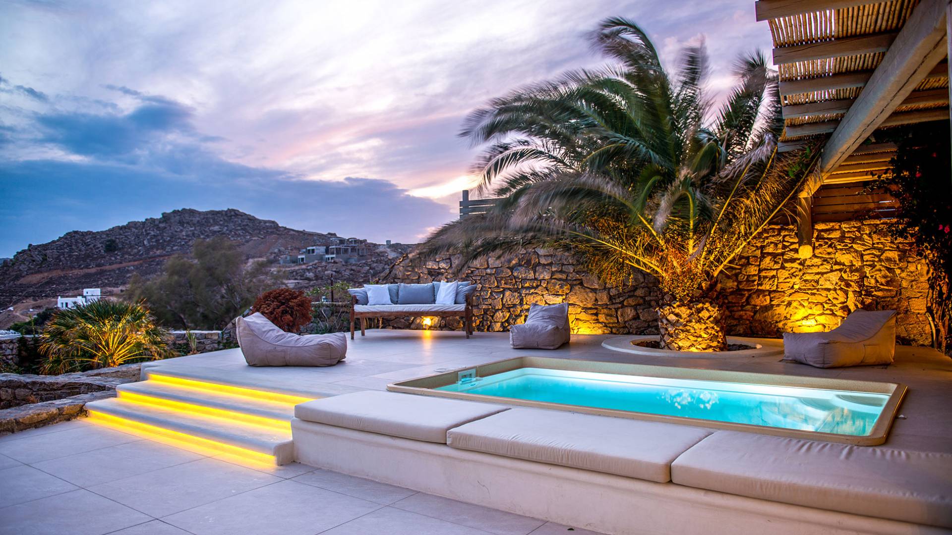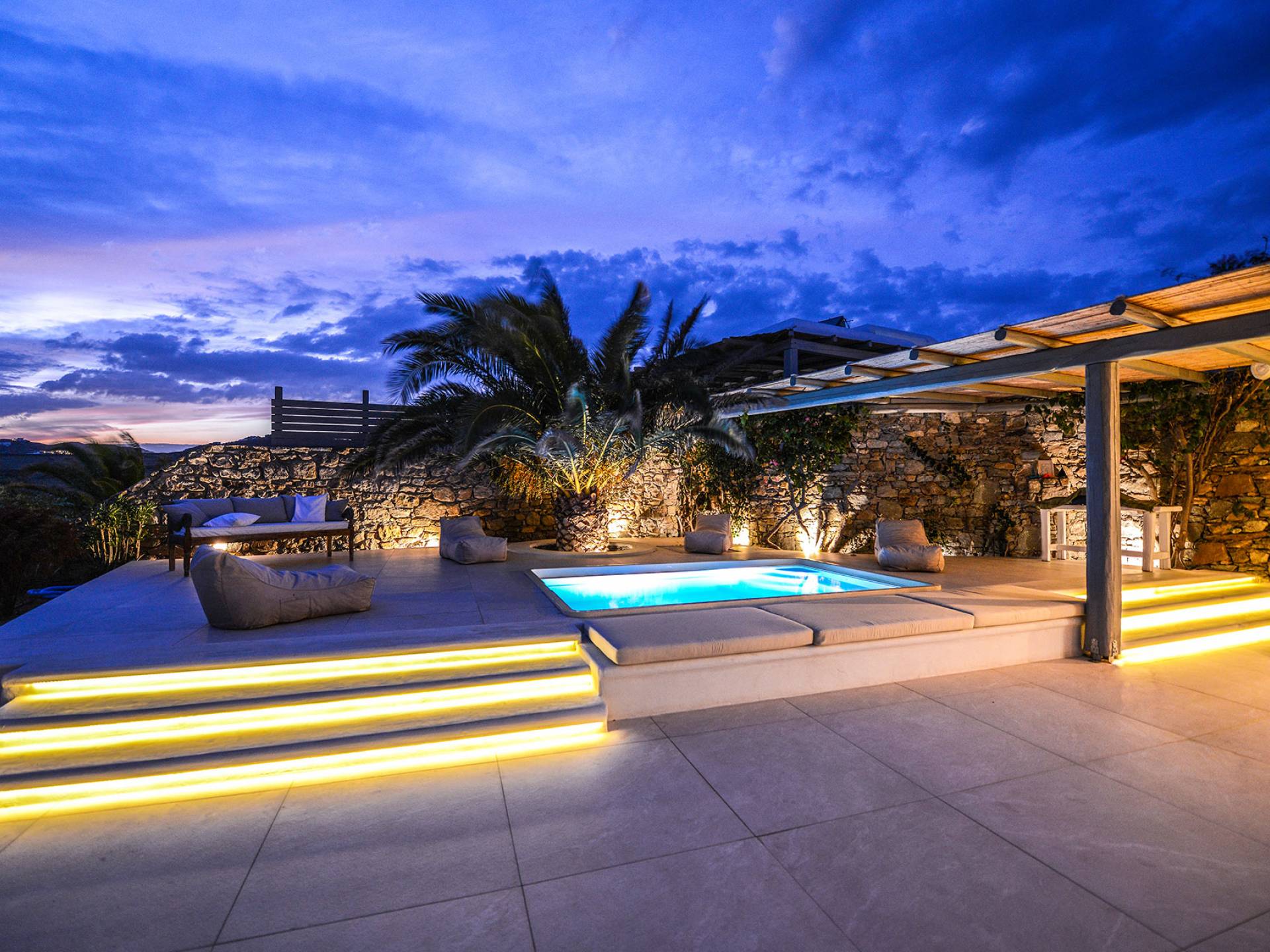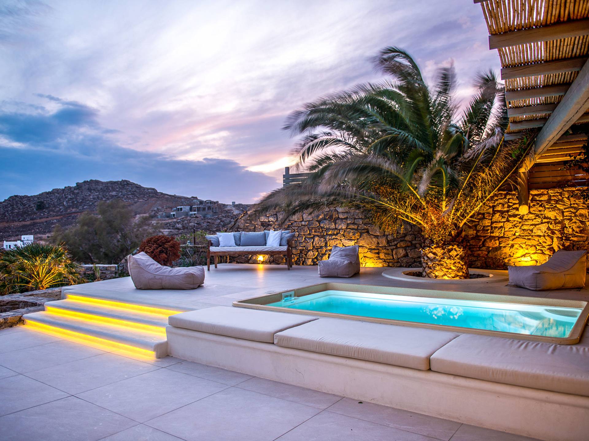 Villa Mersini a Thalasses Villas Mykonos è una lussuosa villa in affitto con 3 camere da letto e una jacuzzi all'aperto. Villa Mersini ha la capacità di ospitare fino a 6 persone, a seconda della vostra scelta di intimità e comfort. La villa è composta da 1 camera da letto con bagno privato e 2 camere da letto aggiuntive con un bagno disimpegno, una delle quali è una camera in stile loft con una tenda per la privacy. La villa è circondata da giardini e da un ampio spazio esterno completamente attrezzato con barbecue e macchina per il ghiaccio per preparare cocktail e bevande rinfrescanti, graziosi mobili da giardino, una grande vasca idromassaggio e parcheggio designato. La villa ha una vista eccezionale sul Mar Egeo per deliziare i tuoi occhi e rilassare la tua anima.