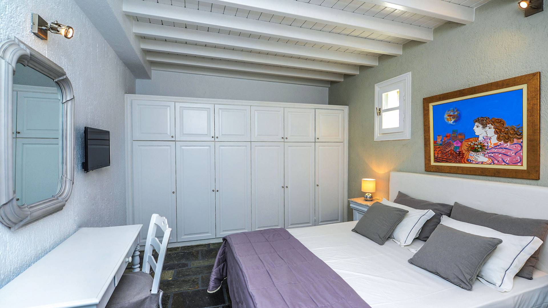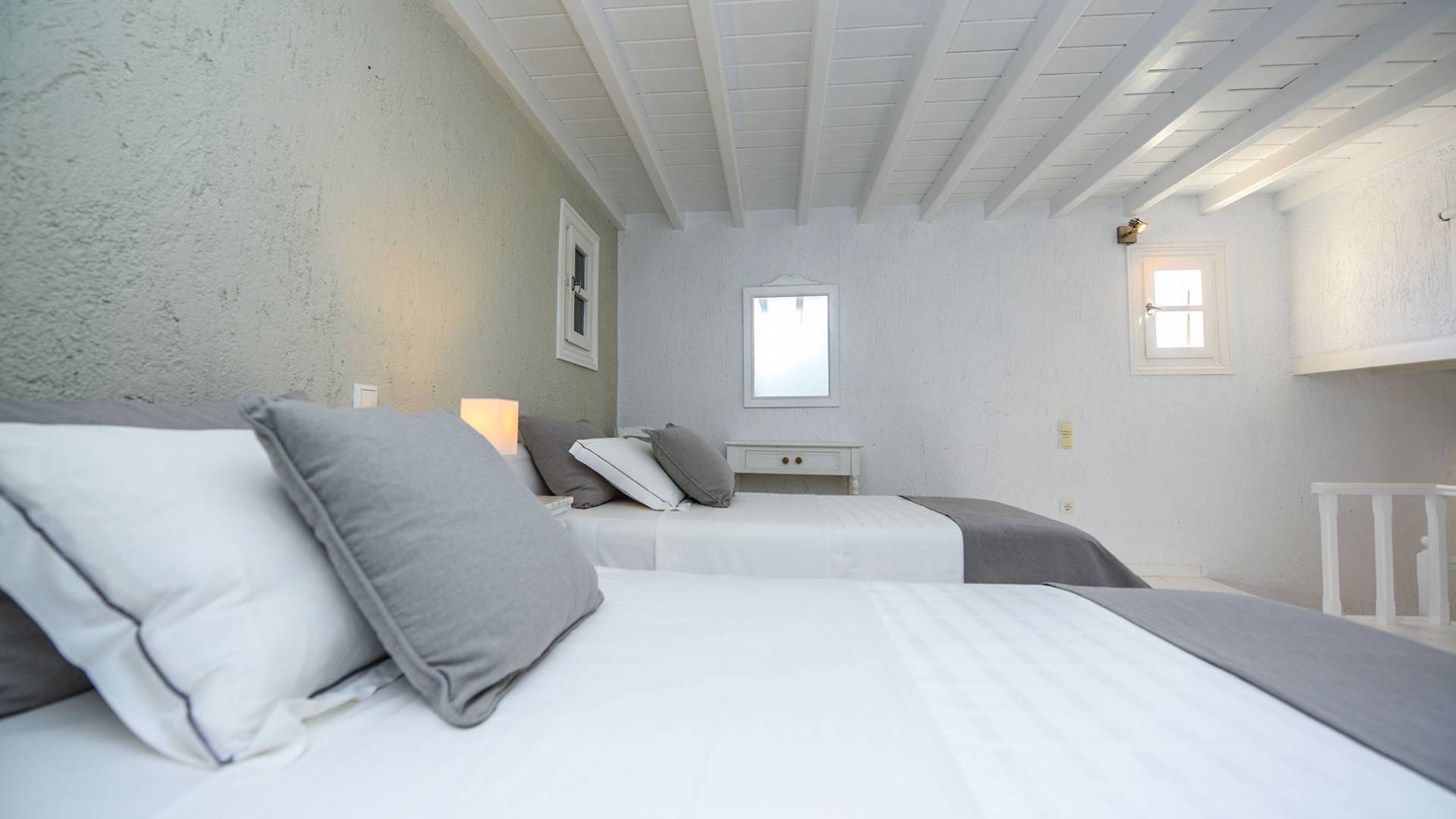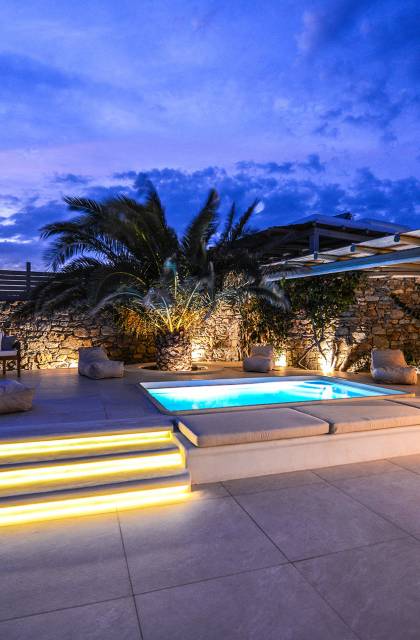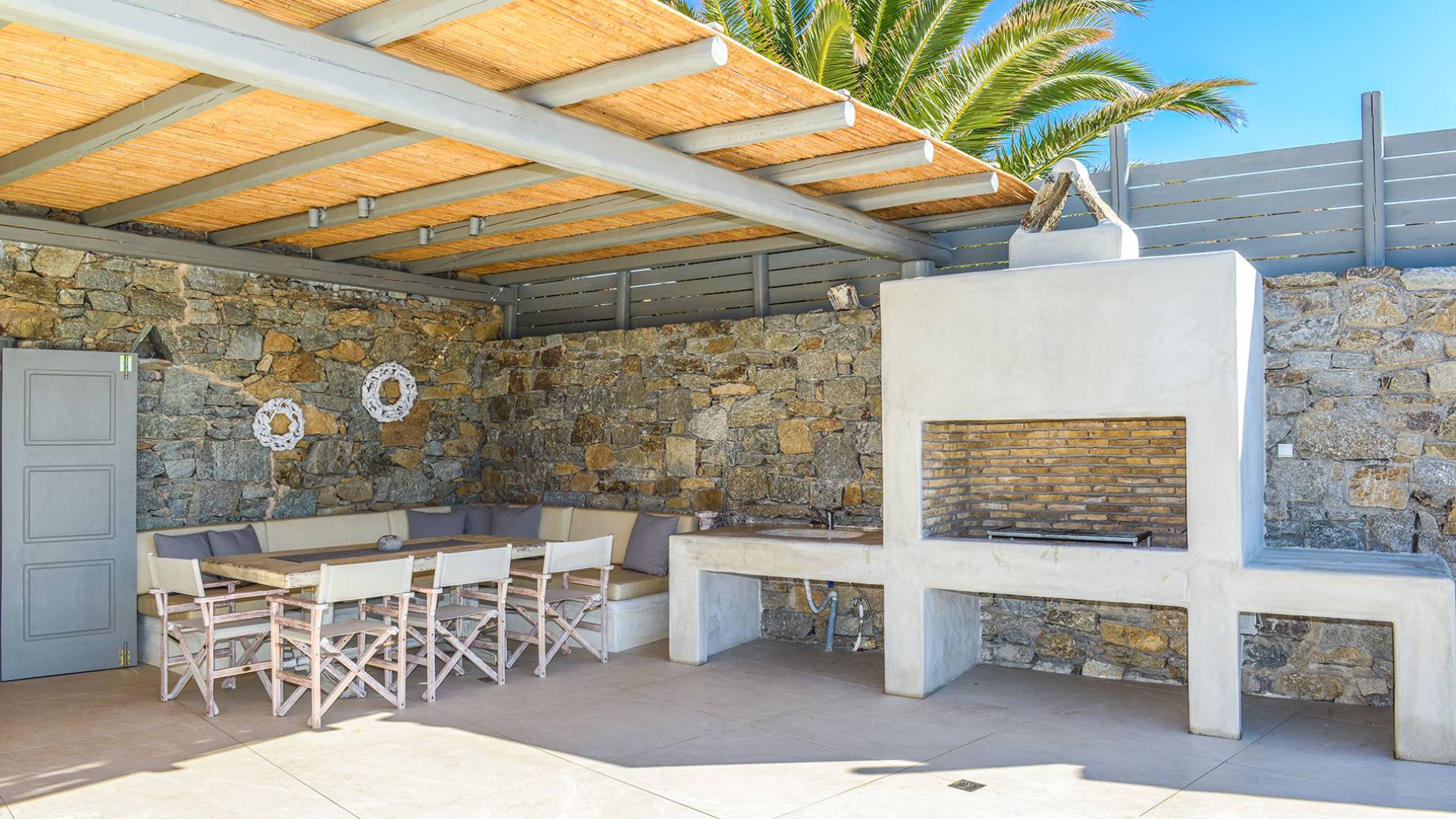 Villa Mersini a Thalasses Villas Mykonos è una lussuosa villa in affitto con 3 camere da letto e una jacuzzi all'aperto. Villa Mersini ha la capacità di ospitare fino a 6 persone, a seconda della vostra scelta di intimità e comfort. La villa è composta da 1 camera da letto con bagno privato e 2 camere da letto aggiuntive con un bagno disimpegno, una delle quali è una camera in stile loft con una tenda per la privacy. La villa è circondata da giardini e da un ampio spazio esterno completamente attrezzato con barbecue e macchina per il ghiaccio per preparare cocktail e bevande rinfrescanti, graziosi mobili da giardino, una grande vasca idromassaggio e parcheggio designato. La villa ha una vista eccezionale sul Mar Egeo per deliziare i tuoi occhi e rilassare la tua anima.
