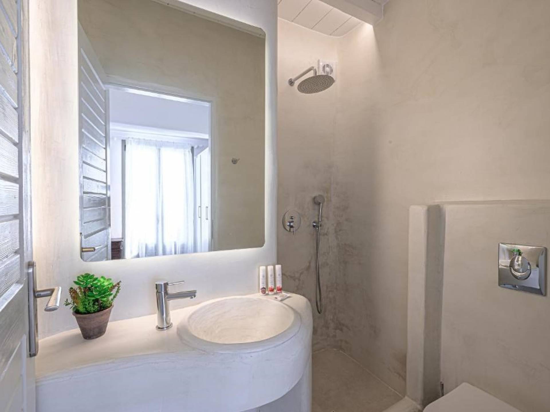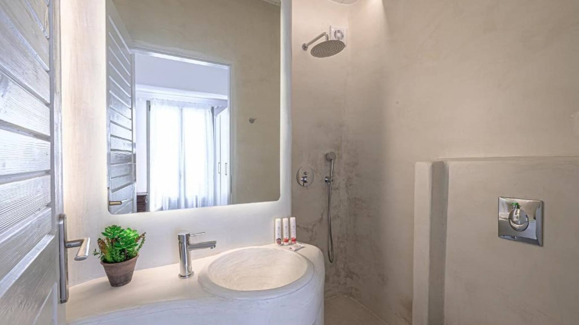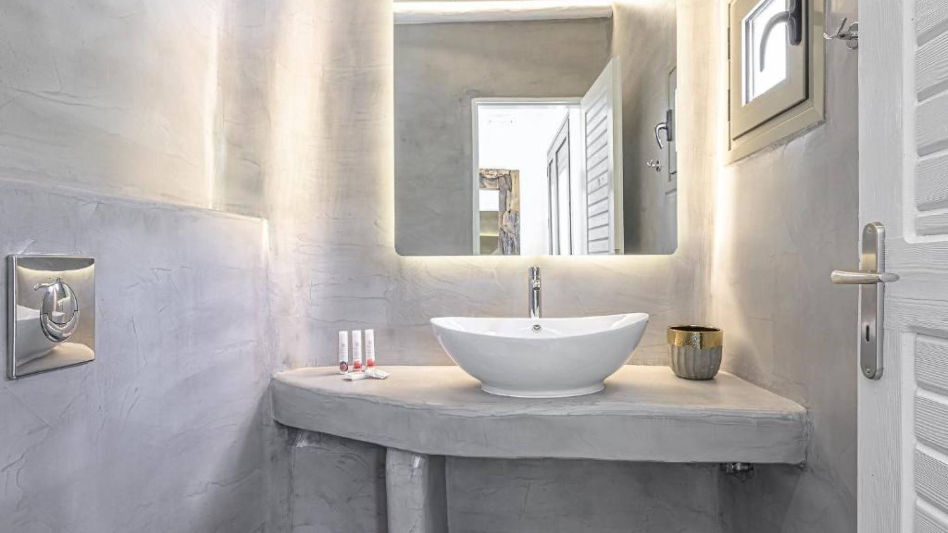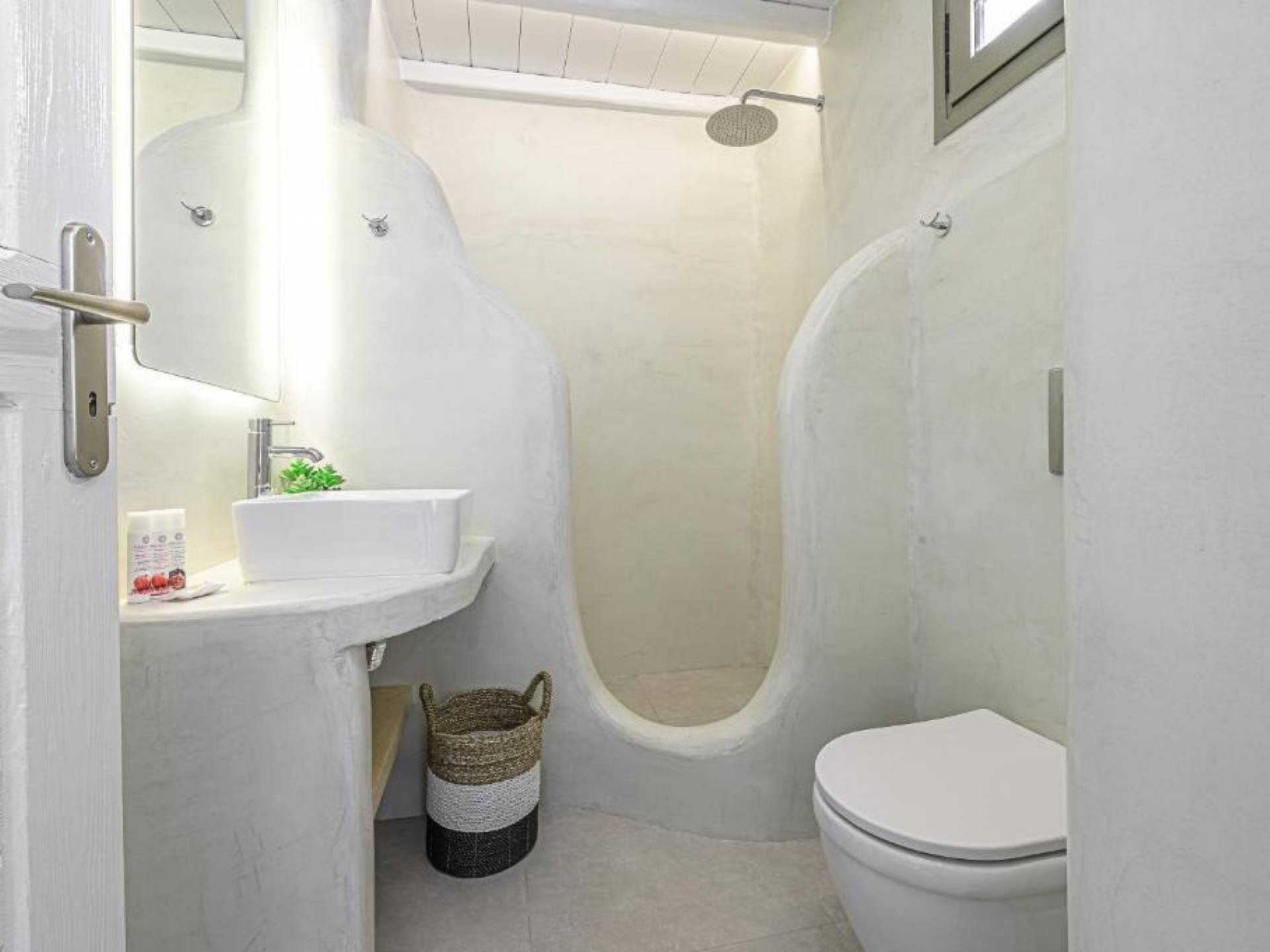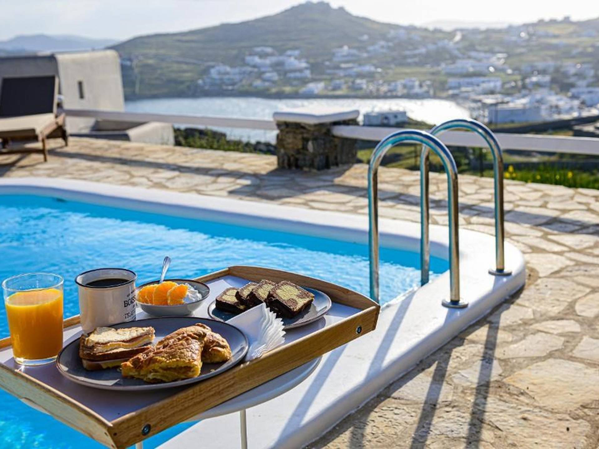 Interni tradizionali, tutti in bianco, arroccati su una collina con viste panoramiche mozzafiato sul Mar Egeo che vantano un'ampia zona giorno a pianta aperta interna ed esterna e offrono privacy e isolamento in un luogo molto idilliaco. Il livello Medio è composto da un luminoso ed elegante soggiorno e una graziosa e spaziosa sala da pranzo, entrambi con accesso diretto alla zona piscina, una cucina completamente attrezzata, un WC per gli ospiti e un'ampia veranda con un grande tavolo da pranzo che offre una splendida vista il mare. Il livello superiore è composto da una camera matrimoniale queen size con bagno privato completamente attrezzato. Il piano terra è costituito dal resto delle camere da letto, tutte con i loro bagni privati e completamente attrezzati. Ogni villa dispone di un sistema audio, un'elegante piscina a sfioro e più aree salotto per godersi il bellissimo sole greco