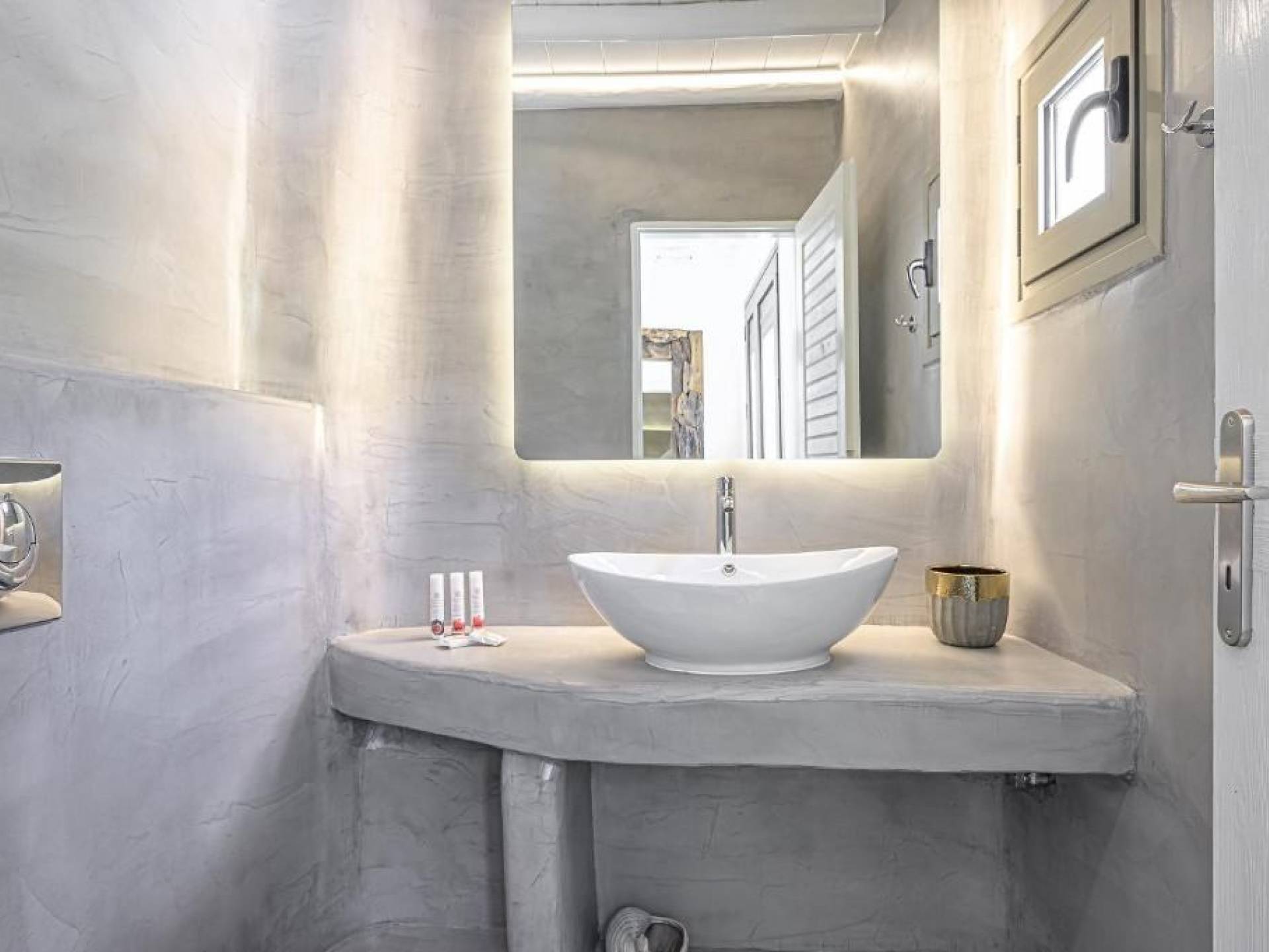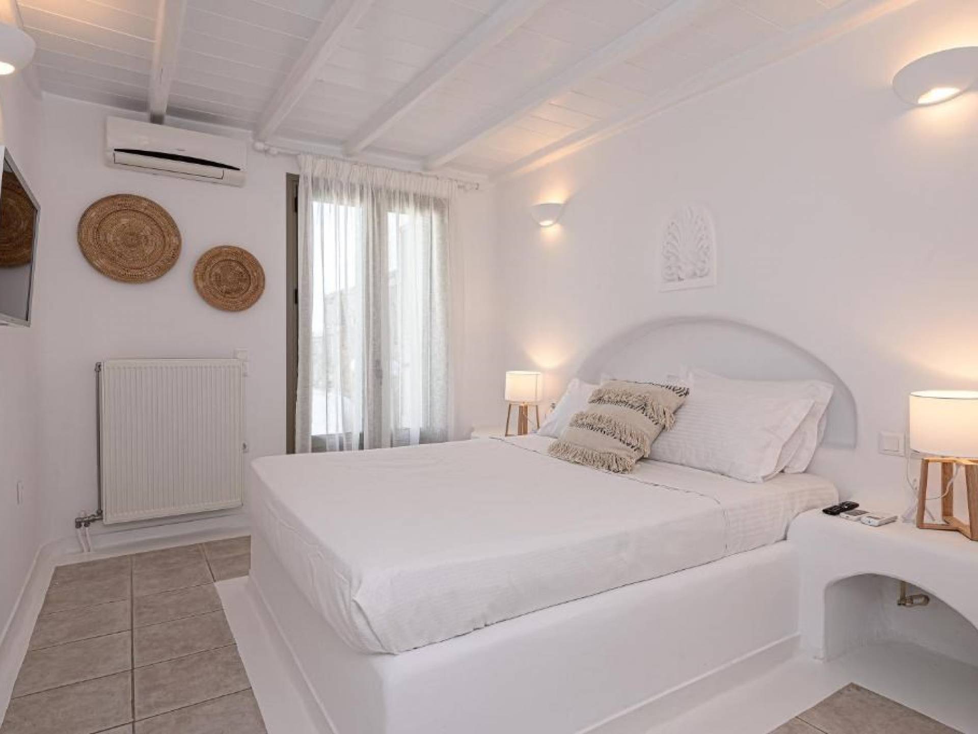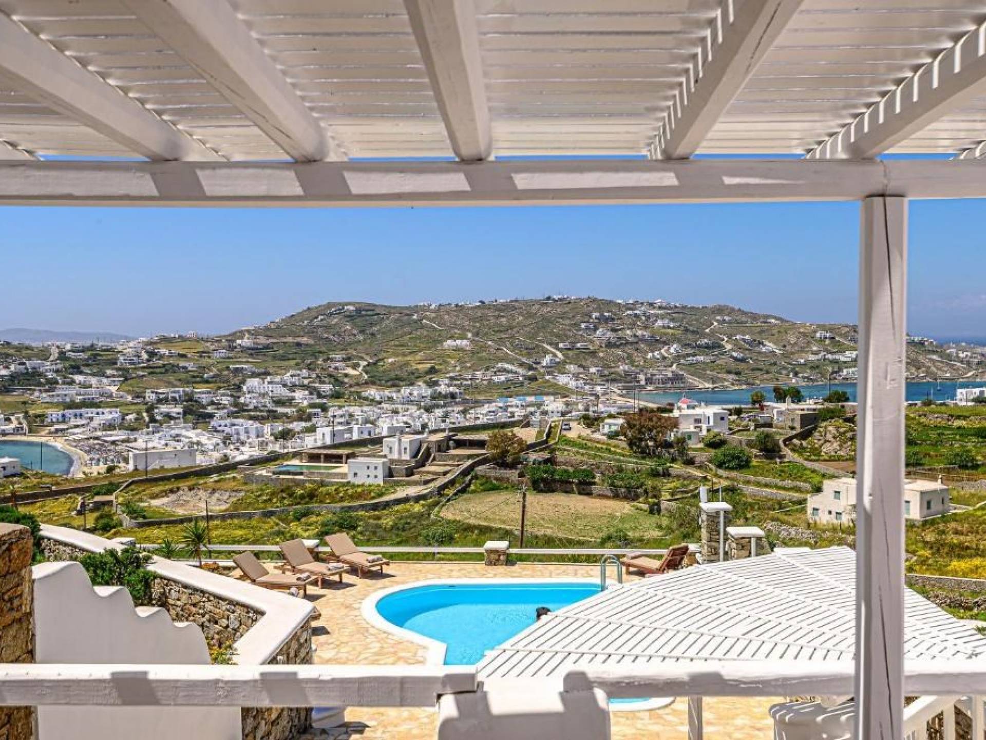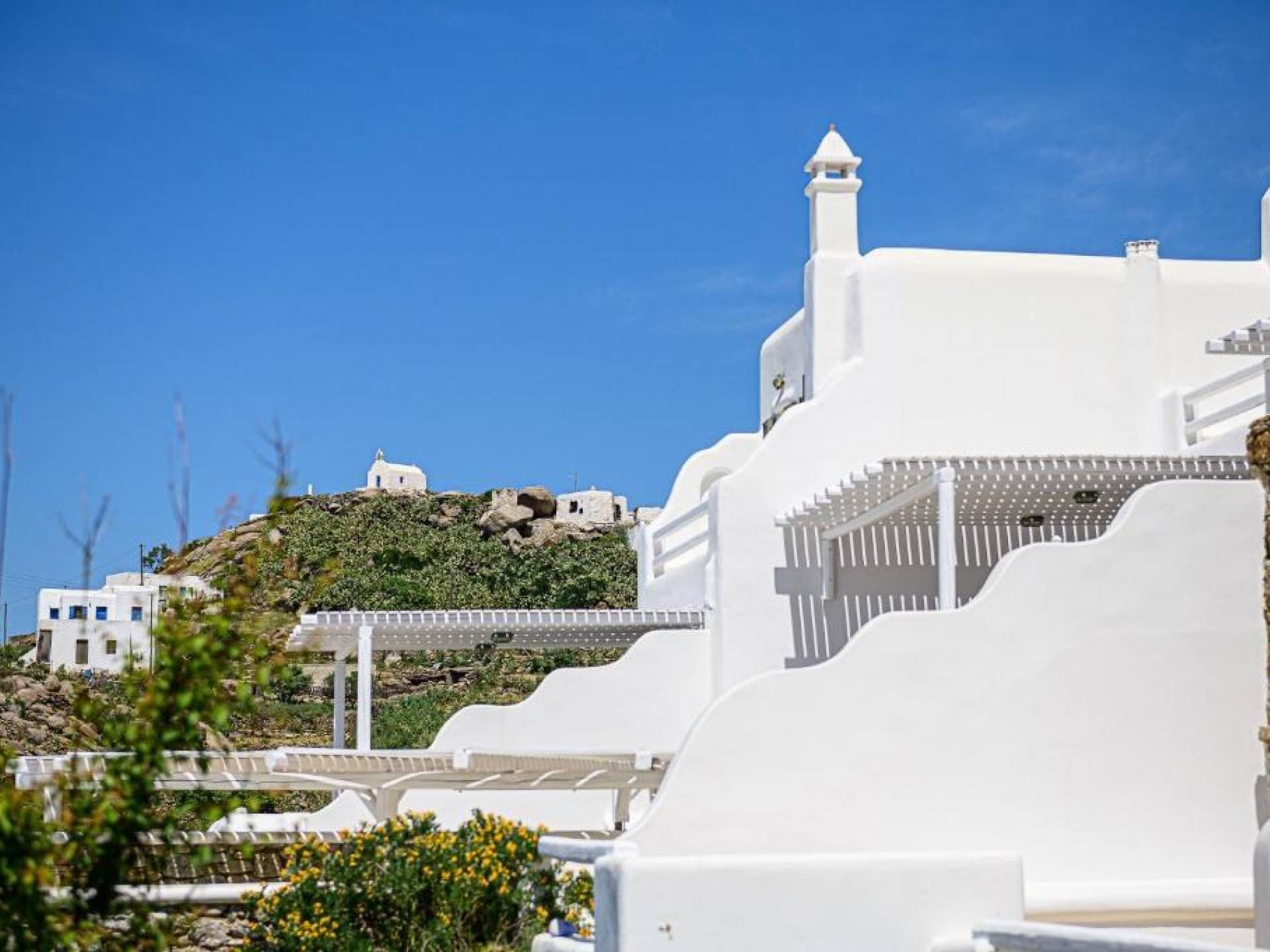 Questi ultimi sono circondati da un ampio prendisole che comprende un'ampia area lounge all'aperto e ombreggiata da pergolato dotata di comodi divani con cuscini lettini prendisole sedie a sdraio abbinati ad un grande tavolo da pranzo che predispone gli ospiti a gustare un delizioso pasto o un cocktail mentre si guarda la maestosa alba, ascoltando i suoni del mare e affacciandosi sulla Piccola Venezia di Mykonos. L'eccellente giardino paesaggistico è pieno di palme e una selezione di fiori che calmano i sensi e creano un'atmosfera romantica di relax e benessere. 9muses Villa Mykonos è considerata un rifugio lussuoso, tradizionale e sensazionale.