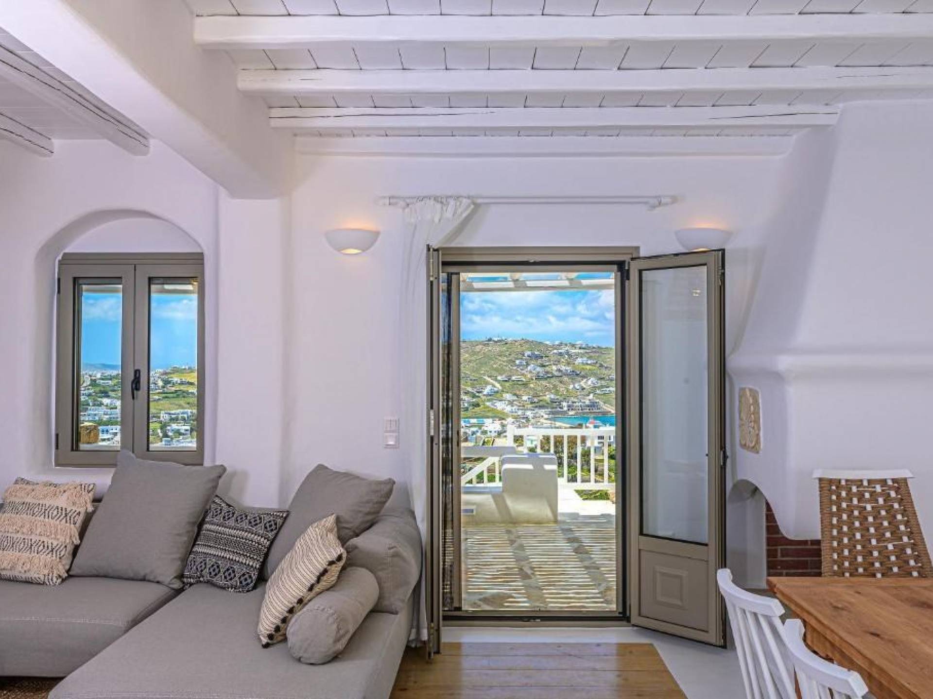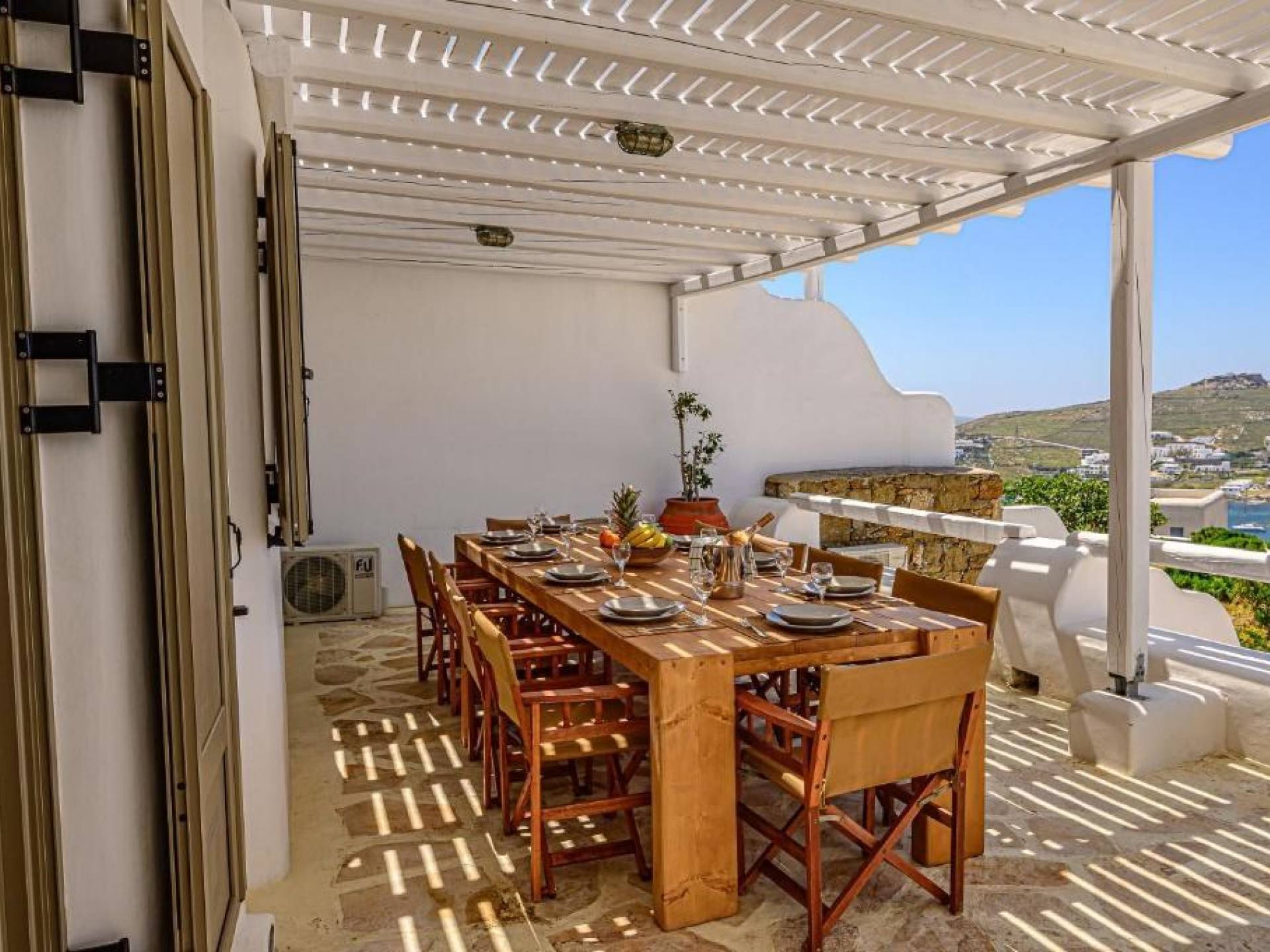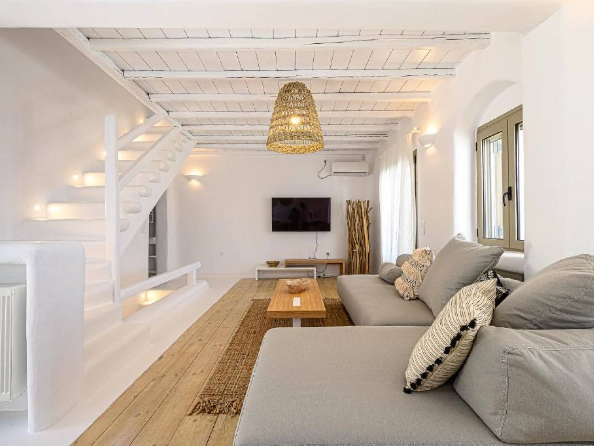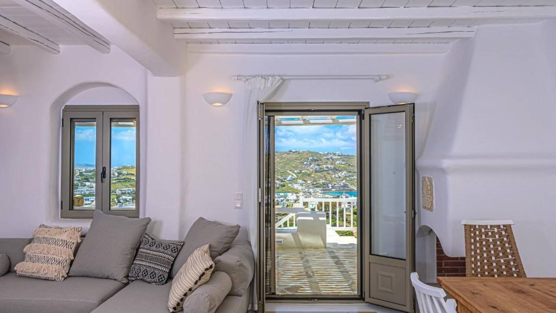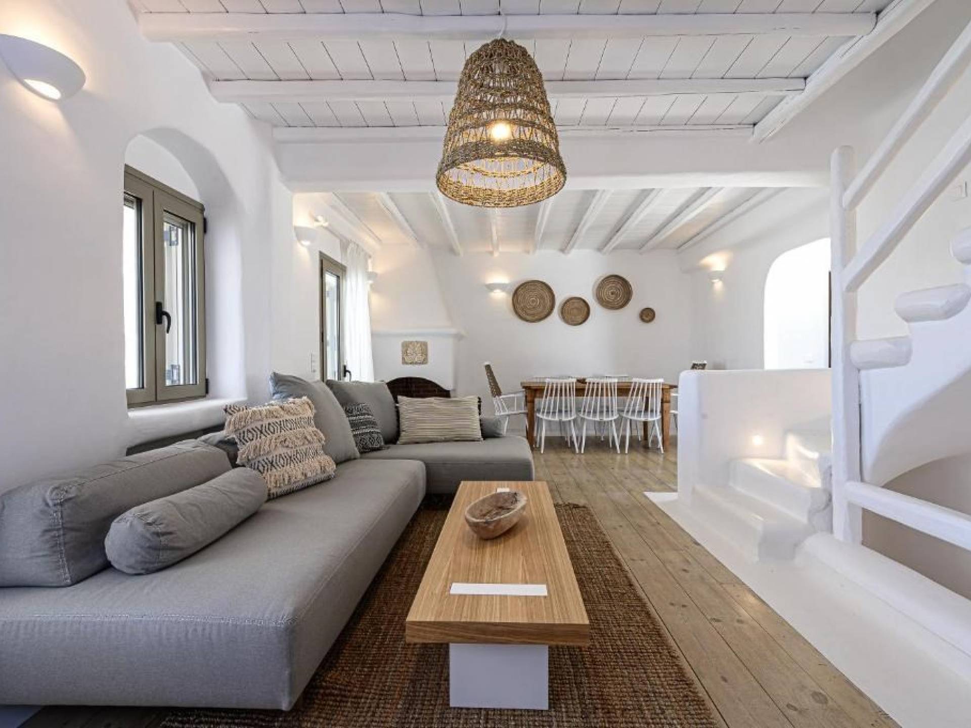 Villa Thalia dispone di un ampio soggiorno e sala da pranzo che termina con il grande portico orientato a ovest. Da lì gli ospiti possono godere di viste uniche sul mare o possono anche assaporare lo splendido tramonto mentre sono al riparo dal forte vento del nord di Mykonos. Al suo livello d'ingresso, dispone di un ampio soggiorno e sala da pranzo che termina con il grande portico orientato a ovest. Da lì gli ospiti possono godere di viste uniche sul mare o possono anche assaporare lo splendido tramonto mentre sono al riparo dal forte vento del nord di Mykonos.