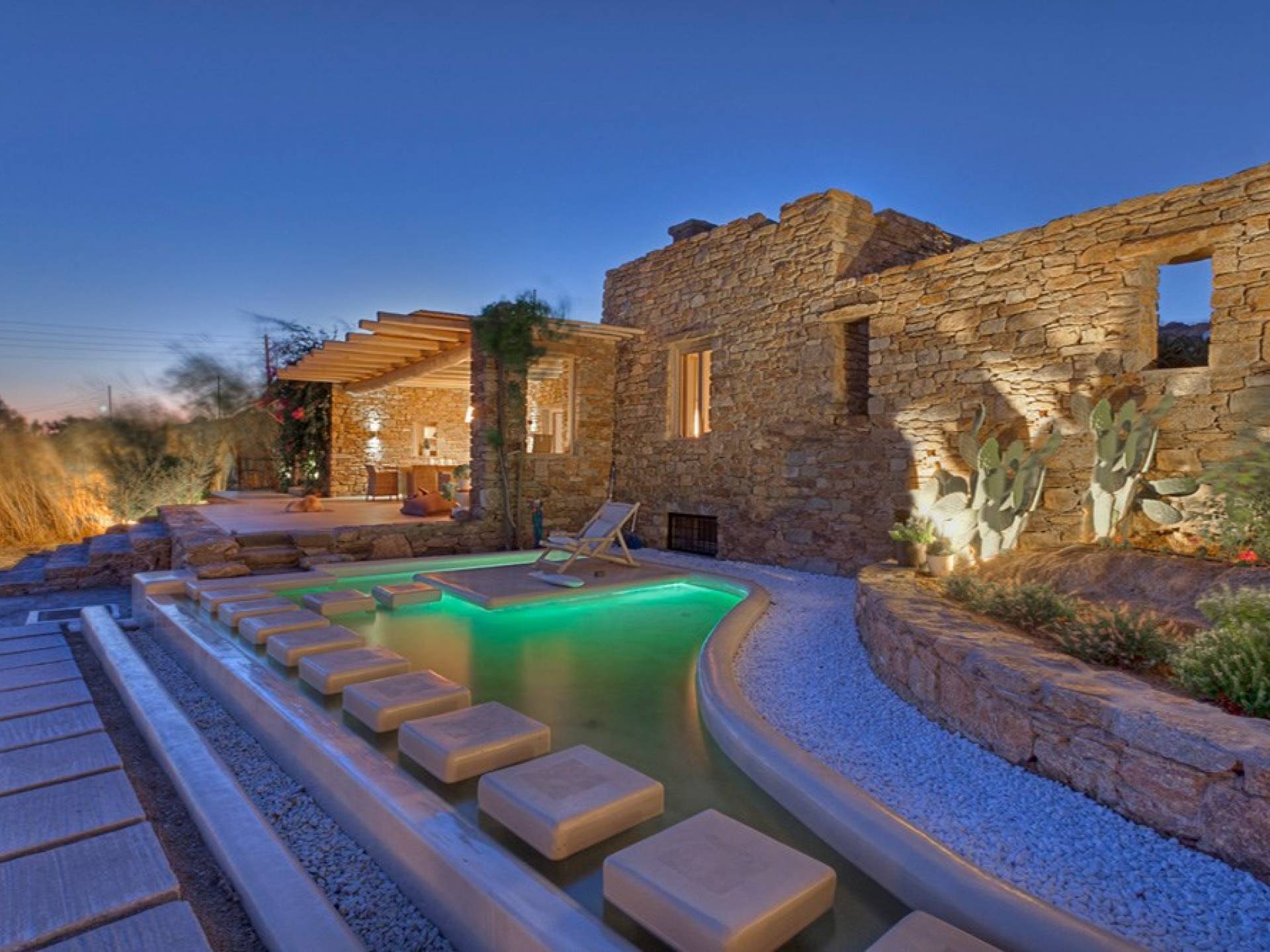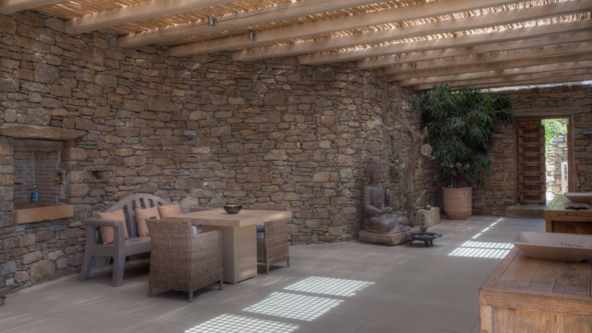 Villa Shay Mykonos è una villa di lusso in affitto con 4 camere da letto e una piscina privata. Cosa c'è da dire su questa villa unica nel suo genere... Una tenuta gemma appartata a Mykonos fatta di pietra di alta qualità che si adatta perfettamente al paesaggio circostante. Vibrazioni rilassanti e invitanti insieme a decorazioni all'avanguardia, aree spaziose e salotti all'aperto riparati completano l'ambiente privato e lussuoso unico. Non mancare di entrare nel fresco angolo lounge, rinfrescarti sorseggiando un drink pomeridiano.