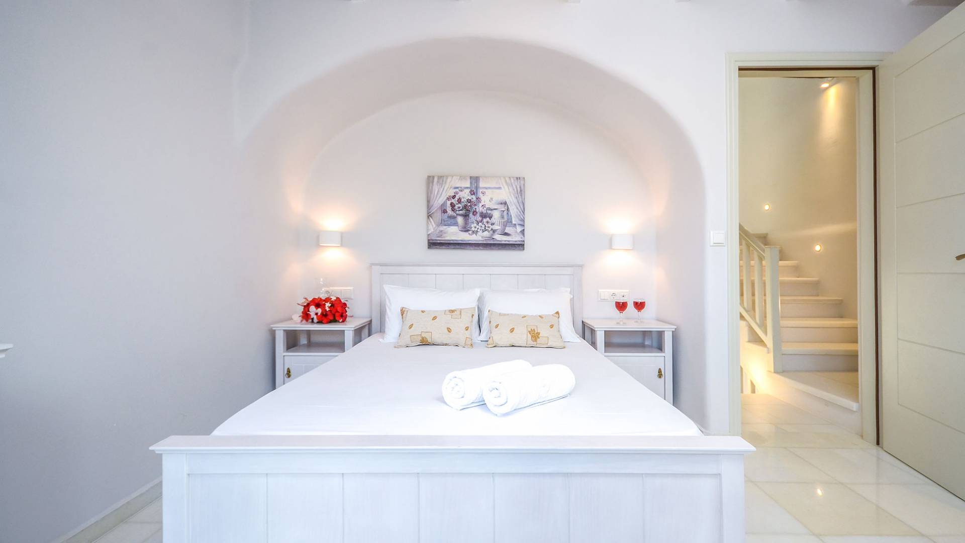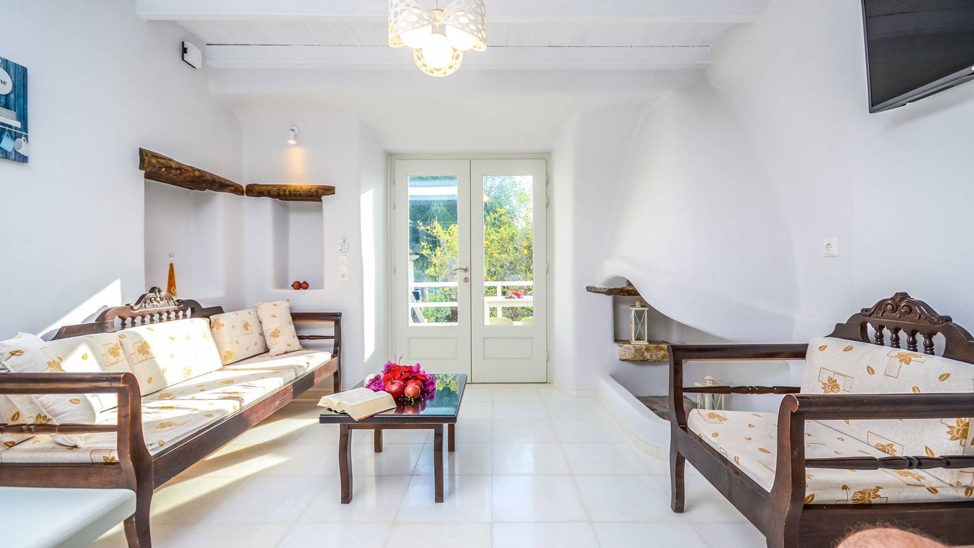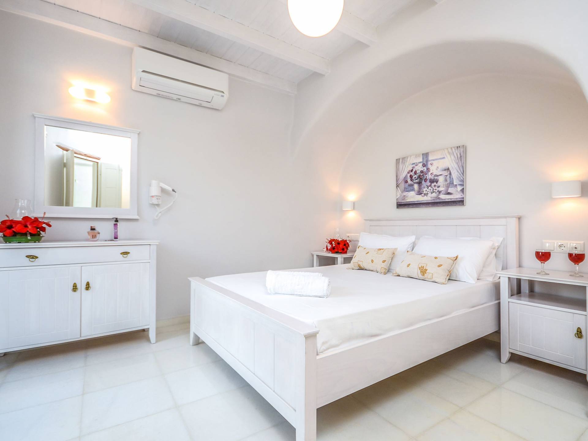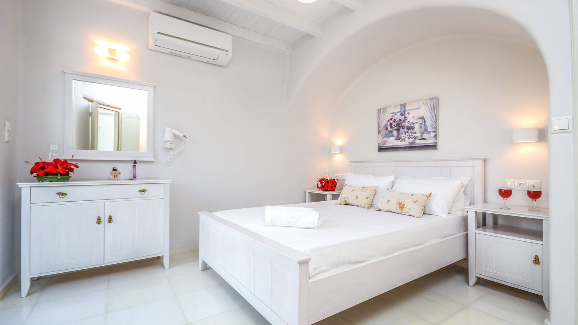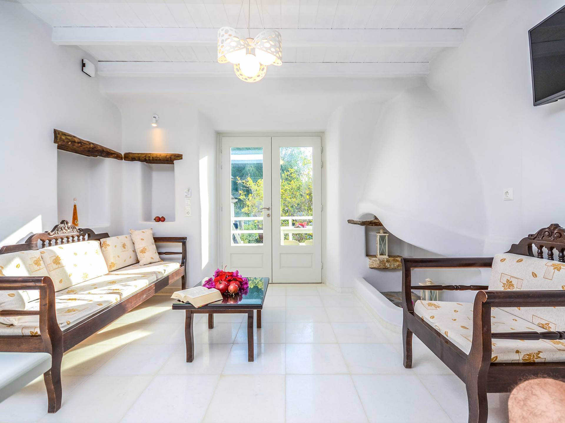 Naxian Queen Villa è su due livelli con una scala di 3 camere da letto separate con porta comunicante, 2 camere con due letti matrimoniali e una camera con due letti singoli. C'è una sala da pranzo, un soggiorno con camino e due ampi balconi in legno, uno con vista sul giardino della piscina e sul Mar Egeo, e altri due con vista sulle montagne. Gli ospiti possono iniziare la giornata con una colazione servita ogni giorno presso lo snack bar della struttura, dove è possibile gustare anche i sapori tradizionali e il raki durante tutta la giornata.