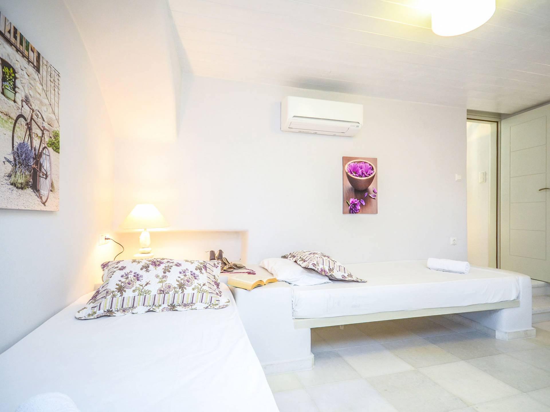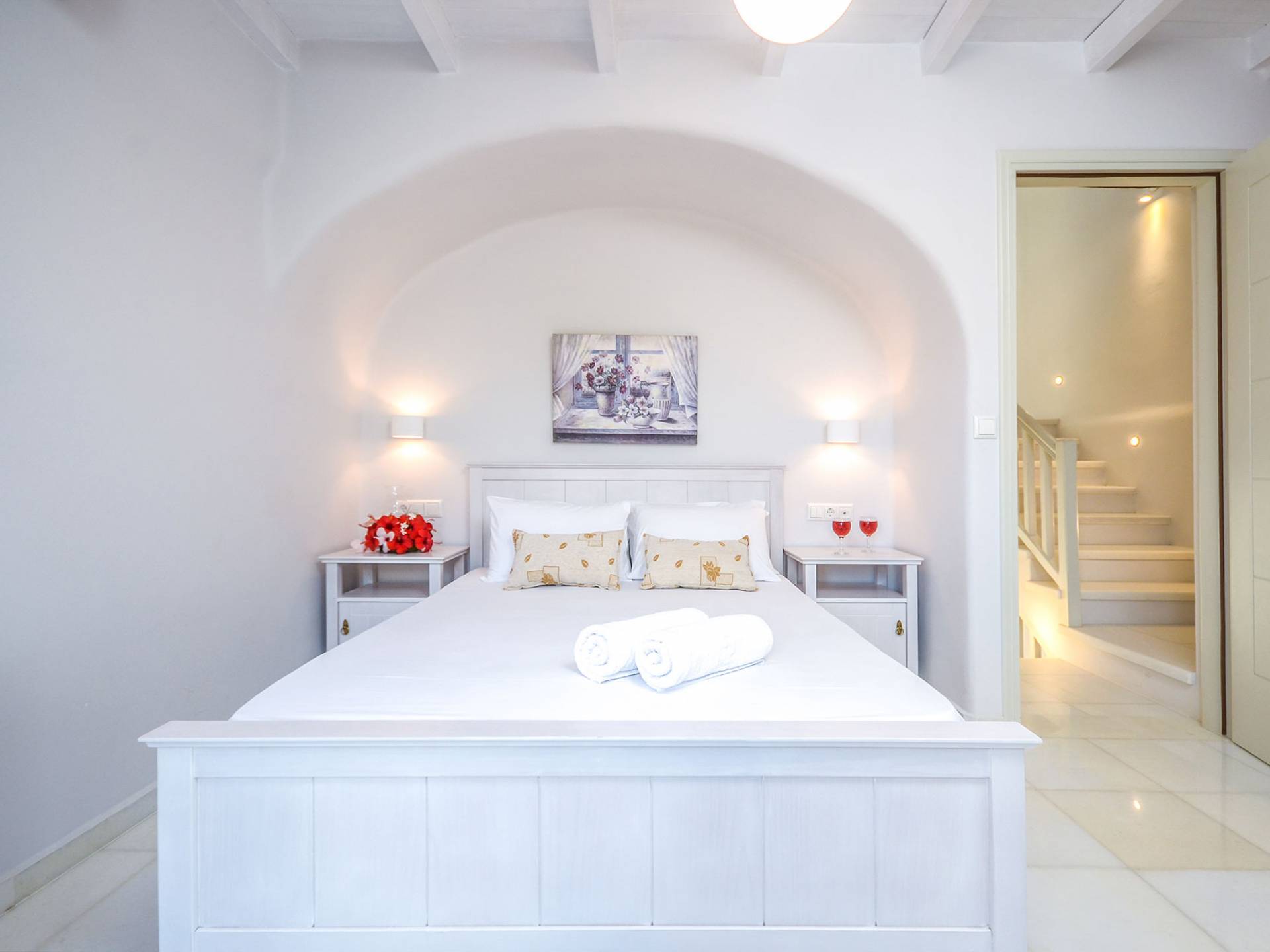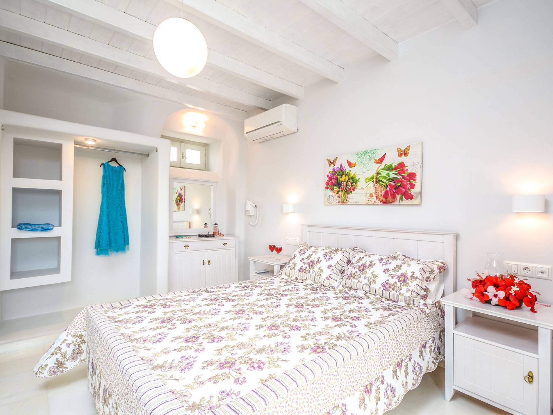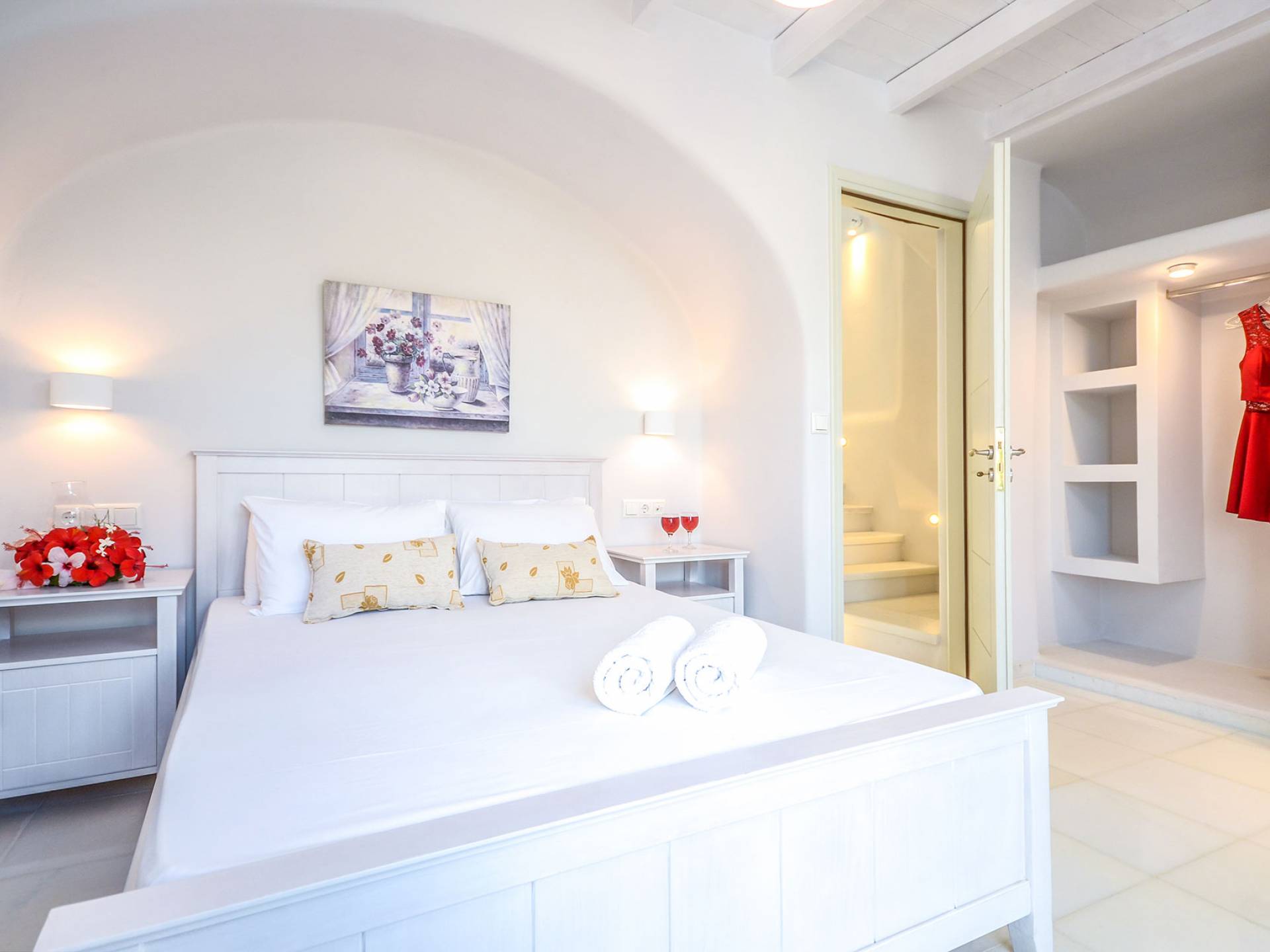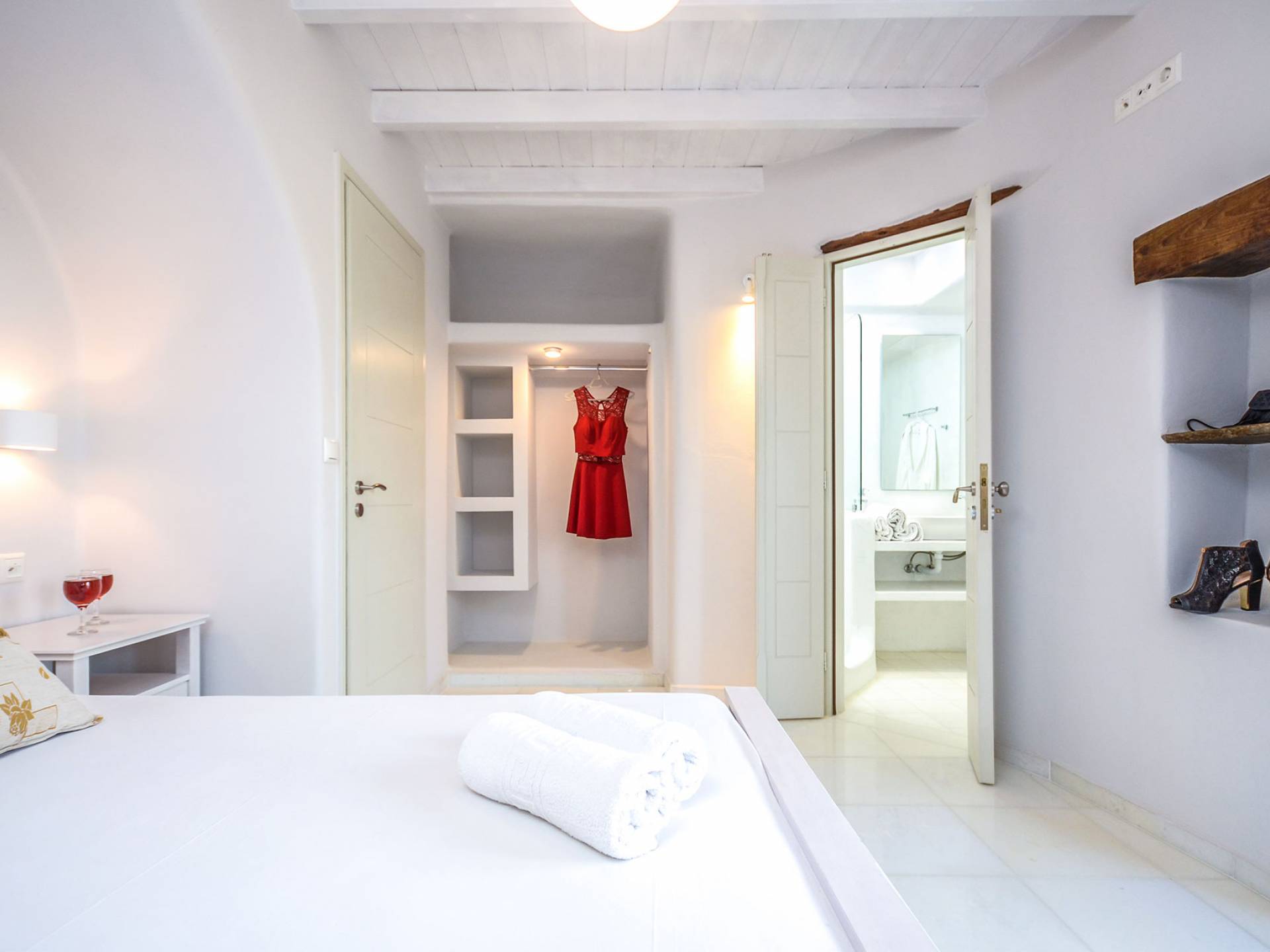 Naxian Queen Villa è su due livelli con una scala di 3 camere da letto separate con porta comunicante, 2 camere con due letti matrimoniali e una camera con due letti singoli. C'è una sala da pranzo, un soggiorno con camino e due ampi balconi in legno, uno con vista sul giardino della piscina e sul Mar Egeo, e altri due con vista sulle montagne. Gli ospiti possono iniziare la giornata con una colazione servita ogni giorno presso lo snack bar della struttura, dove è possibile gustare anche i sapori tradizionali e il raki durante tutta la giornata.