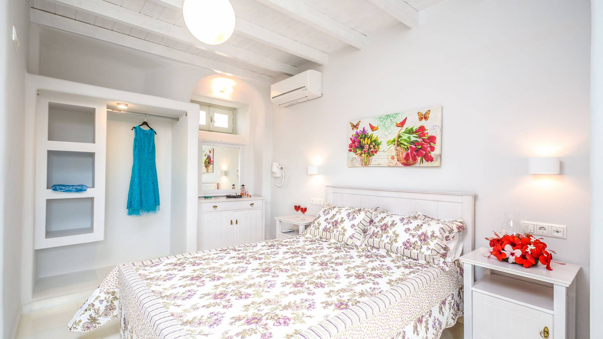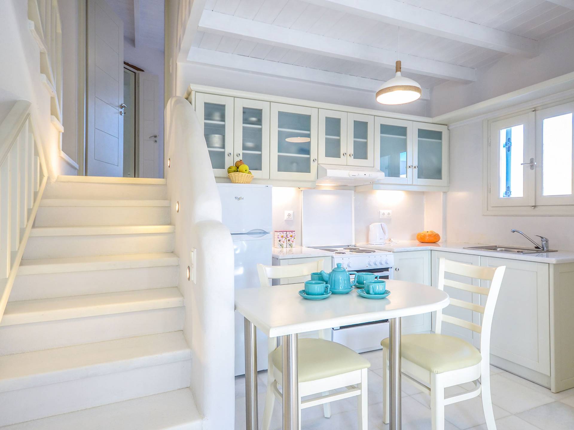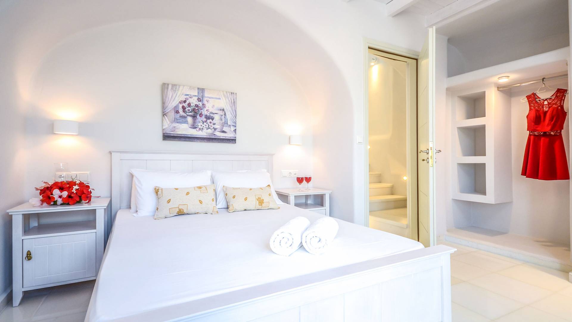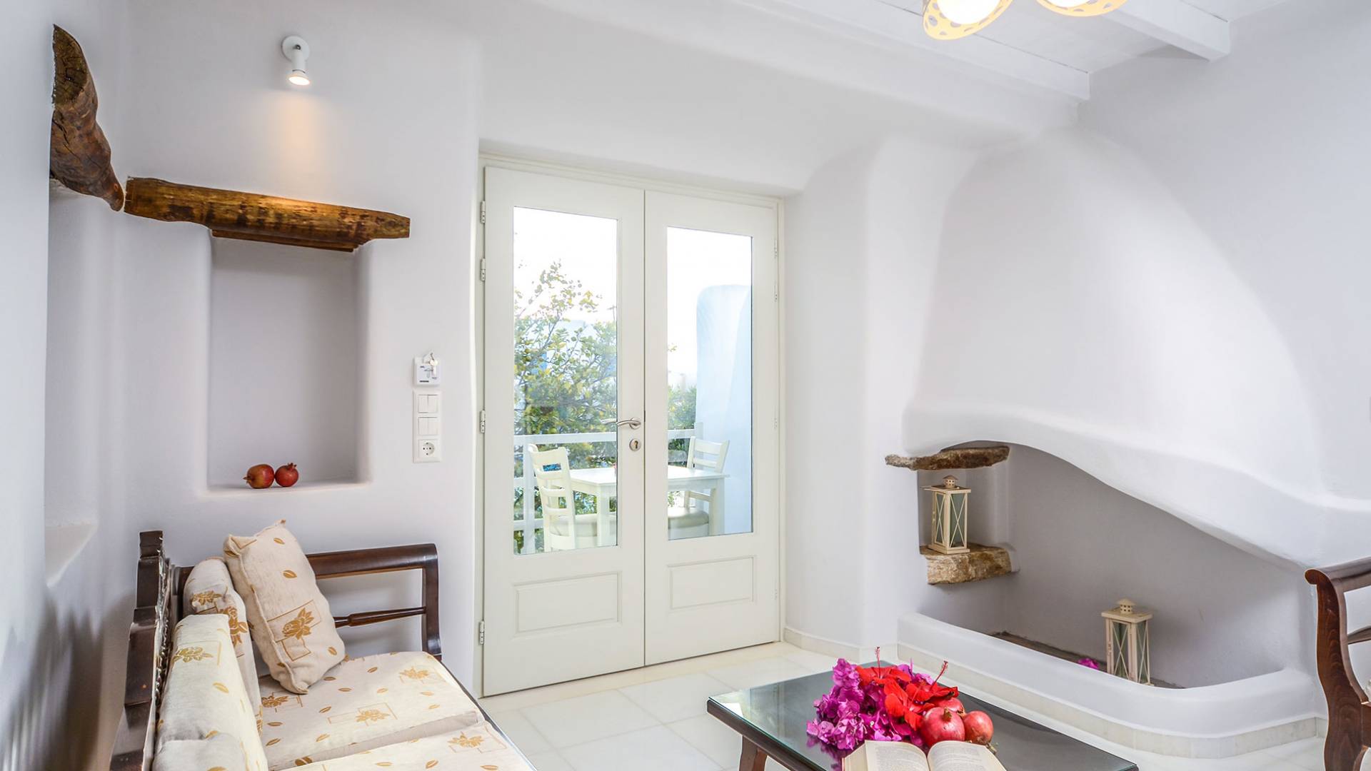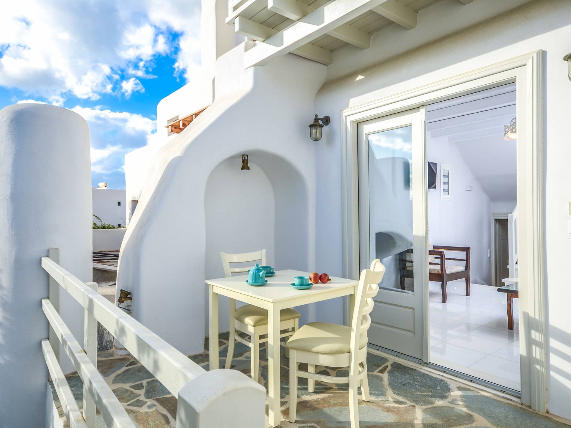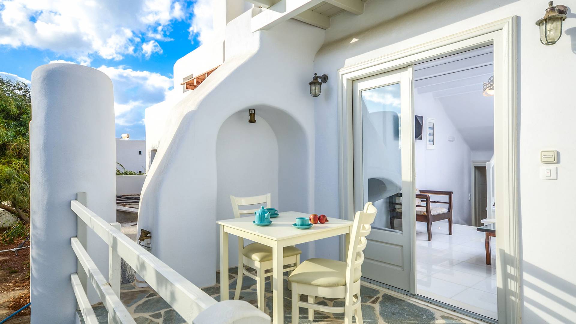 Naxian Queen Villa è su due livelli con una scala di 3 camere da letto separate con porta comunicante, 2 camere con due letti matrimoniali e una camera con due letti singoli. C'è una sala da pranzo, un soggiorno con camino e due ampi balconi in legno, uno con vista sul giardino della piscina e sul Mar Egeo, e altri due con vista sulle montagne. Gli ospiti possono iniziare la giornata con una colazione servita ogni giorno presso lo snack bar della struttura, dove è possibile gustare anche i sapori tradizionali e il raki durante tutta la giornata.