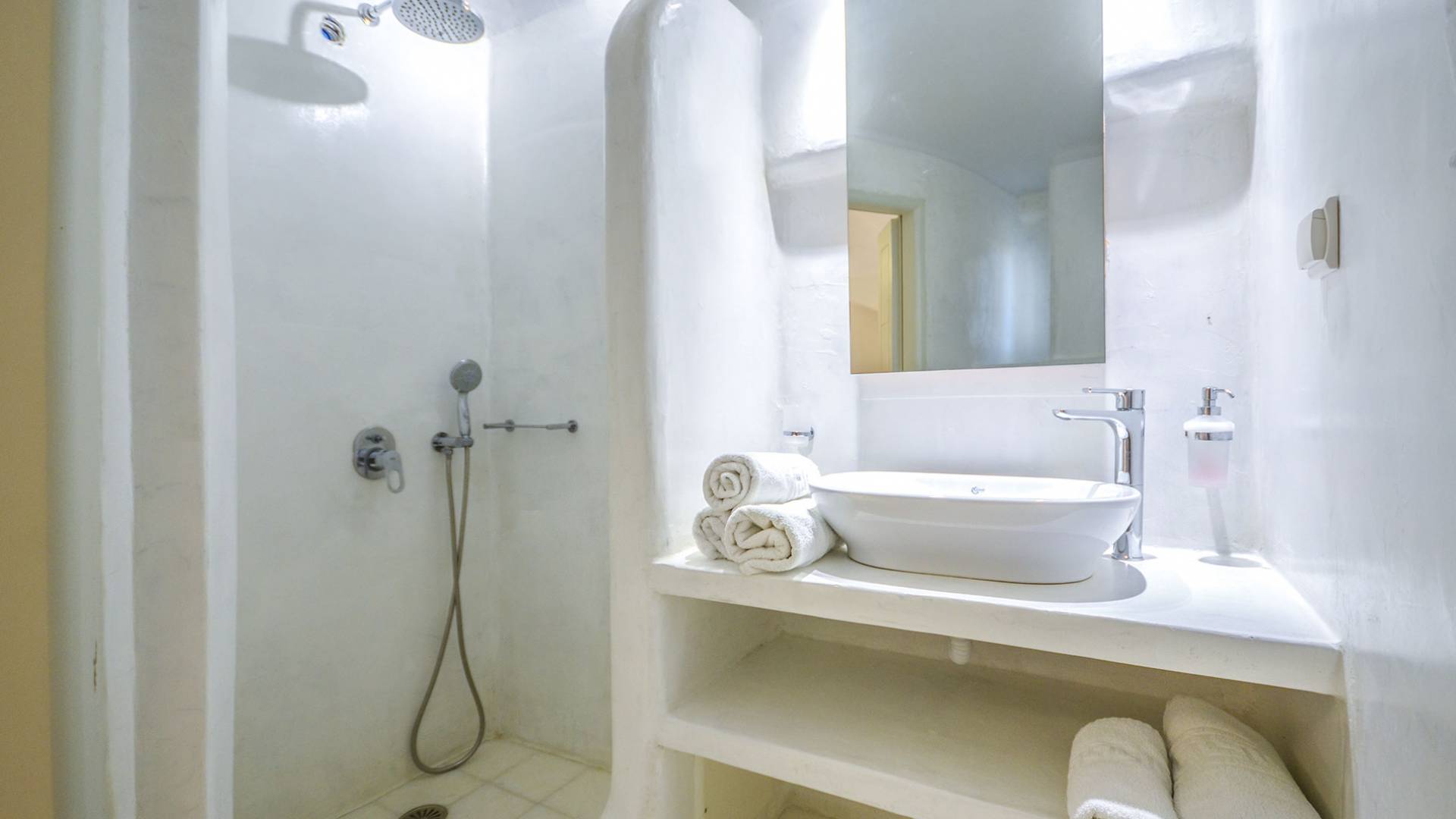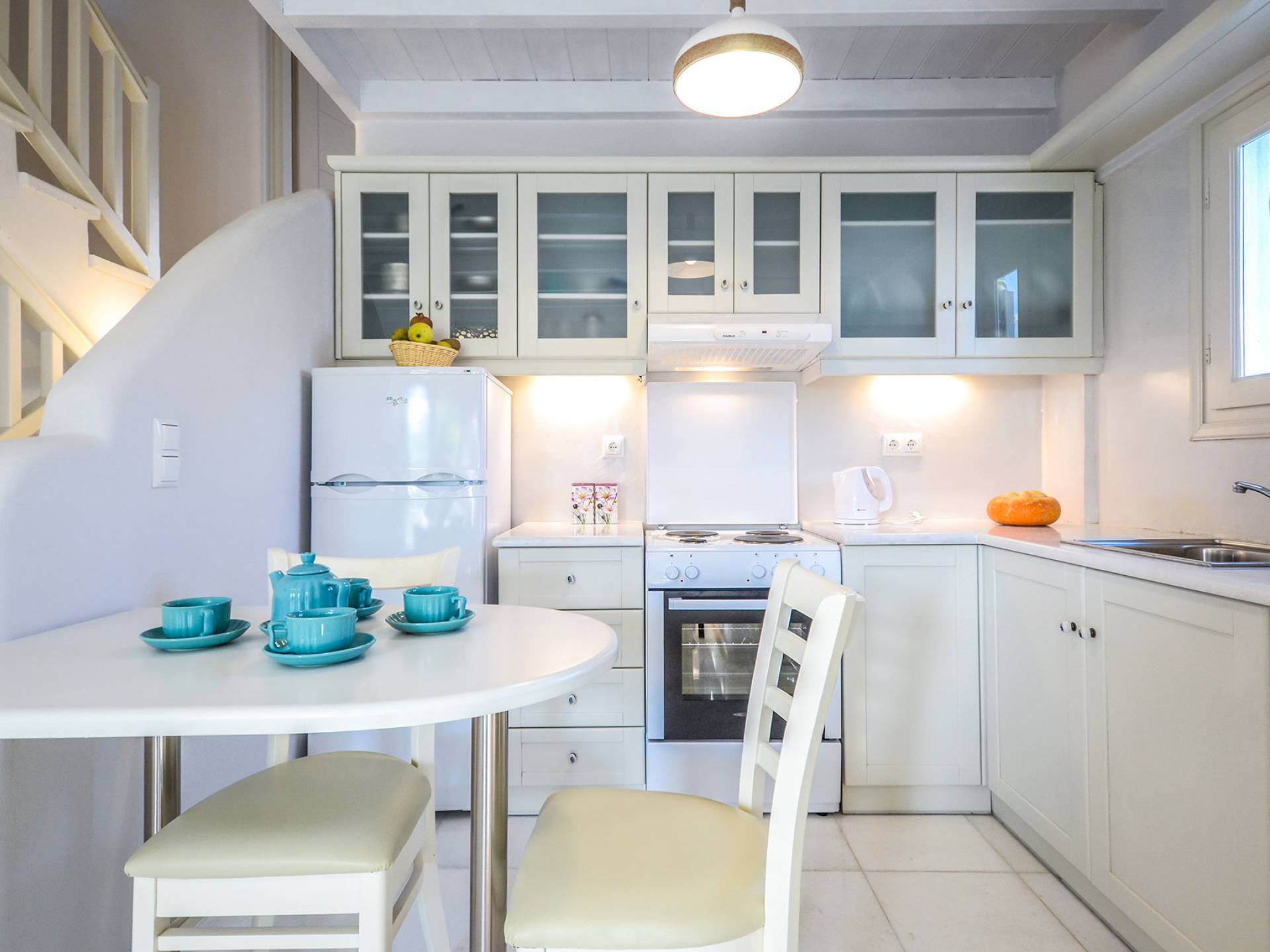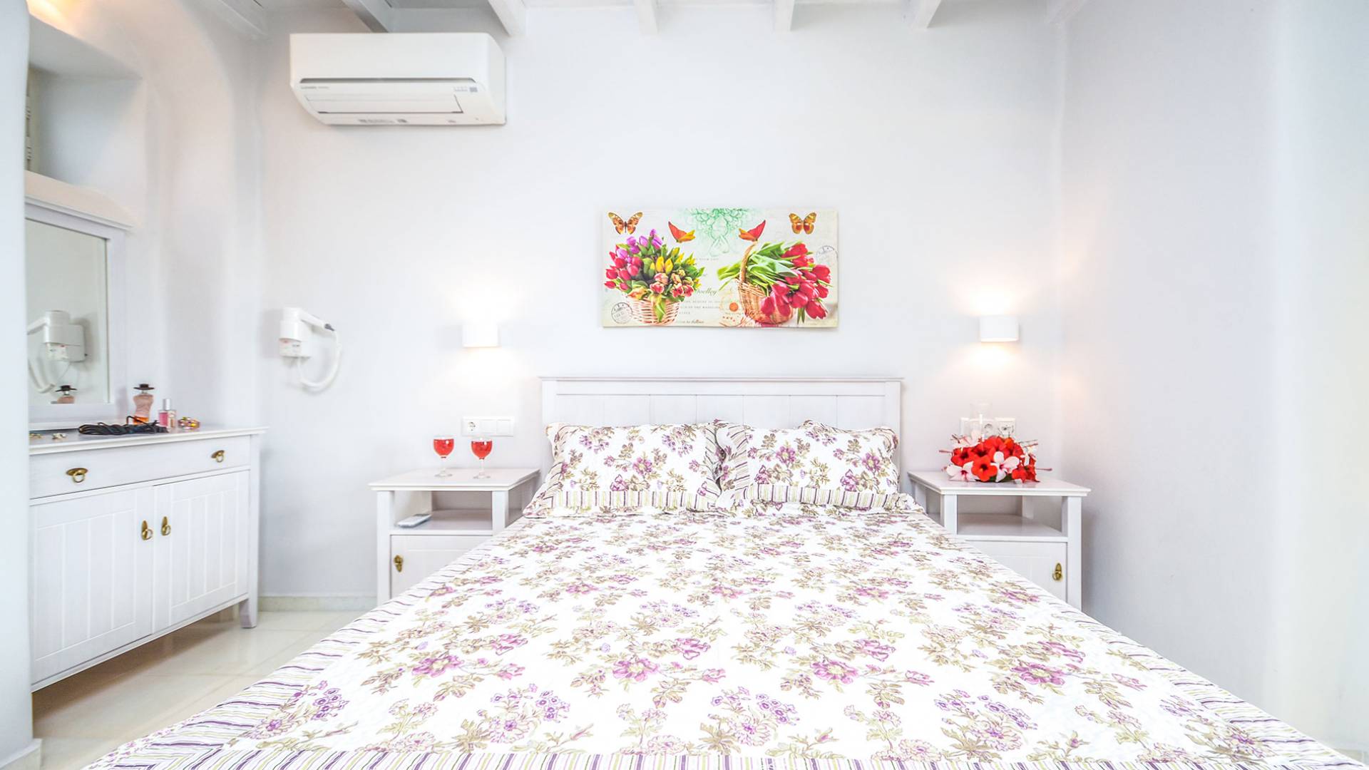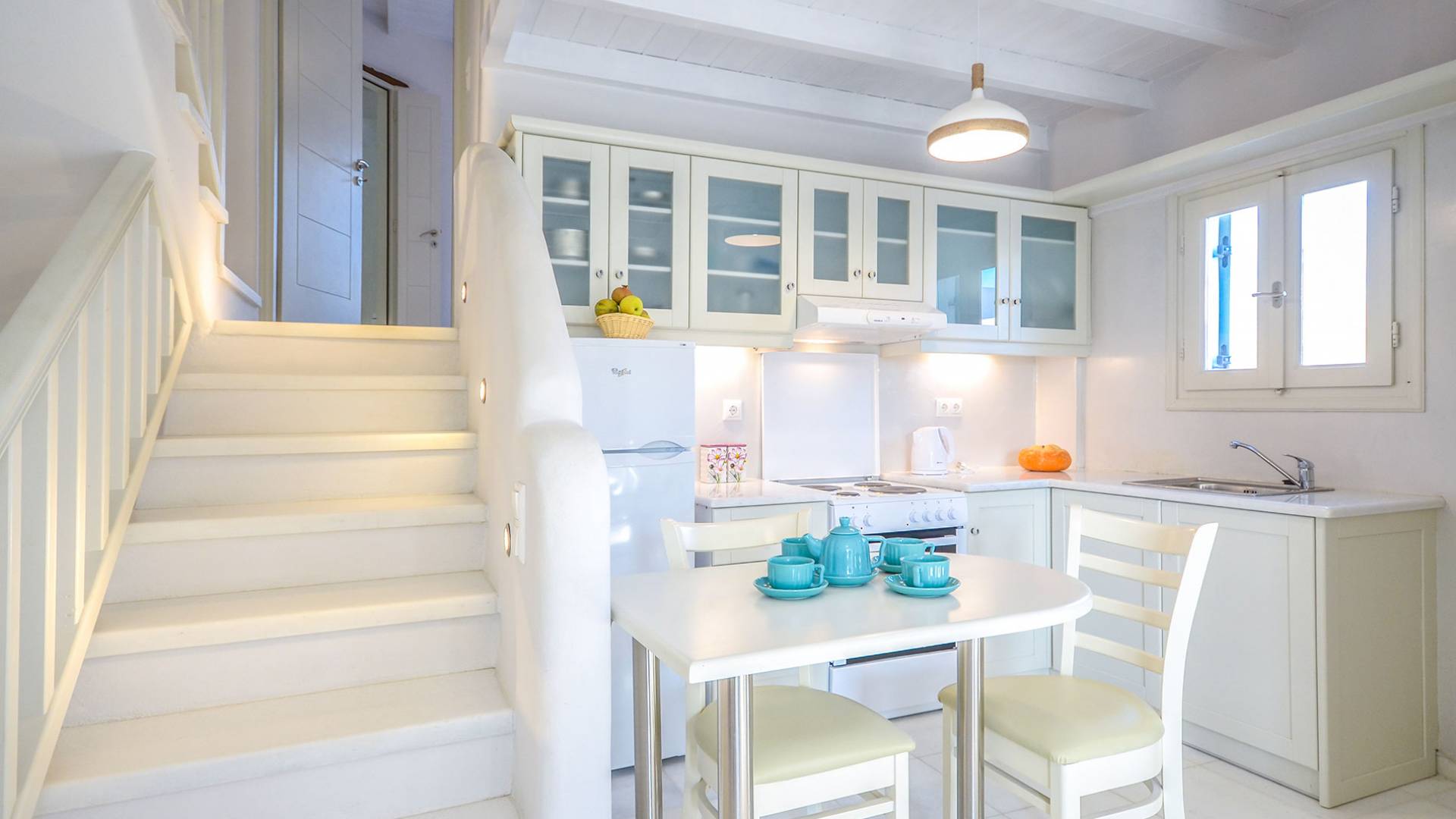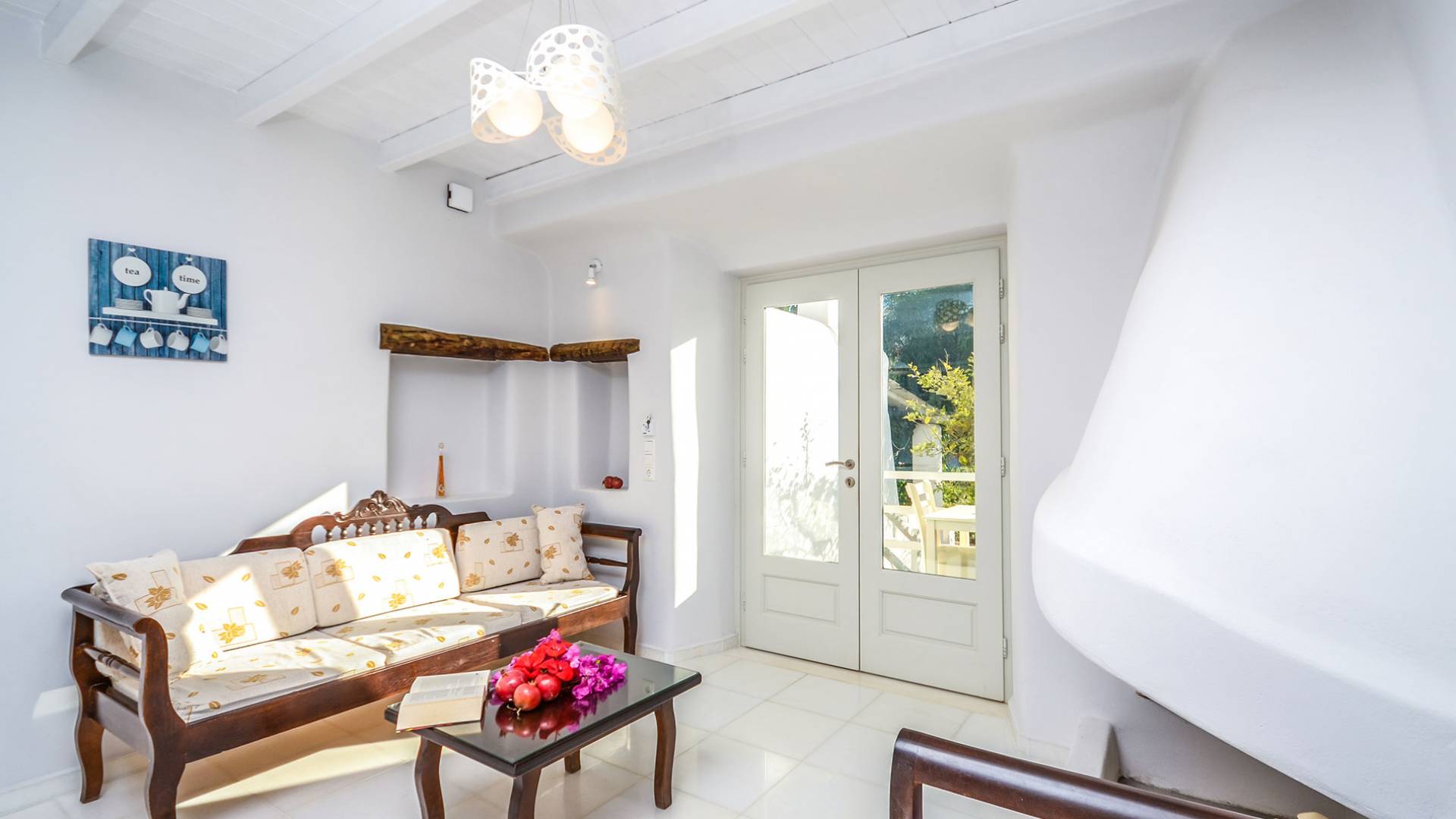 Naxian Queen Villa è su due livelli con una scala di 3 camere da letto separate con porta comunicante, 2 camere con due letti matrimoniali e una camera con due letti singoli. C'è una sala da pranzo, un soggiorno con camino e due ampi balconi in legno, uno con vista sul giardino della piscina e sul Mar Egeo, e altri due con vista sulle montagne. Gli ospiti possono iniziare la giornata con una colazione servita ogni giorno presso lo snack bar della struttura, dove è possibile gustare anche i sapori tradizionali e il raki durante tutta la giornata.