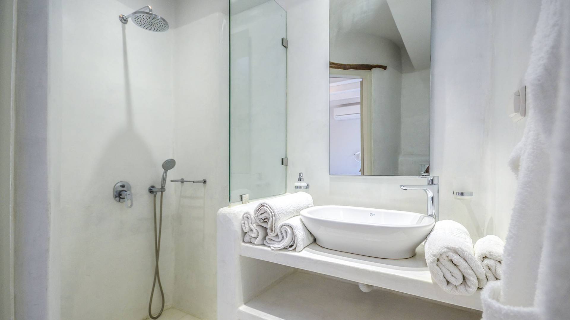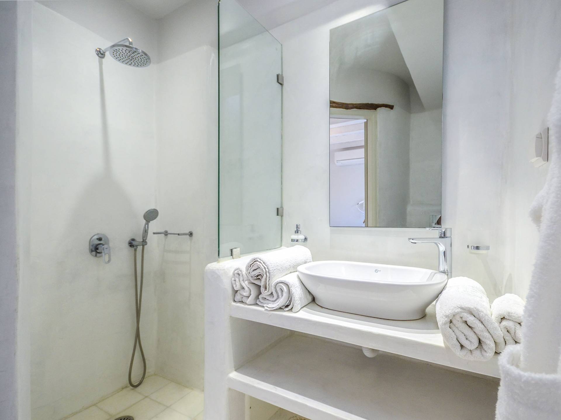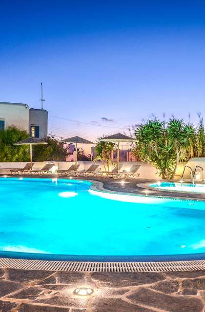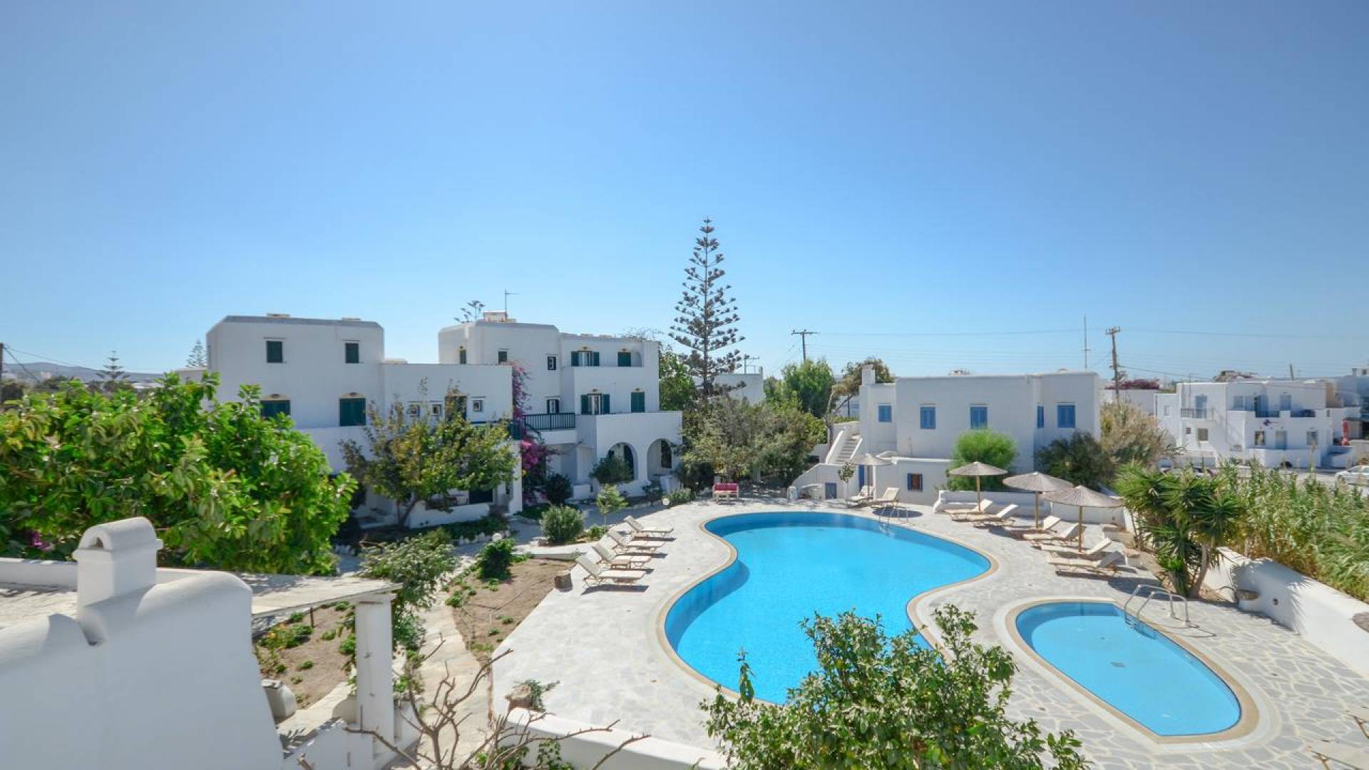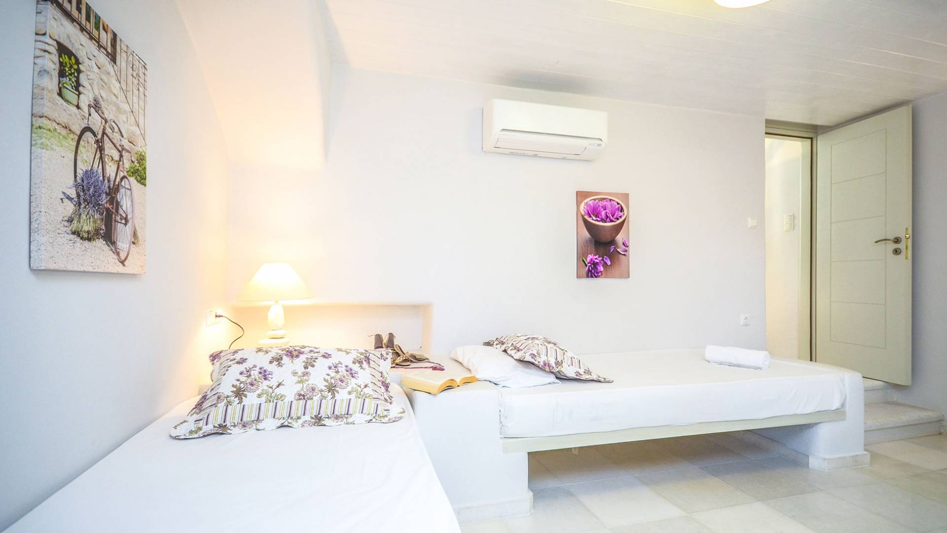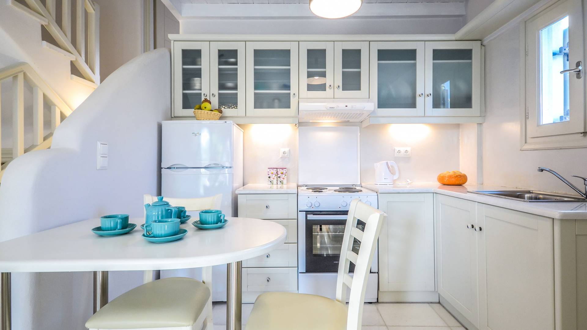 Naxian Queen Villa è su due livelli con una scala di 3 camere da letto separate con porta comunicante, 2 camere con due letti matrimoniali e una camera con due letti singoli. C'è una sala da pranzo, un soggiorno con camino e due ampi balconi in legno, uno con vista sul giardino della piscina e sul Mar Egeo, e altri due con vista sulle montagne. Gli ospiti possono iniziare la giornata con una colazione servita ogni giorno presso lo snack bar della struttura, dove è possibile gustare anche i sapori tradizionali e il raki durante tutta la giornata.