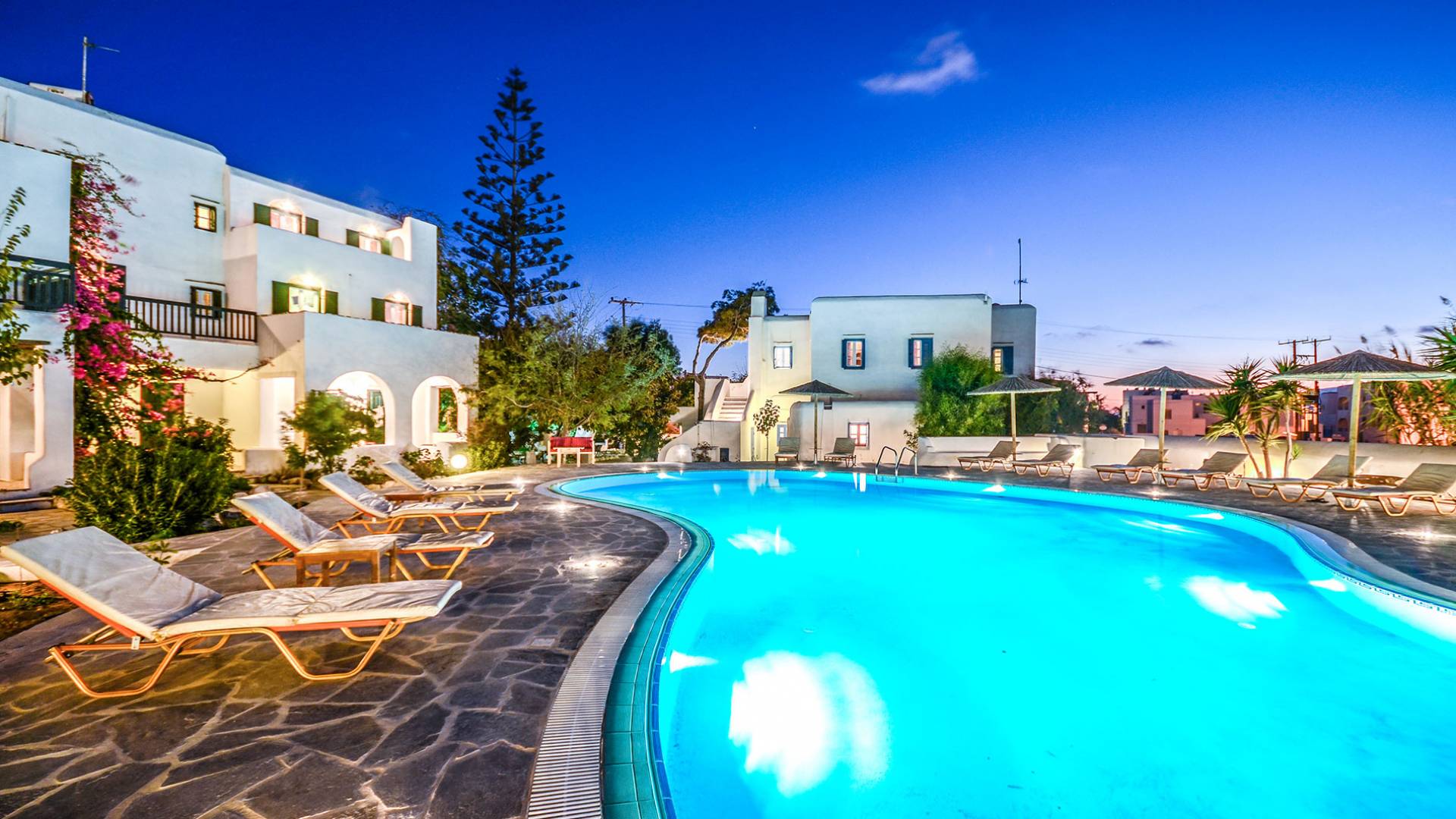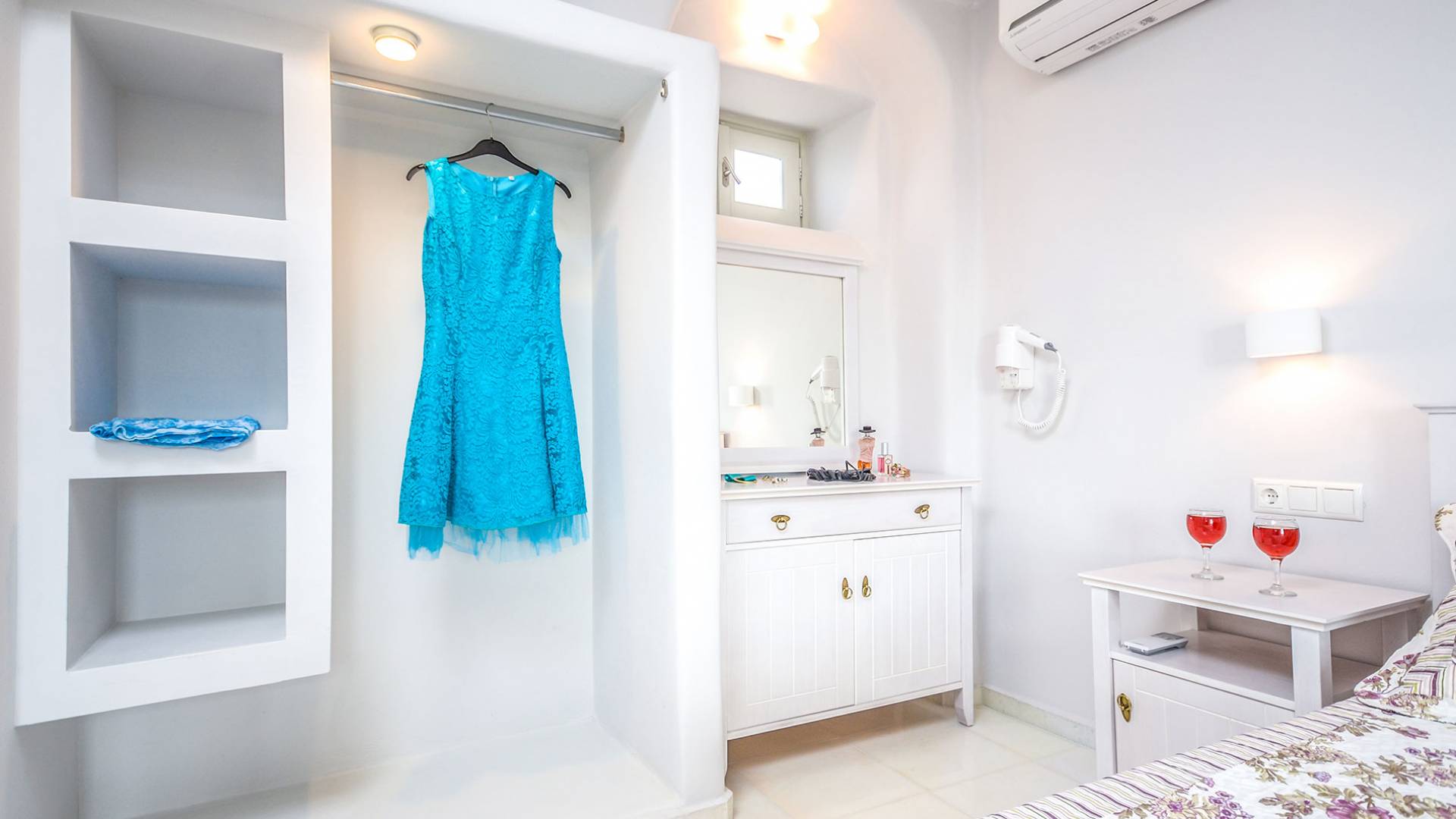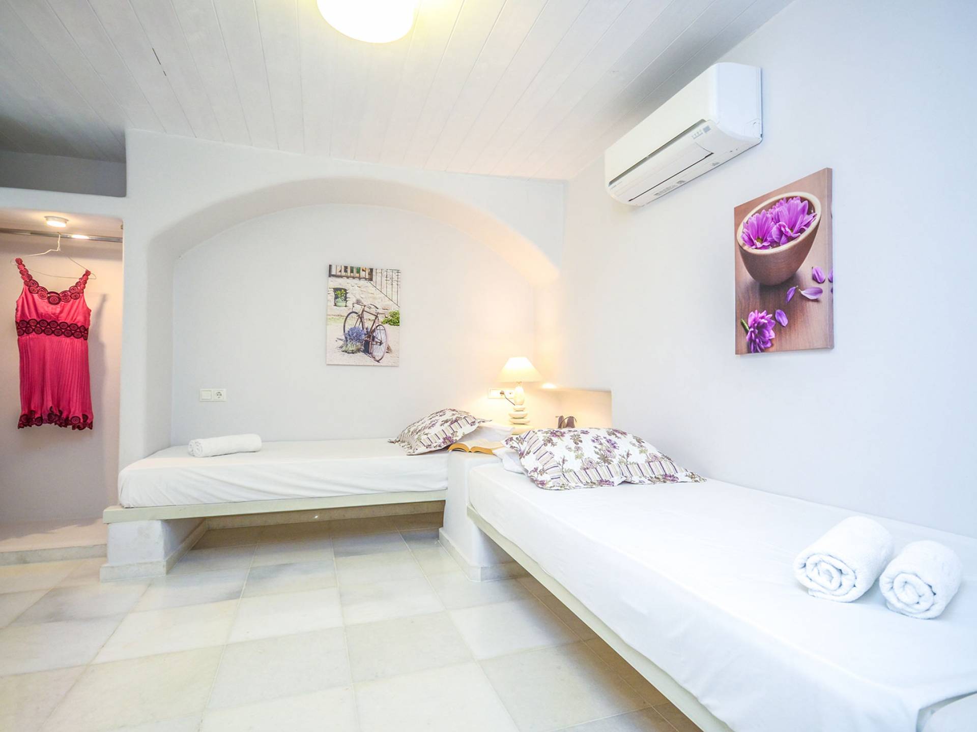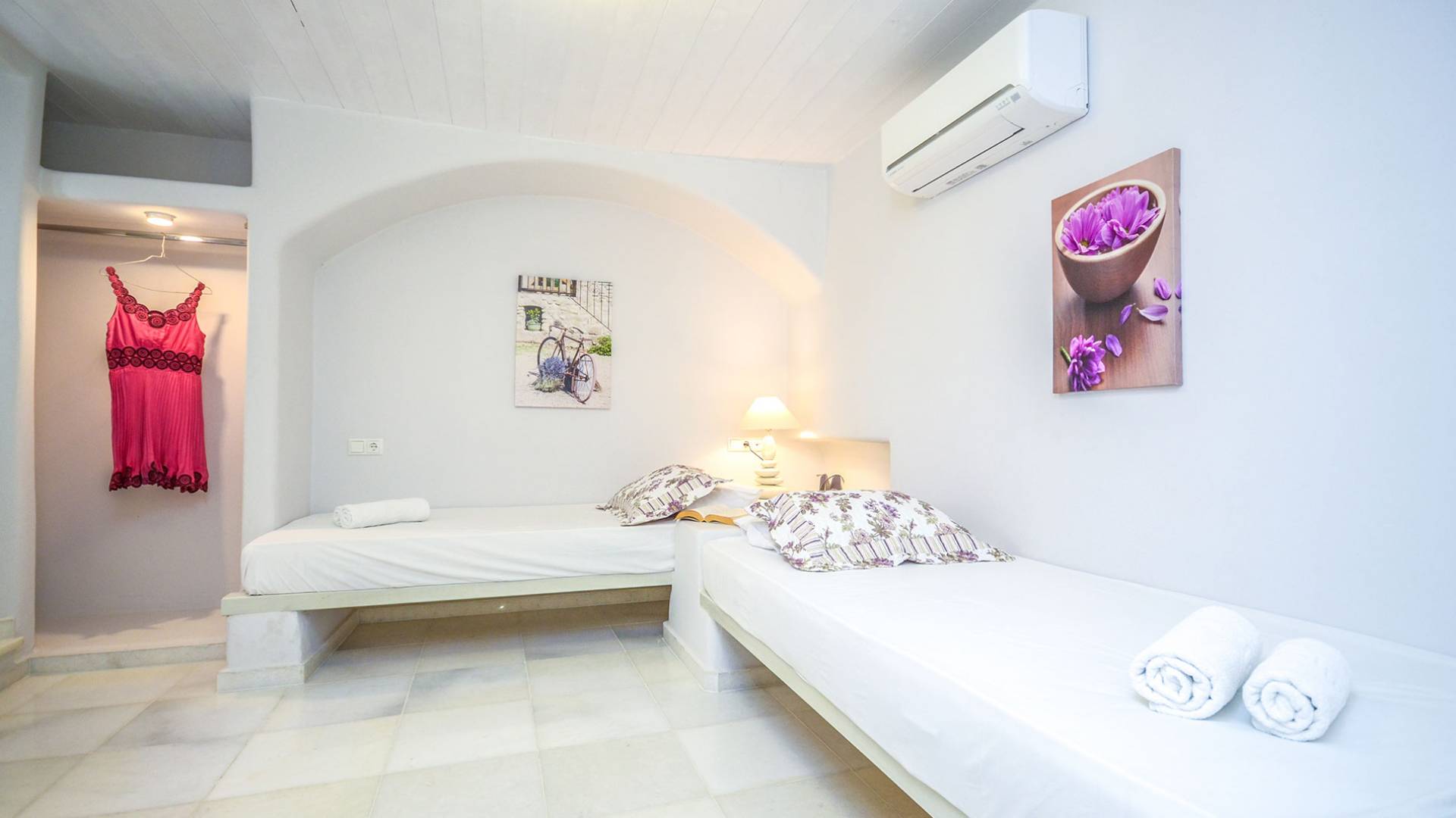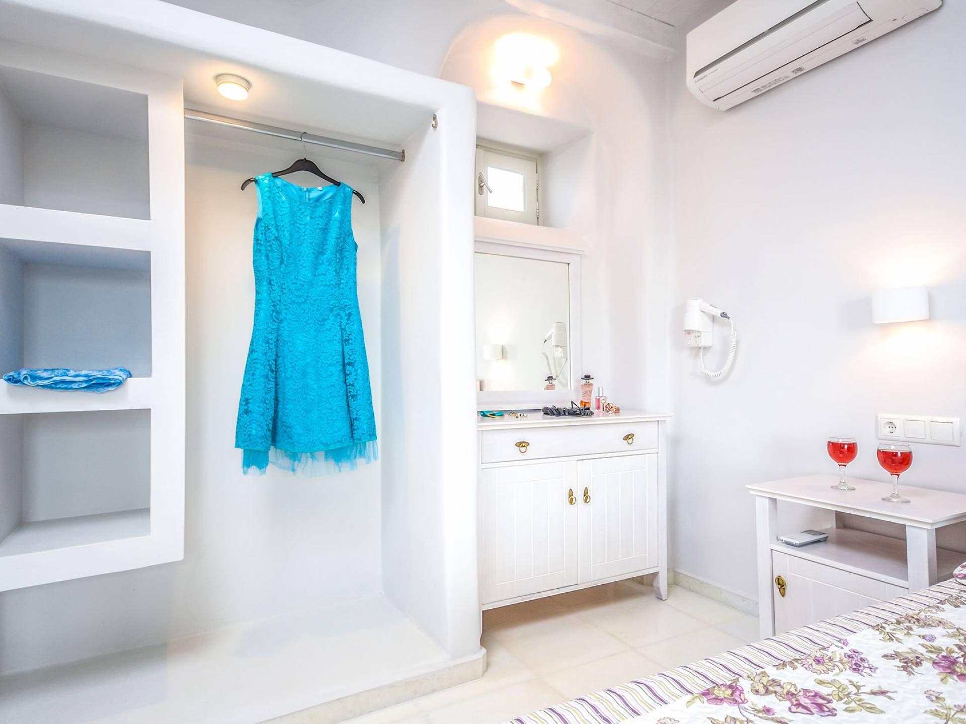 Naxian Queen Villa è su due livelli con una scala di 3 camere da letto separate con porta comunicante, 2 camere con due letti matrimoniali e una camera con due letti singoli. C'è una sala da pranzo, un soggiorno con camino e due ampi balconi in legno, uno con vista sul giardino della piscina e sul Mar Egeo, e altri due con vista sulle montagne. Gli ospiti possono iniziare la giornata con una colazione servita ogni giorno presso lo snack bar della struttura, dove è possibile gustare anche i sapori tradizionali e il raki durante tutta la giornata.
