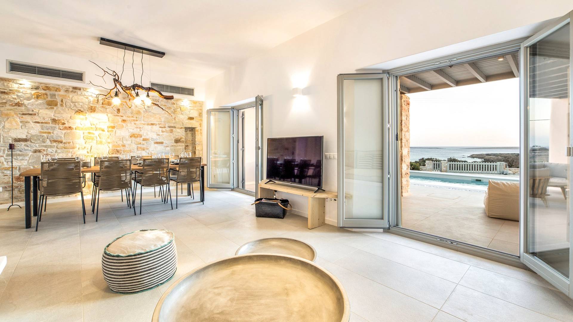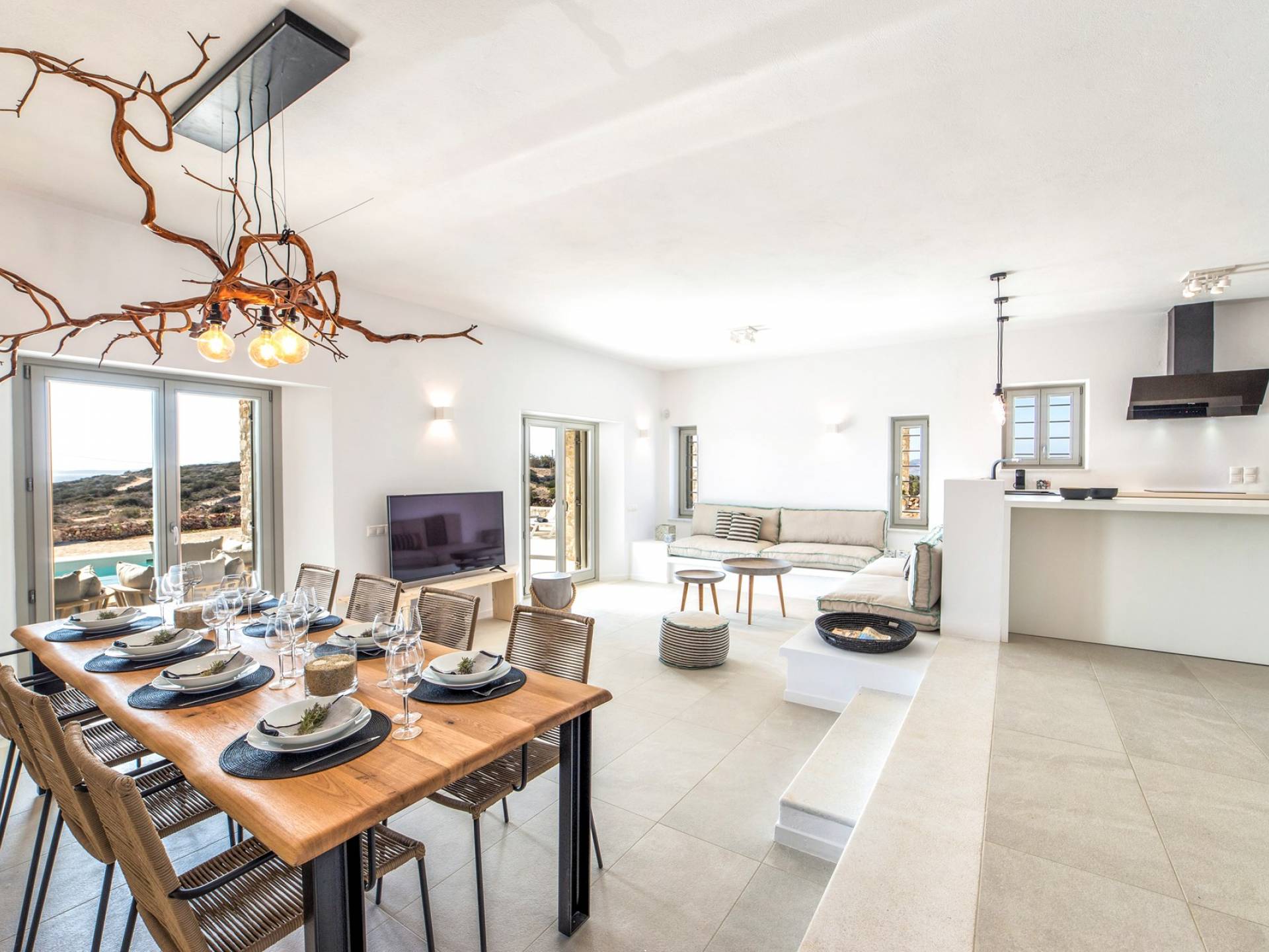 A pochi minuti di auto da Alyki, un bellissimo villaggio di pescatori sulla costa meridionale dell'isola con un porto pittoresco, taverne e una spiaggia, è una moderna proprietà di lusso indipendente che offre privacy, serenità e una vista idilliaca sul Mar Egeo che domina l'isola di Antiparos e il sole che tramonta dietro di essa. Soddisfacendo gli standard più elevati, la villa White Cube è progettata in completa armonia con l'ambiente naturale dell'aura delle Cicladi.