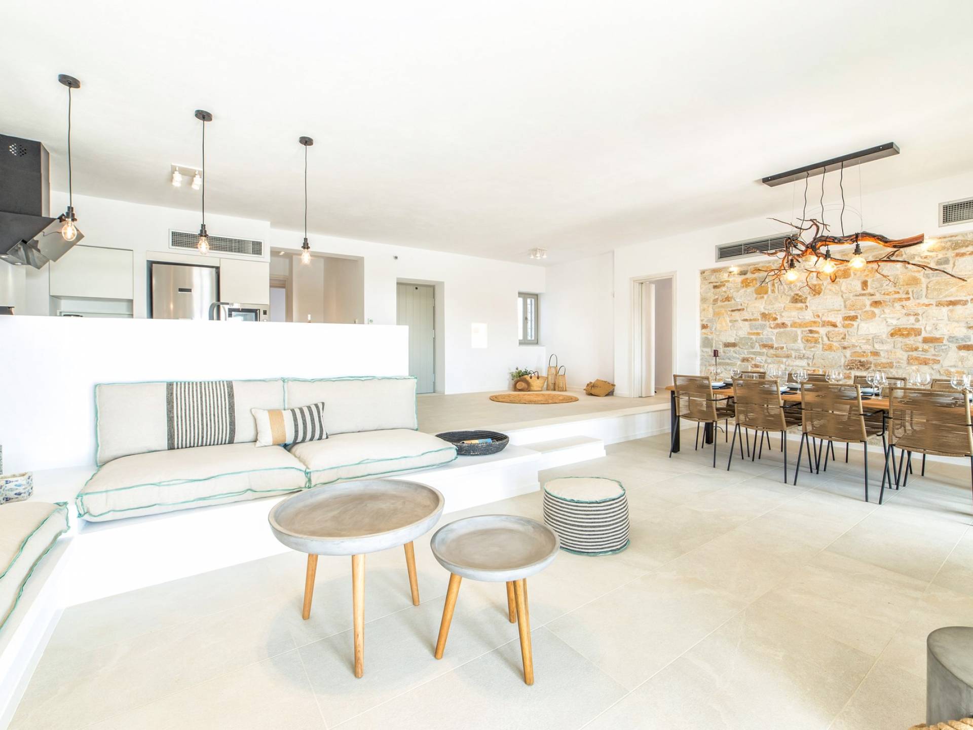 White Cube Villa Paros è l'ideale per famiglie, piccoli gruppi di amici o coppie, ospiti VIP, eventi privati, ecc. ed è composta da un ampio livello di 4 camere da letto con 4 bagni, una cucina a pianta aperta completamente attrezzata, soggiorno interno ed esterno e zone pranzo, piscina, barbecue, aree ombreggiate all'aperto, una sala giochi/palestra al piano inferiore e tutto il necessario per realizzare il sogno di un'esperienza di vacanza unica in una destinazione amata.