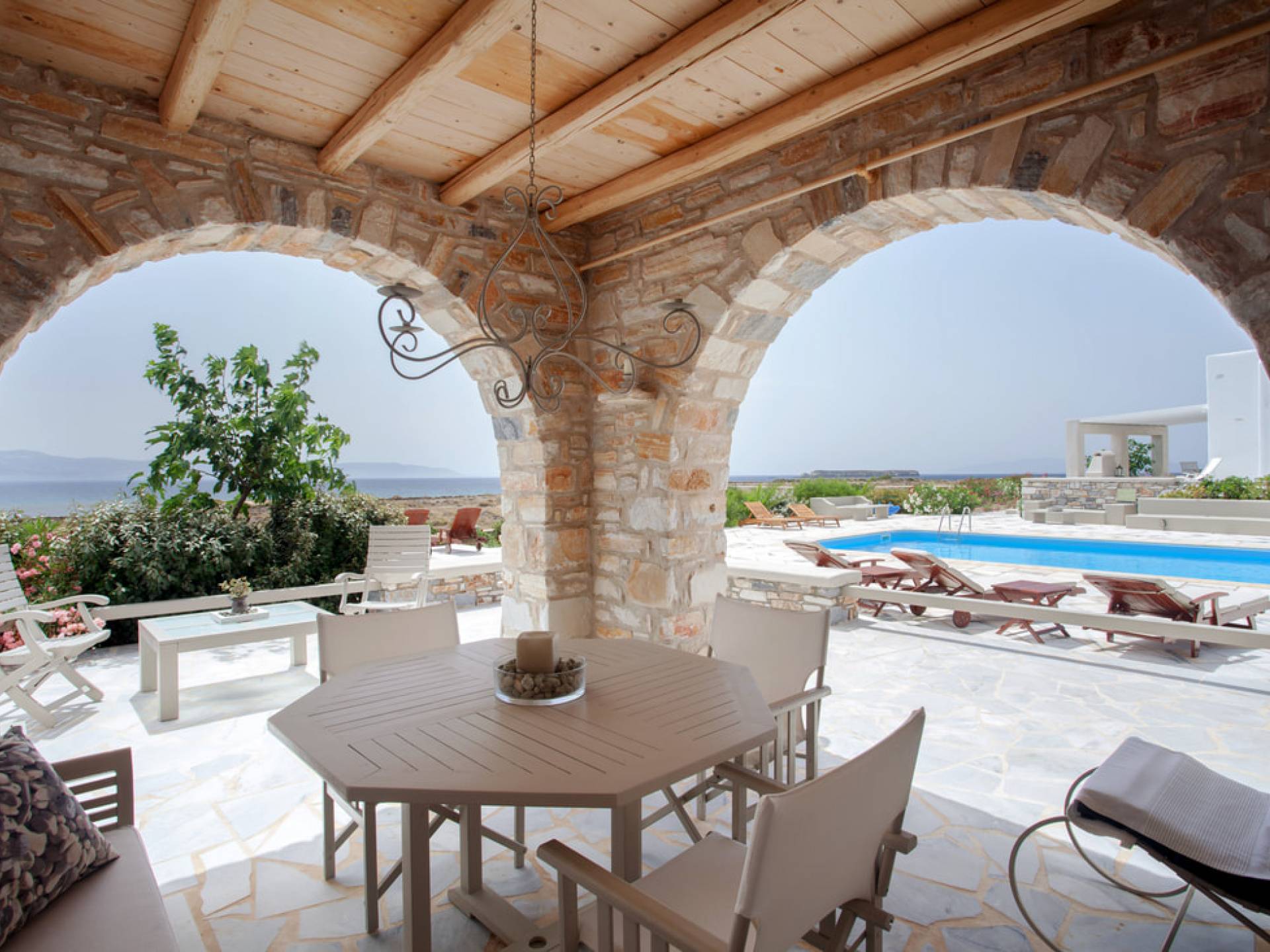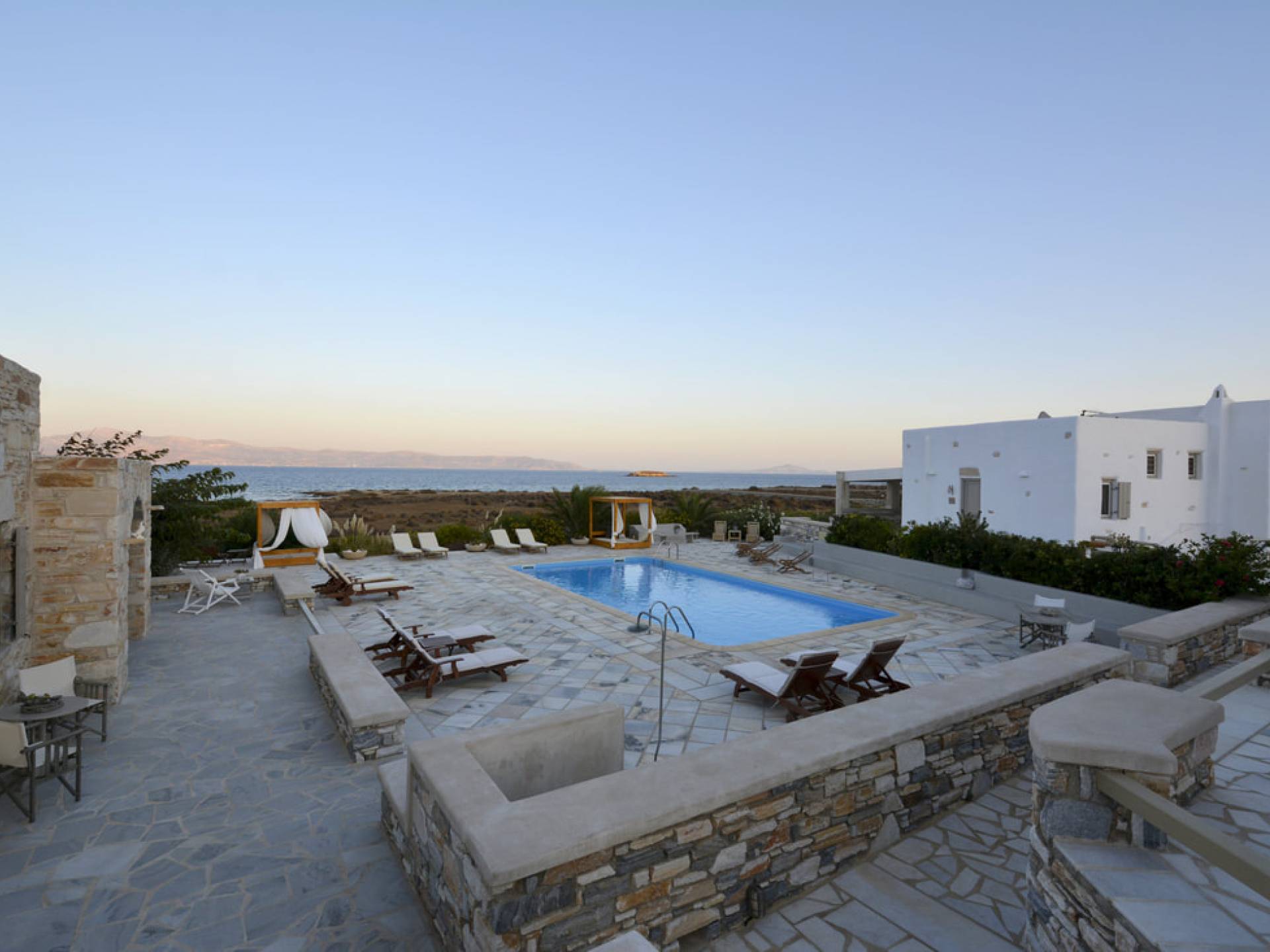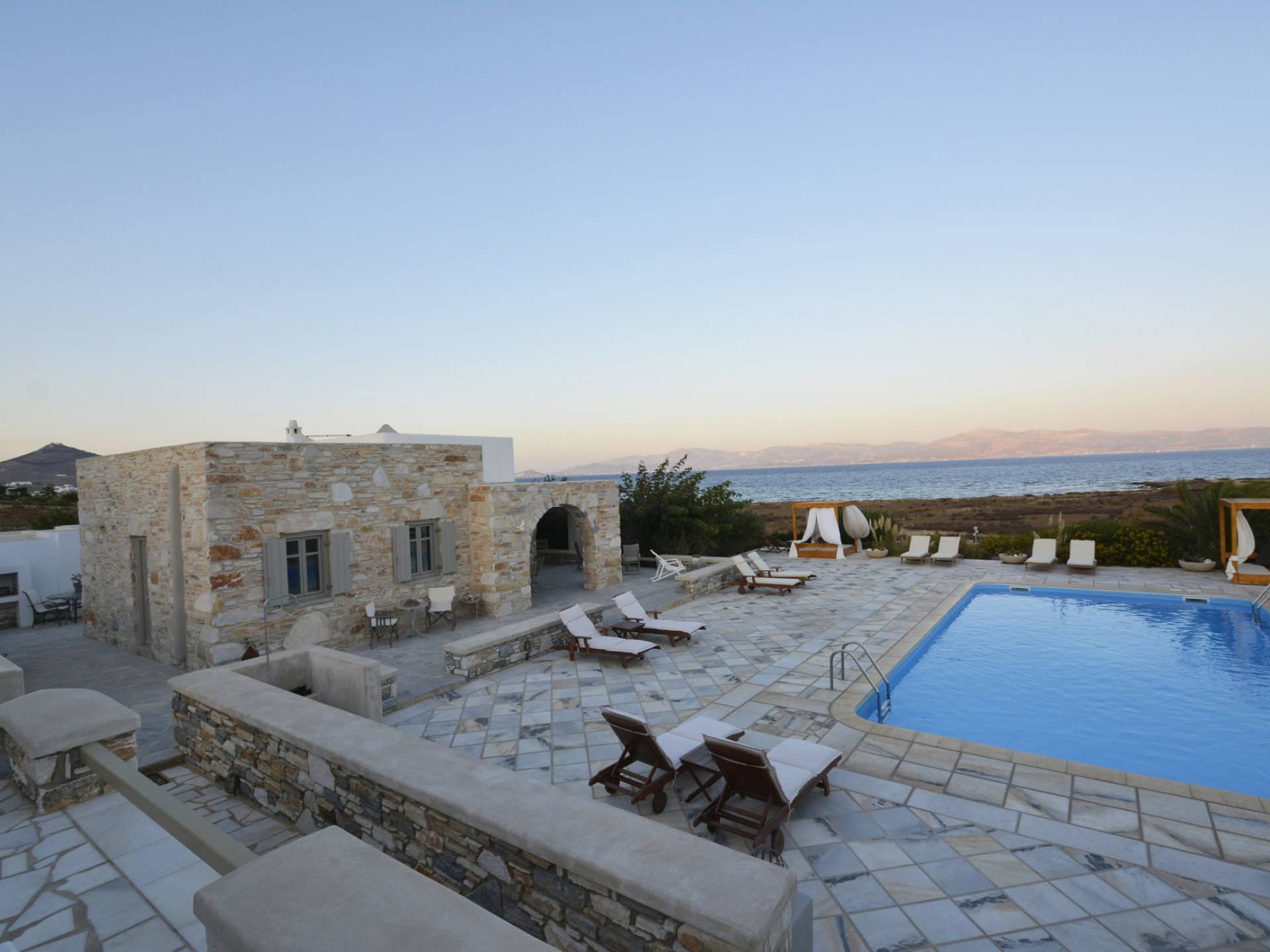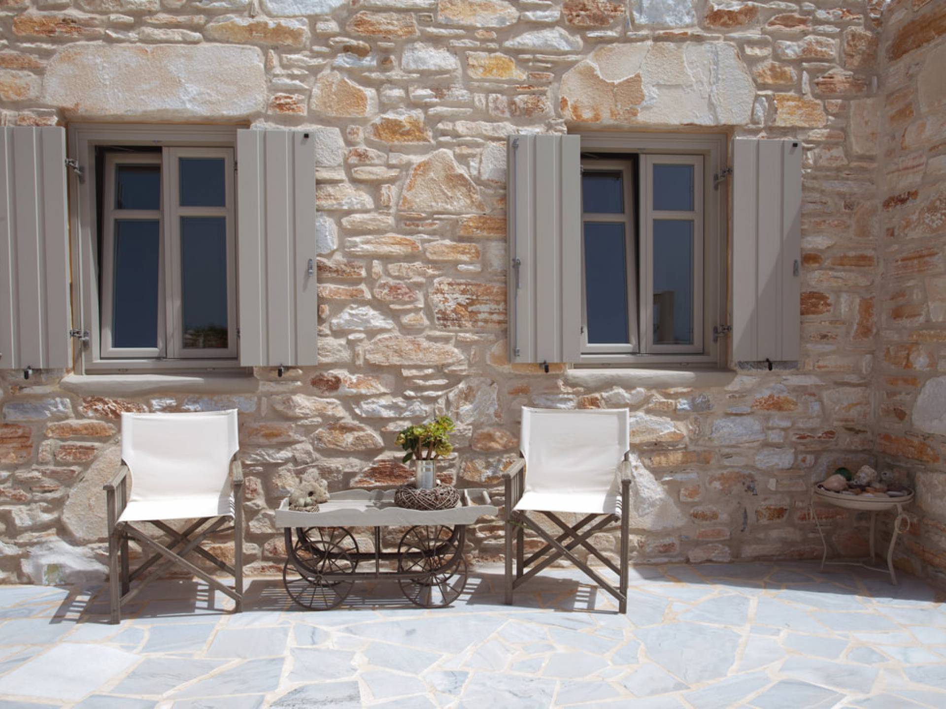 Gli interni, così come gli spazi esterni, sono disegnati con finezza e lusso. Gli interni sono dotati di splendidi mobili e pezzi d'arte unici. Tutte le ville hanno una vista aperta sul mare e sull'isola di Naxos da ogni luogo in cui scegli di sederti e possono offrirti un vero relax. Il complesso offre anche un grande giardino, possibilità di parcheggio e un ampio cortile comune con una grande piscina.