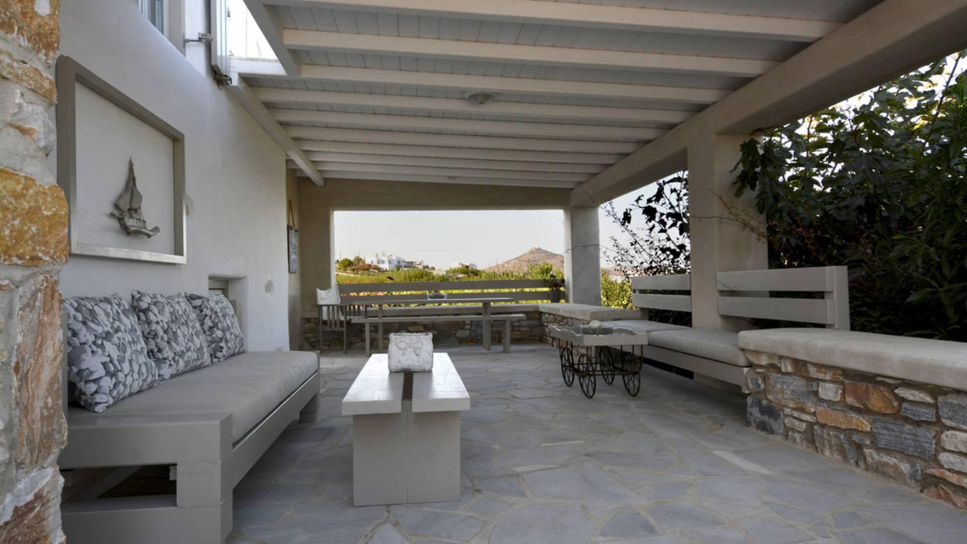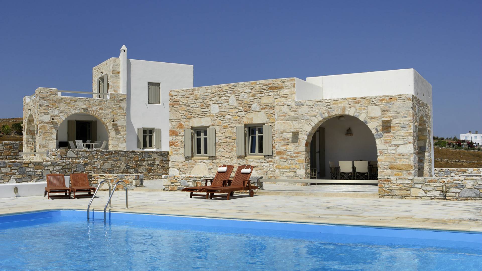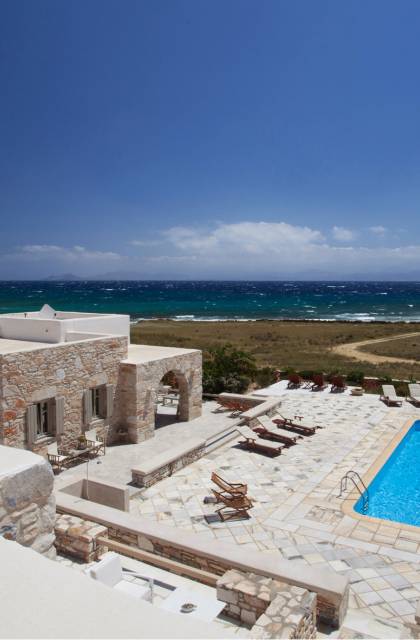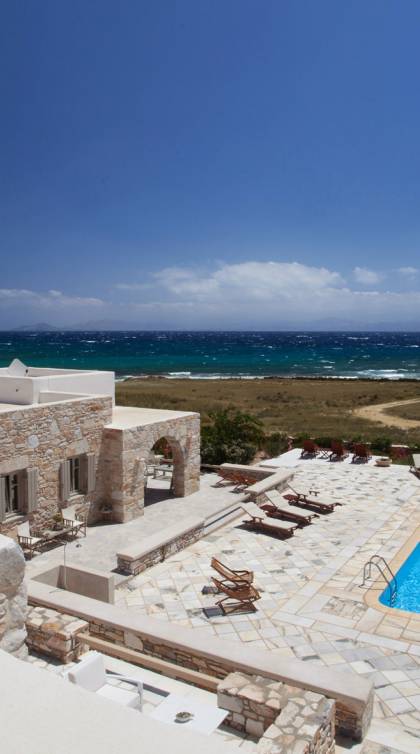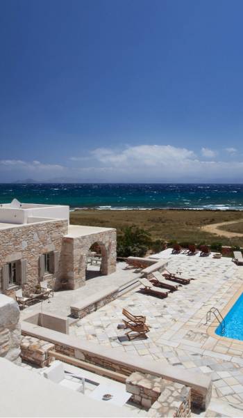 Gli interni, così come gli spazi esterni, sono disegnati con finezza e lusso. Gli interni sono dotati di splendidi mobili e pezzi d'arte unici. Tutte le ville hanno una vista aperta sul mare e sull'isola di Naxos da ogni luogo in cui scegli di sederti e possono offrirti un vero relax. Il complesso offre anche un grande giardino, possibilità di parcheggio e un ampio cortile comune con una grande piscina.